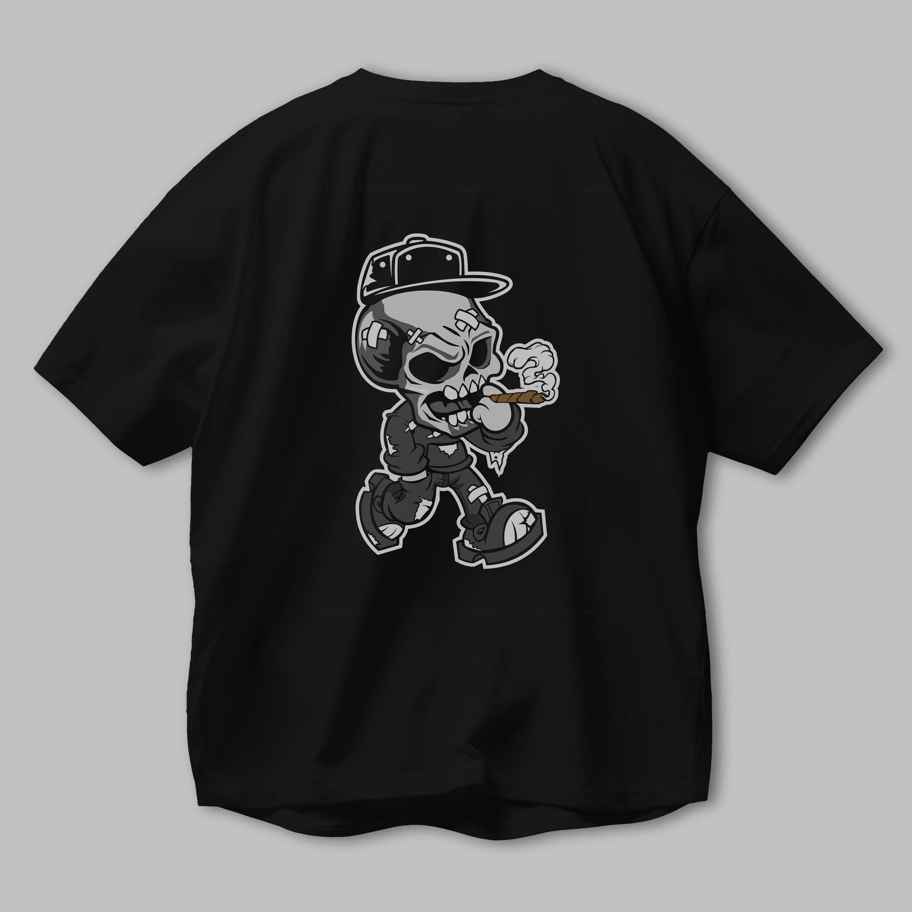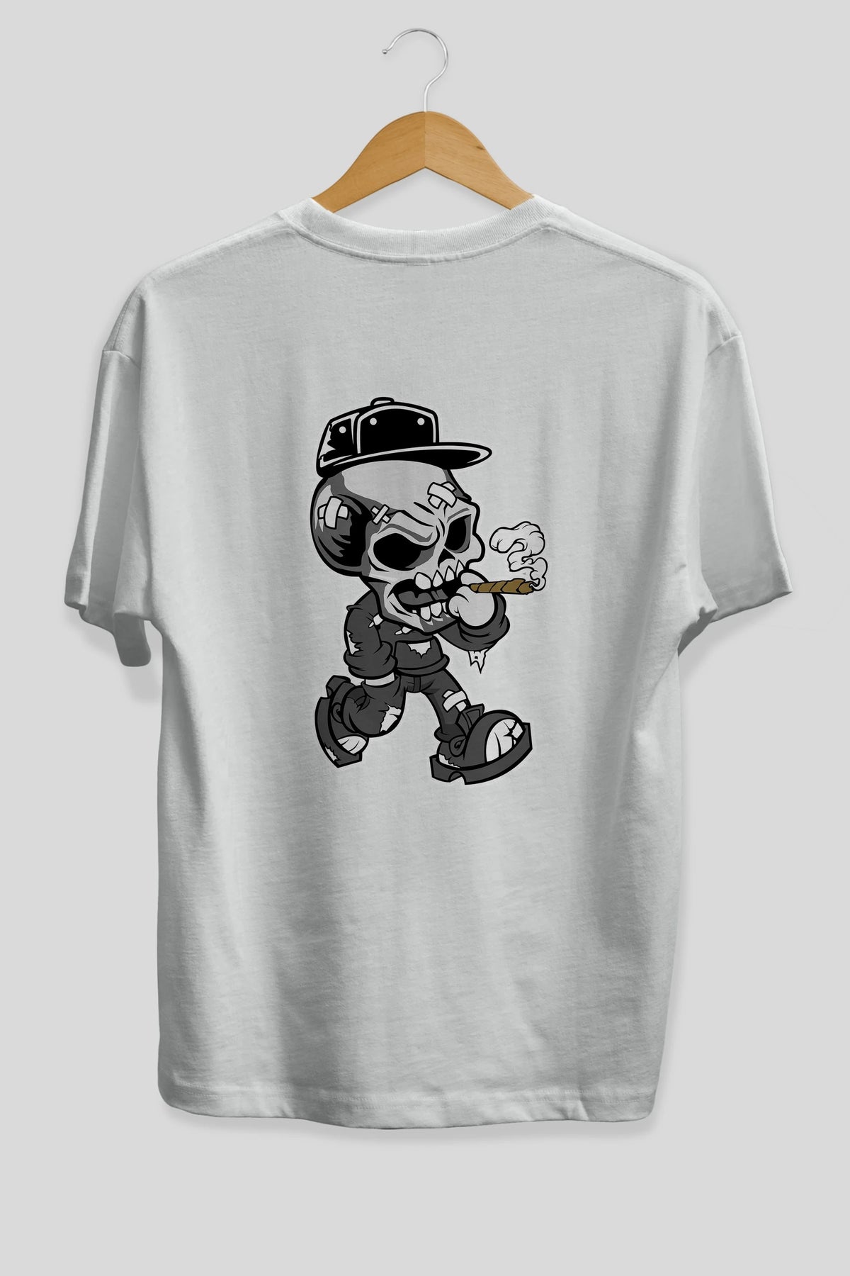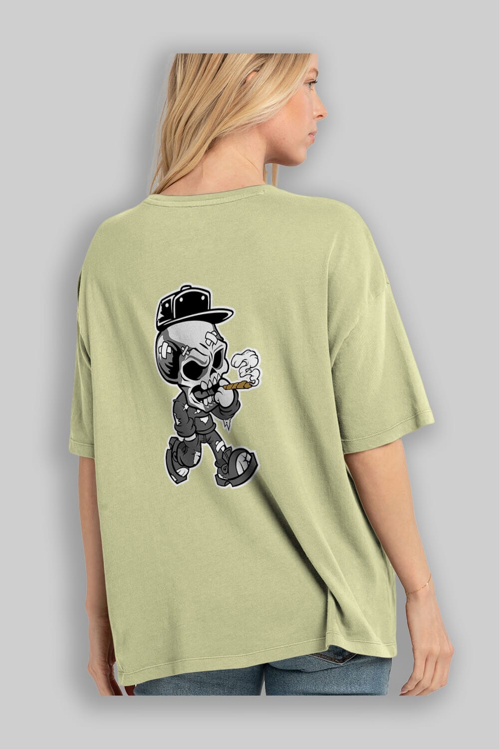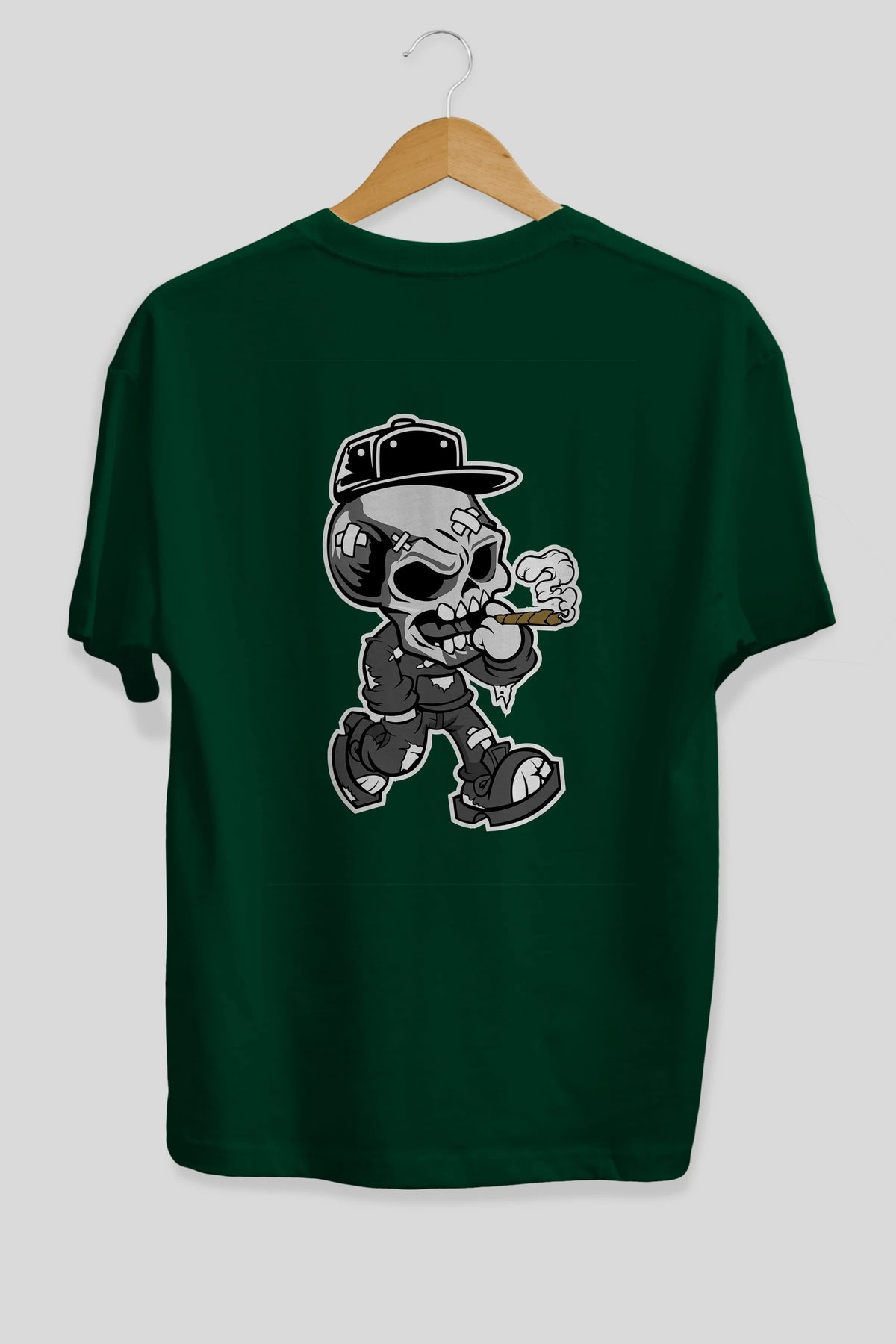 Skull Smoker Arka Baskılı Oversize t-shirt Erkek Kadın Unisex %100 Pamuk tişort