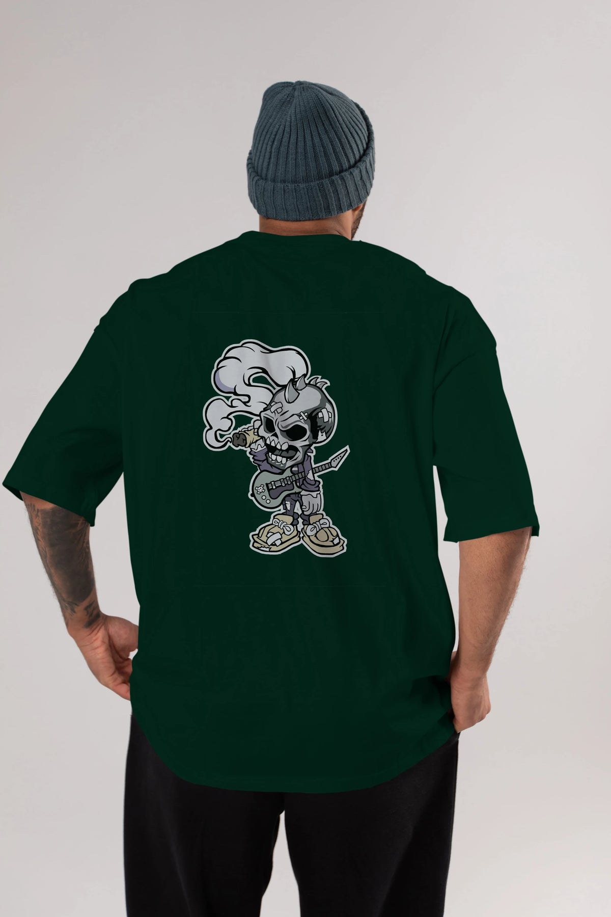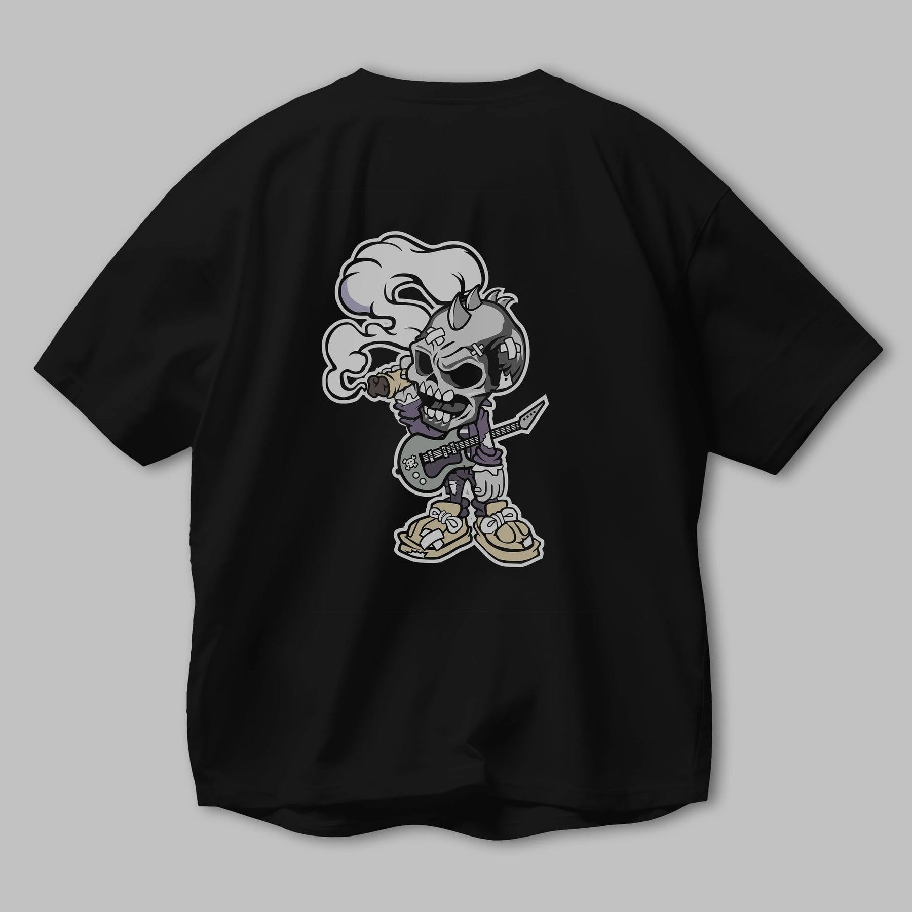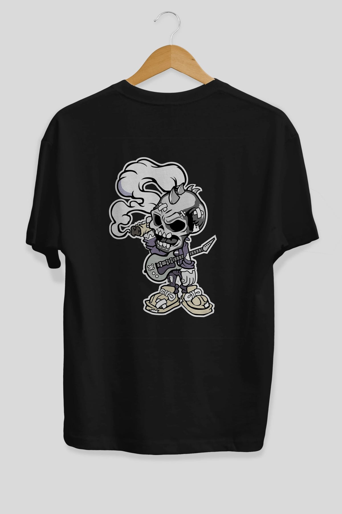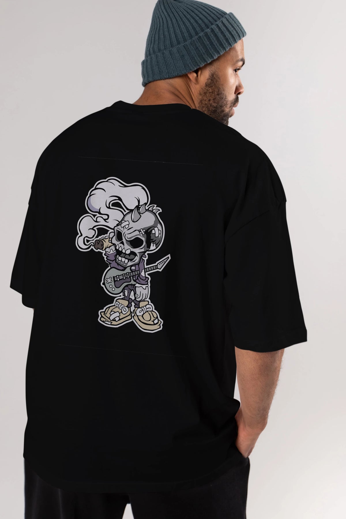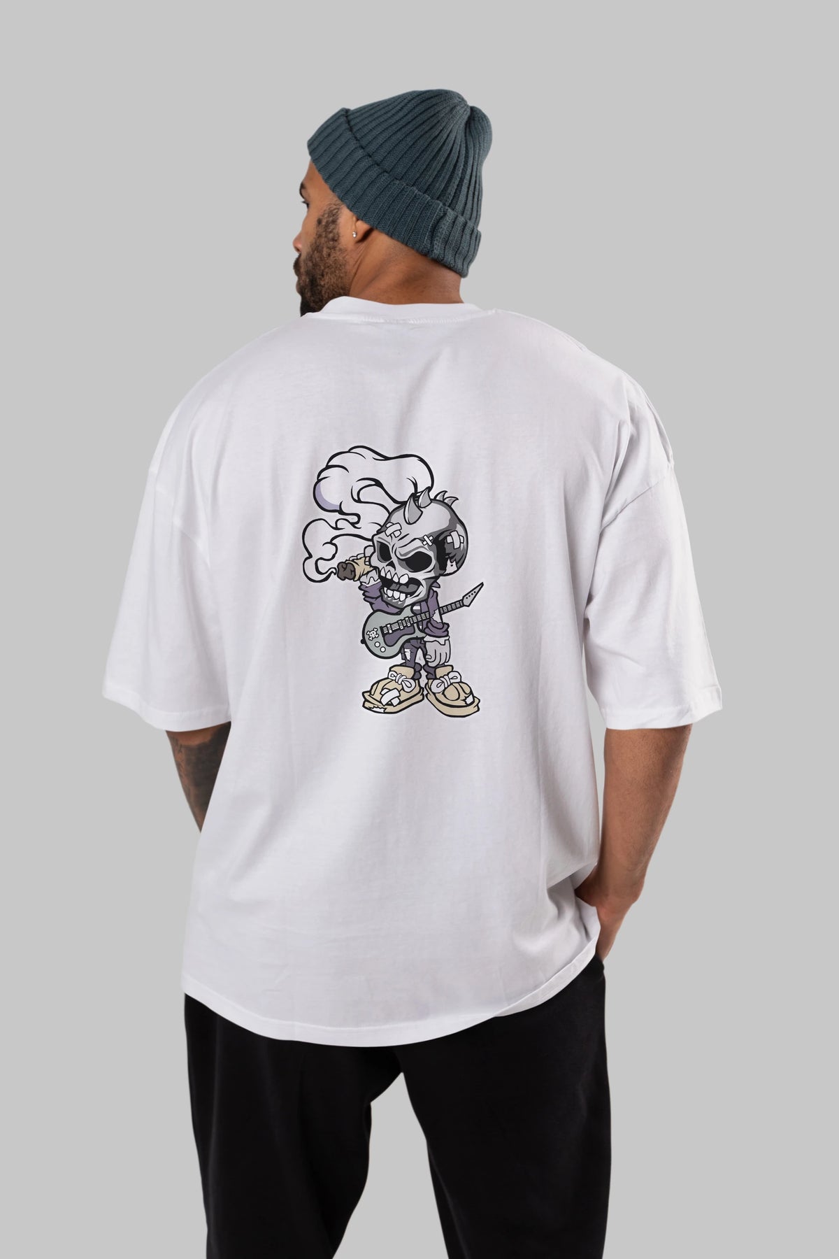 Skull Smoker Punk Rocker Arka Baskılı Oversize t-shirt Erkek Kadın Unisex %100 Pamuk tişort