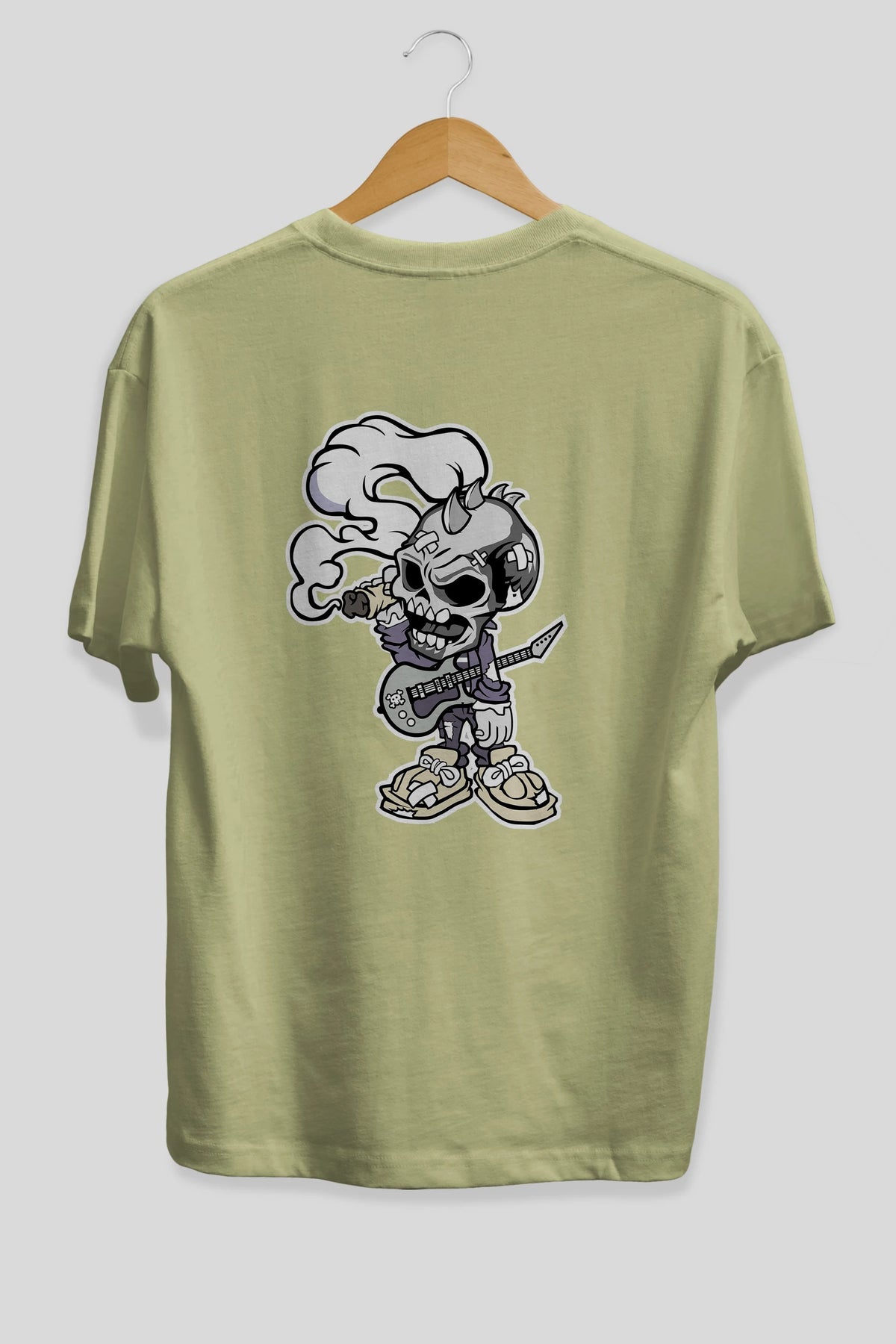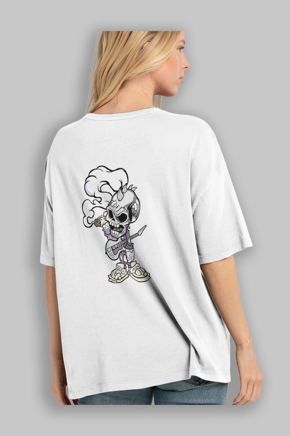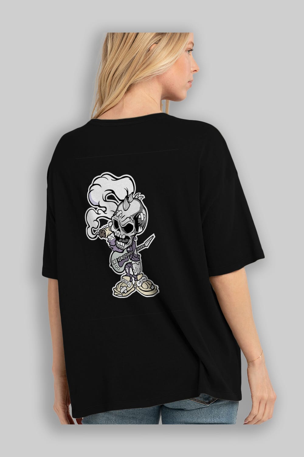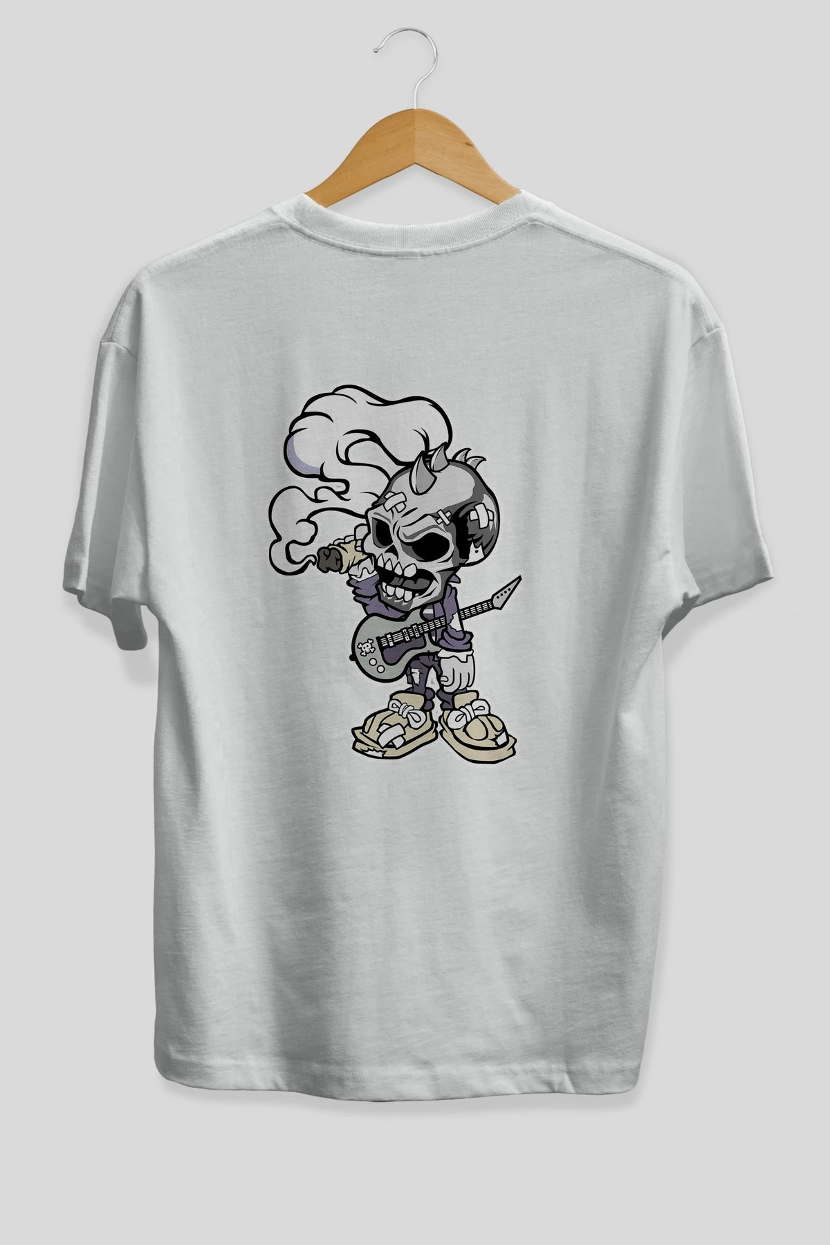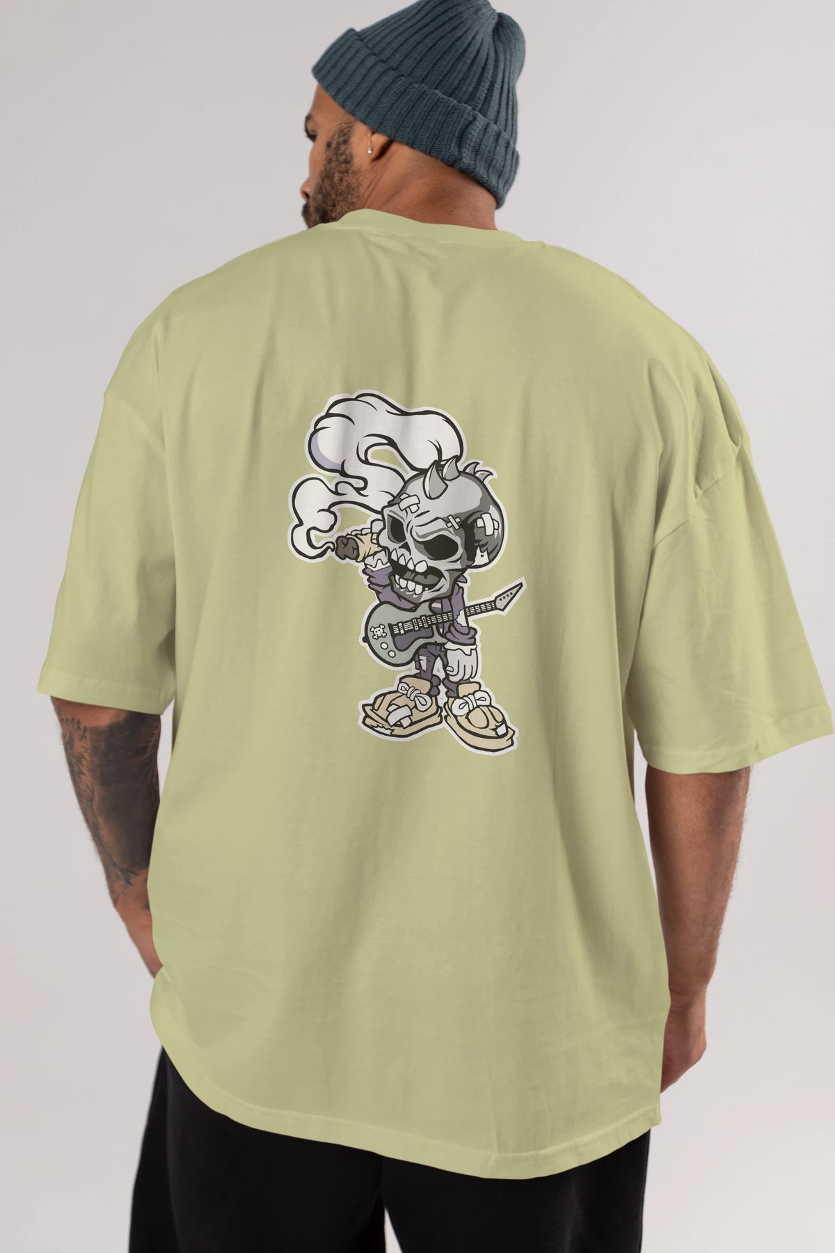 Skull Smoker Punk Rocker Arka Baskılı Oversize t-shirt Erkek Kadın Unisex %100 Pamuk tişort