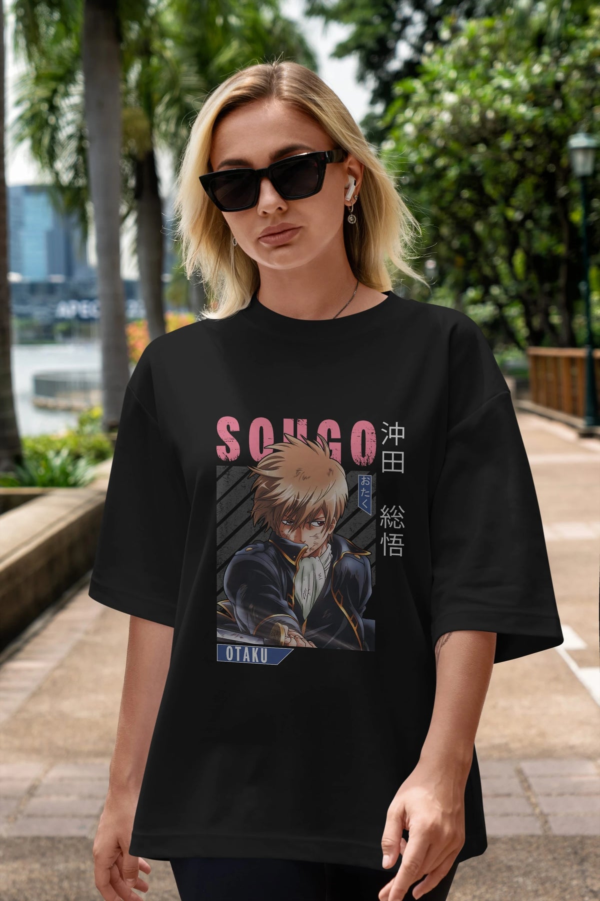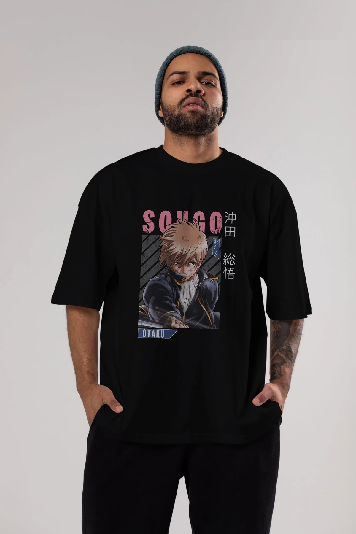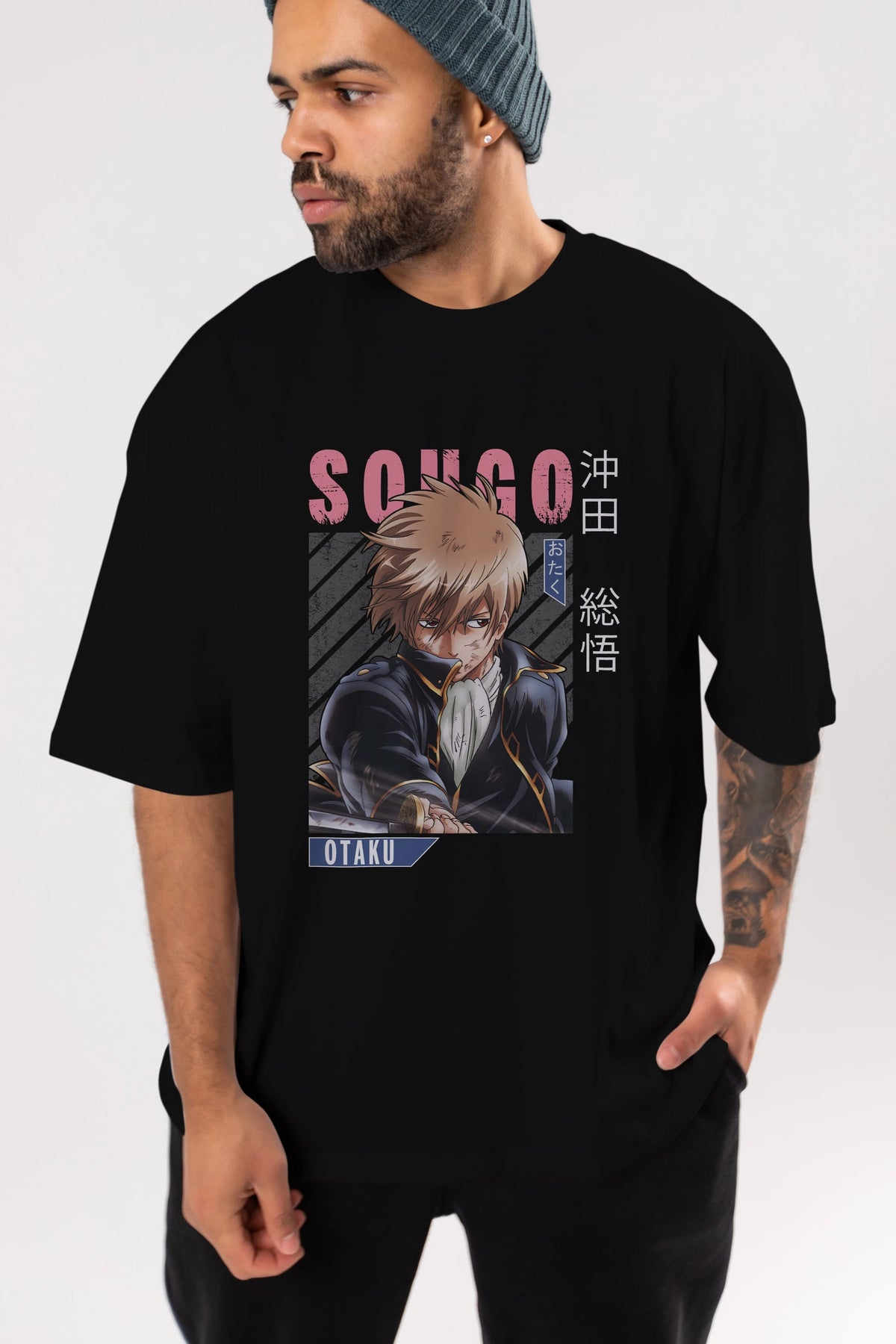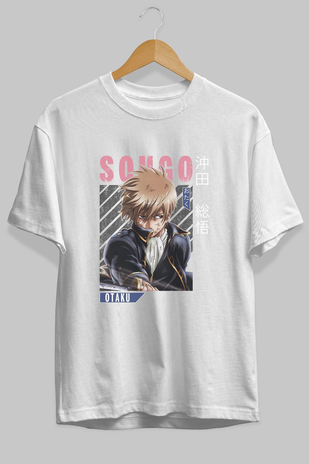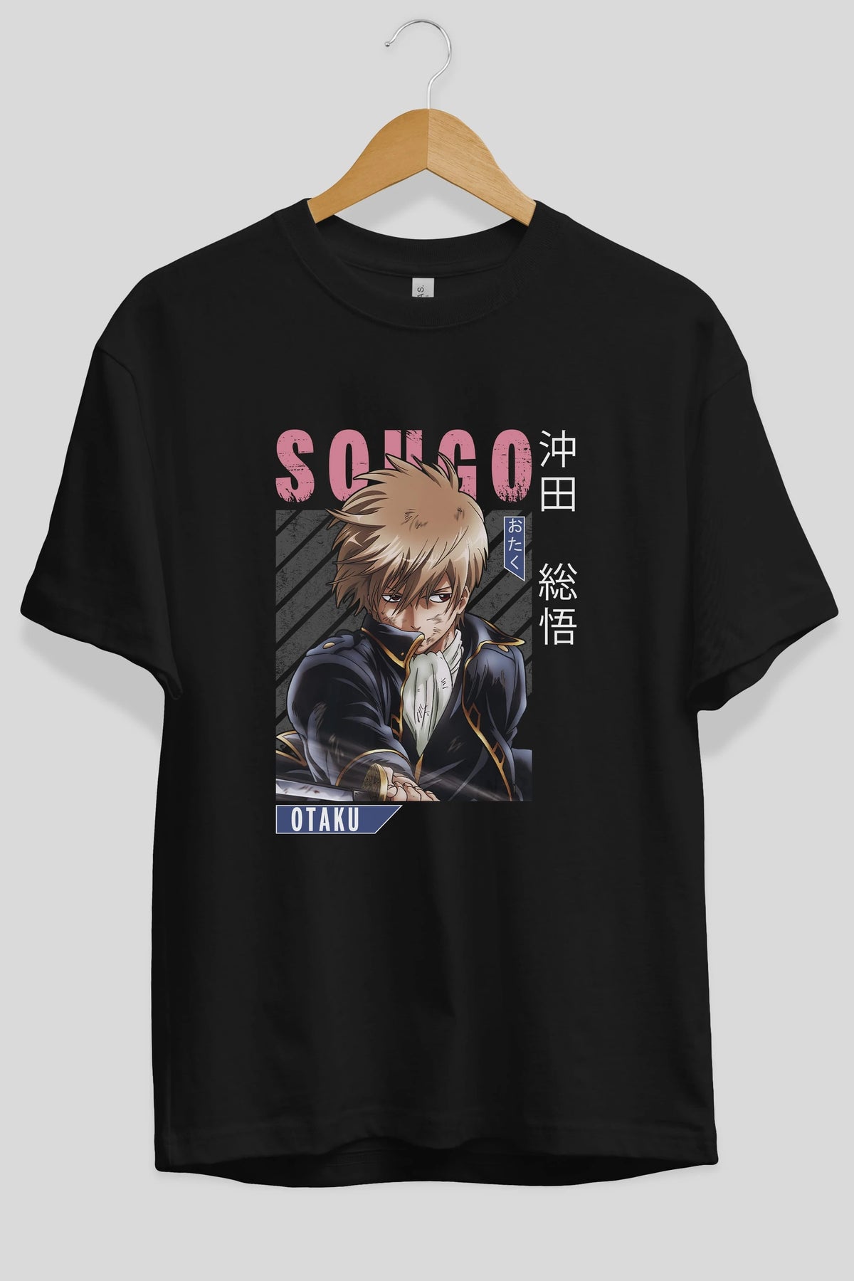 Sougo Okita GINTAMA Anime Ön Baskılı Oversize t-shirt %100 pamuk Erkek Kadın Unisex