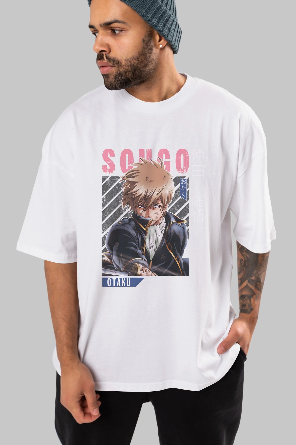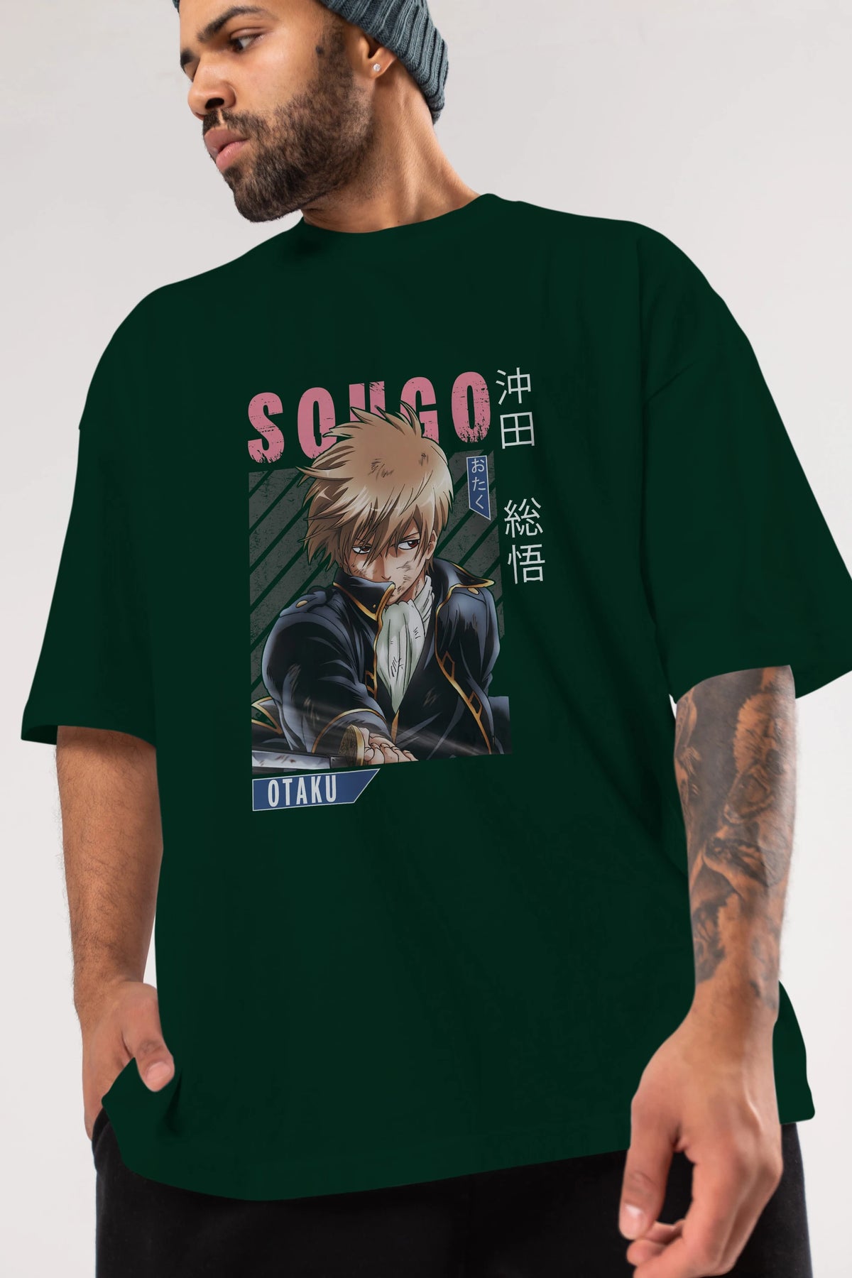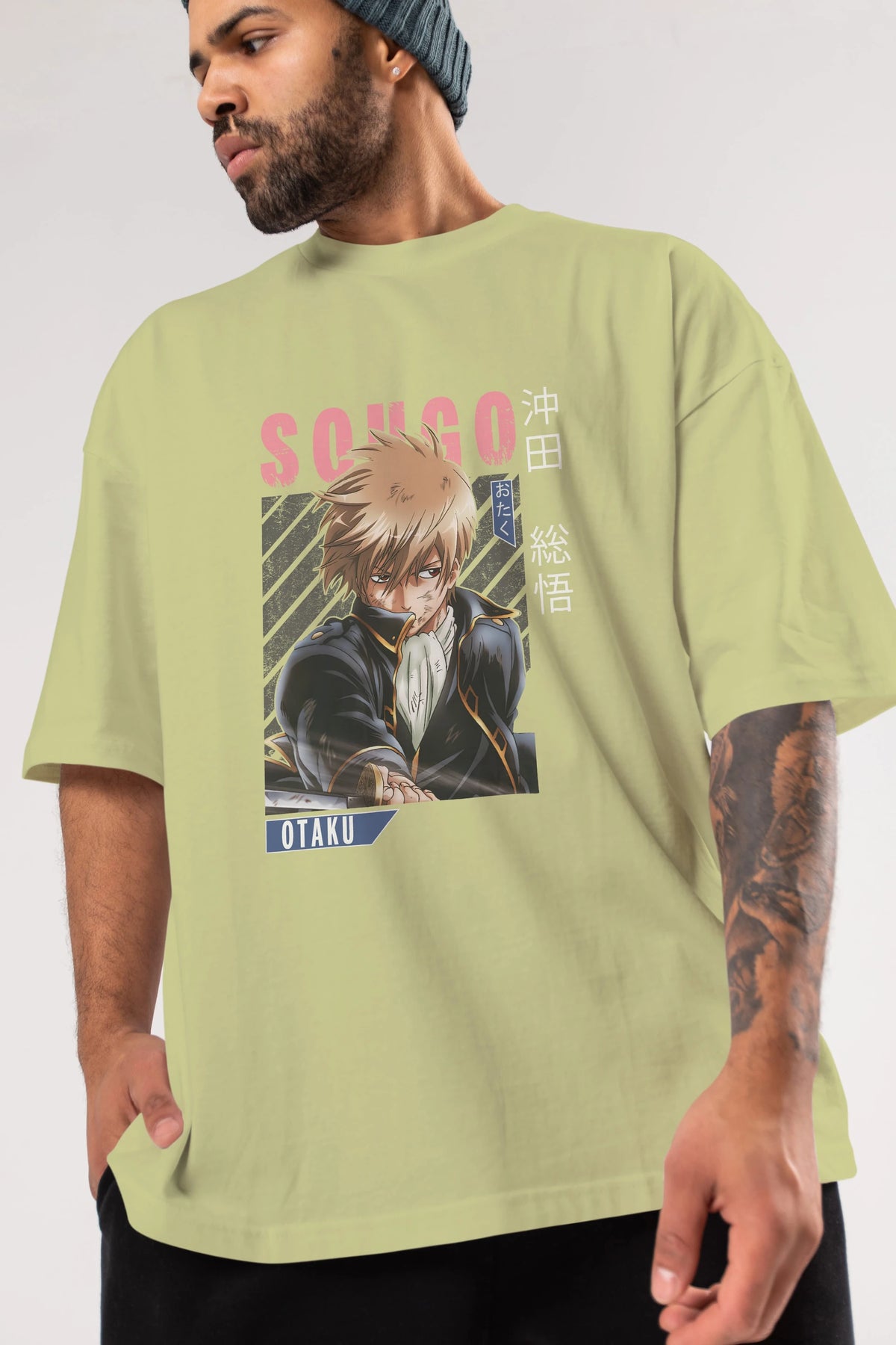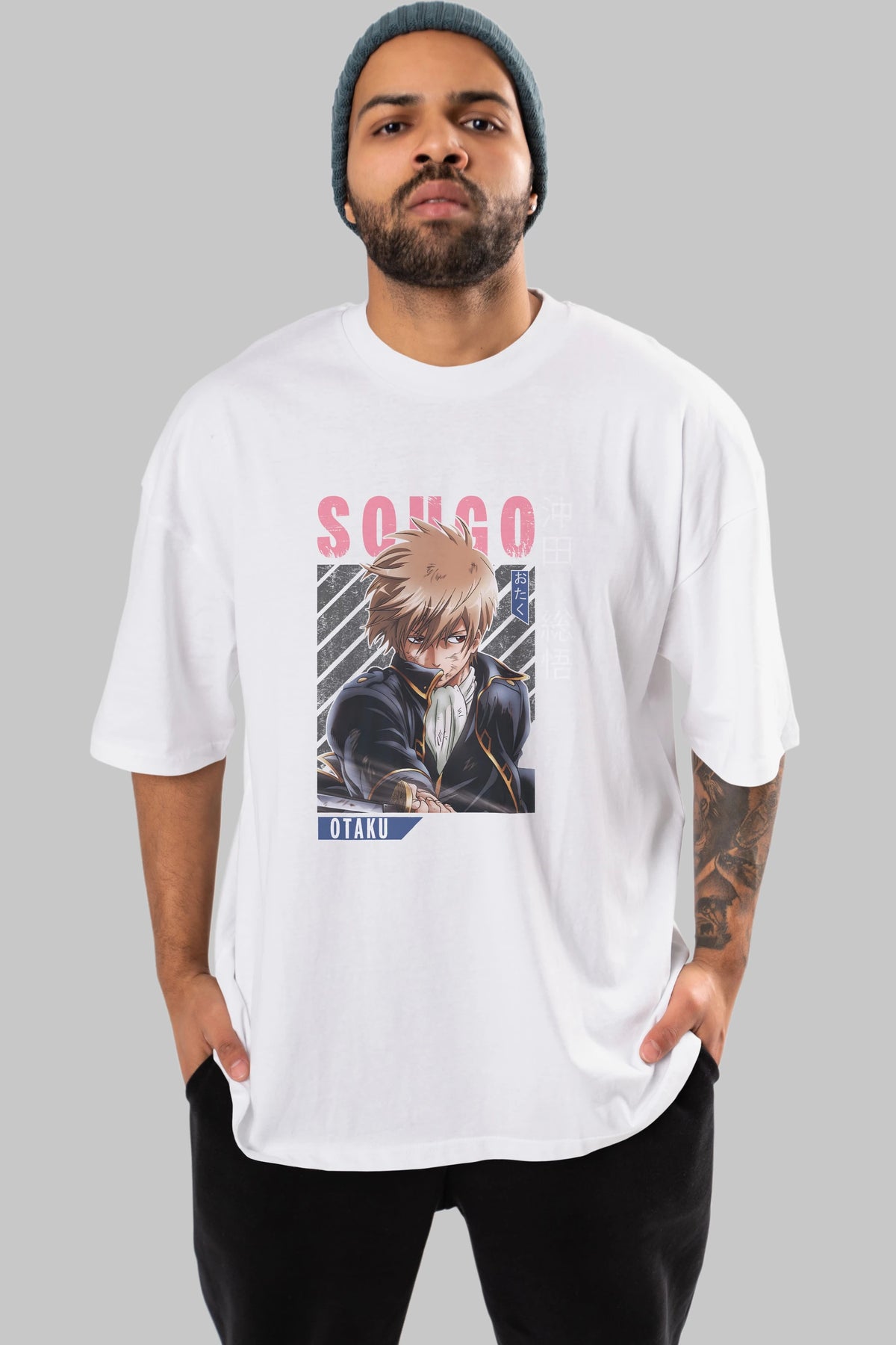 Sougo Okita GINTAMA Anime Ön Baskılı Oversize t-shirt %100 pamuk Erkek Kadın Unisex