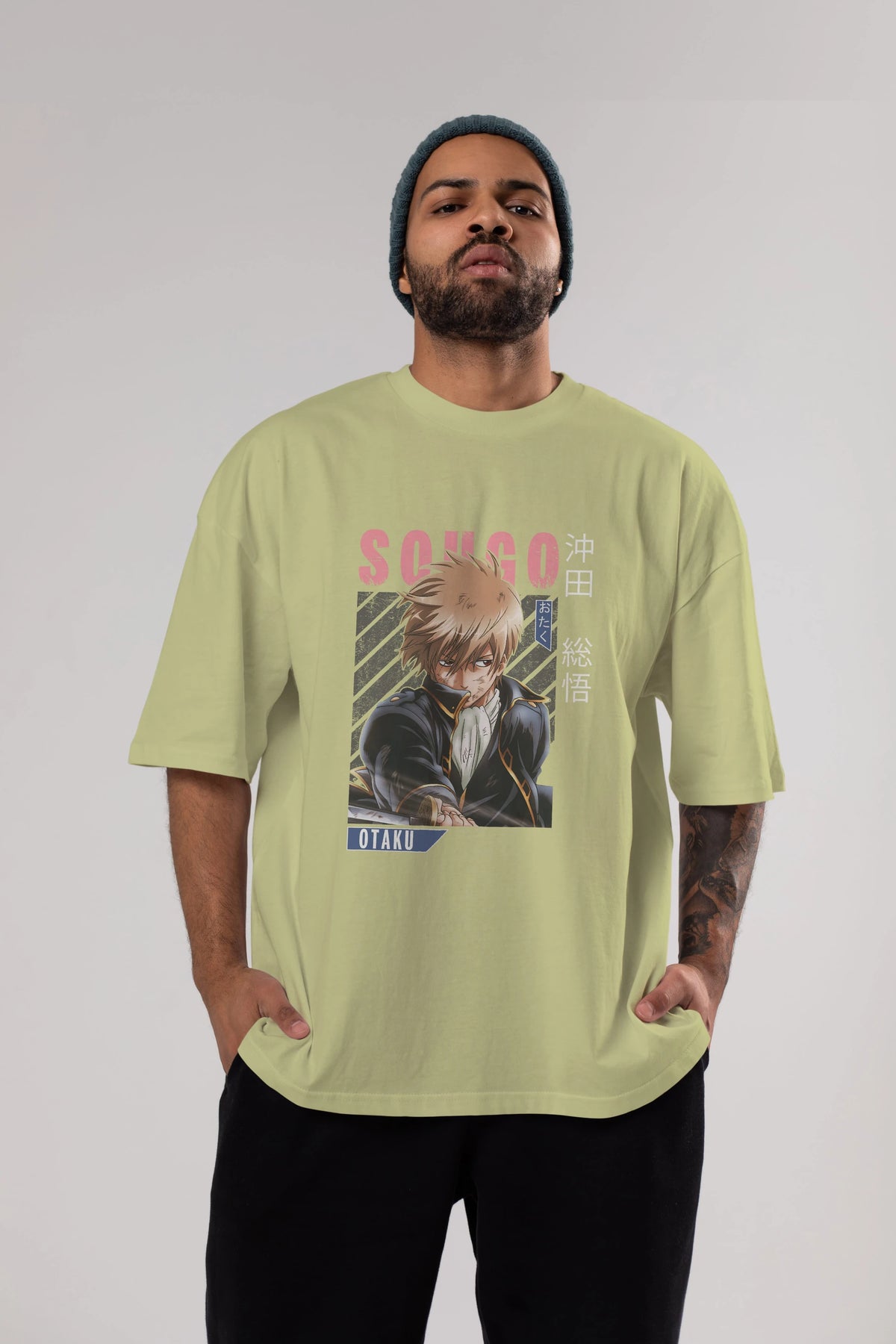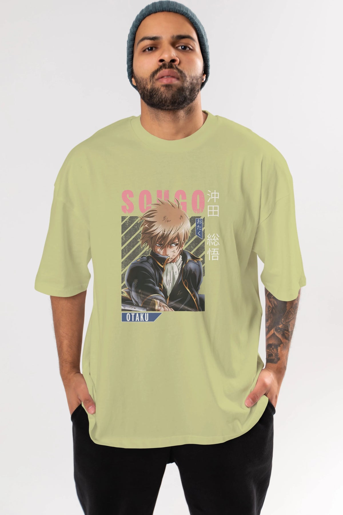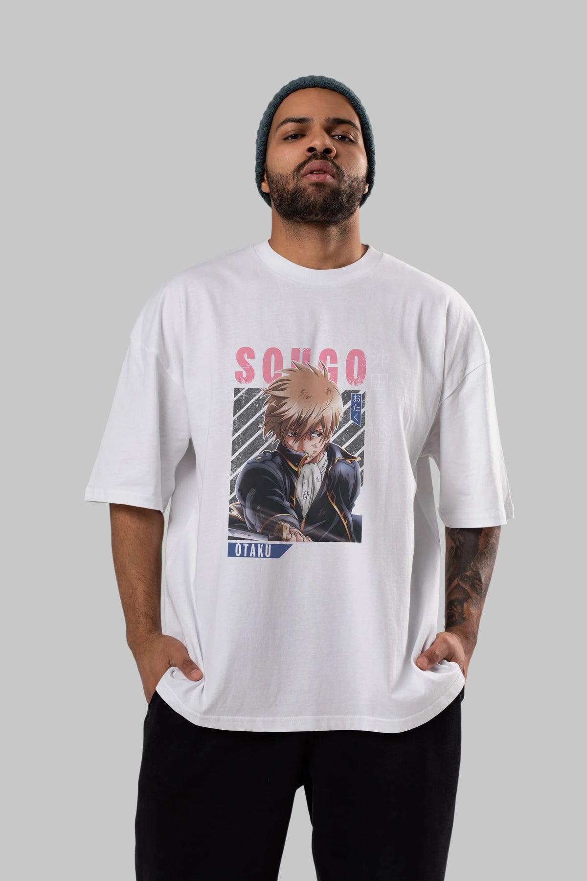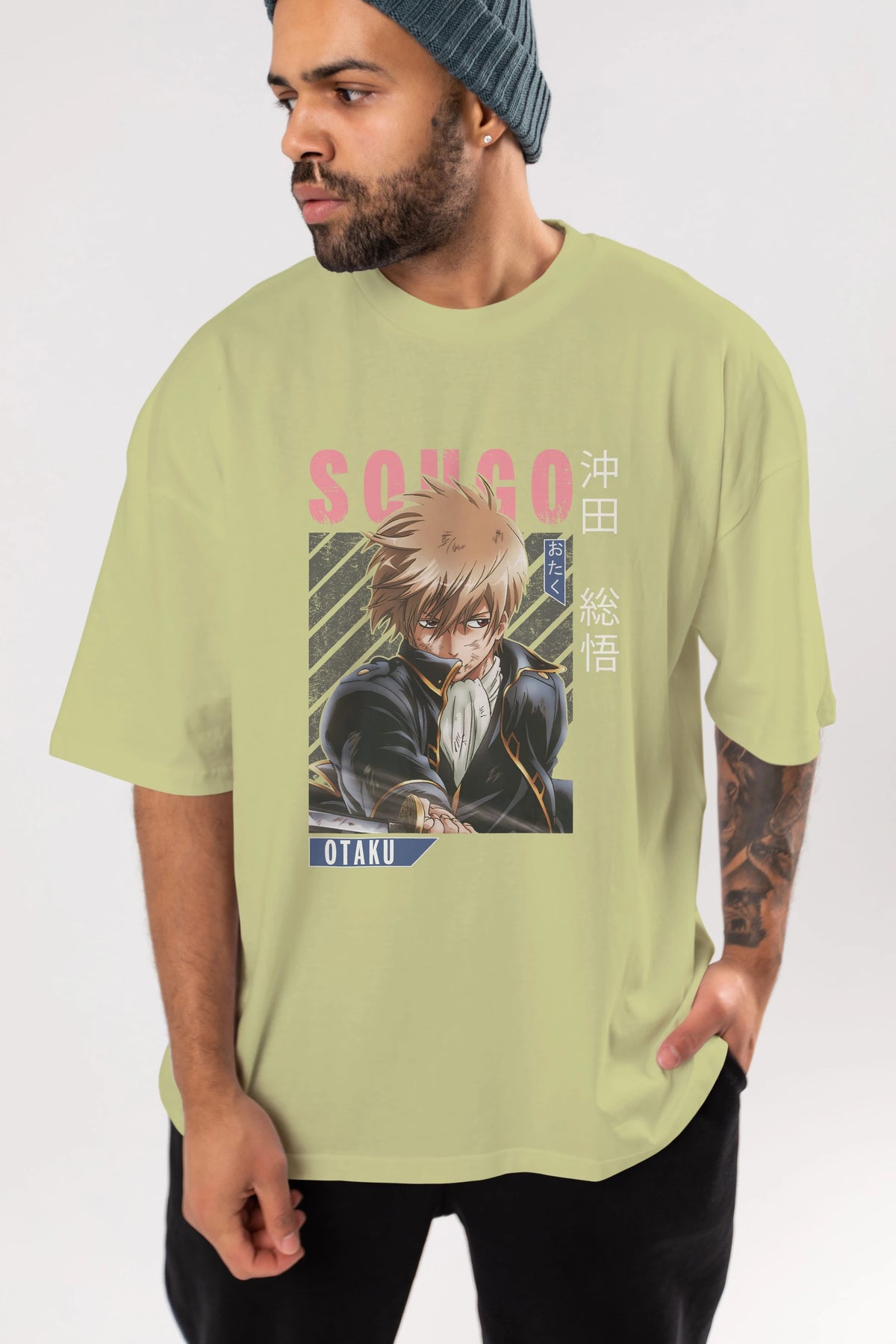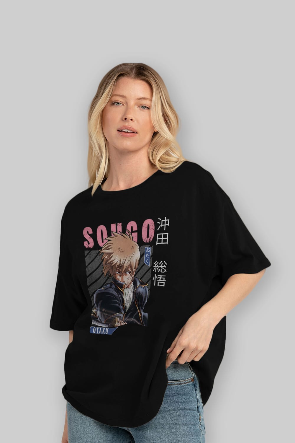 Sougo Okita GINTAMA Anime Ön Baskılı Oversize t-shirt %100 pamuk Erkek Kadın Unisex