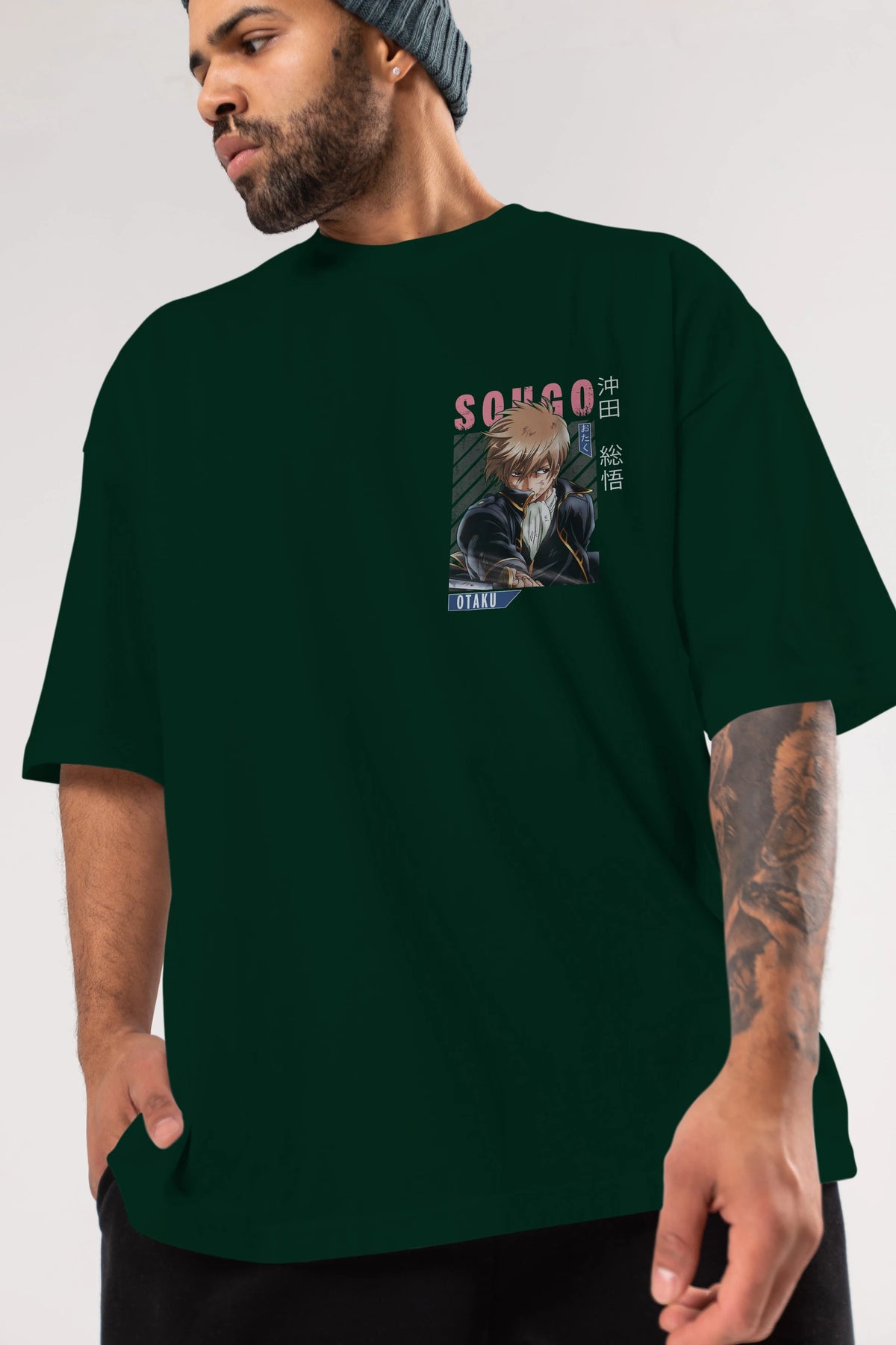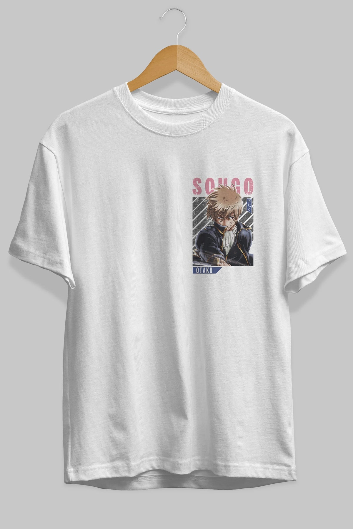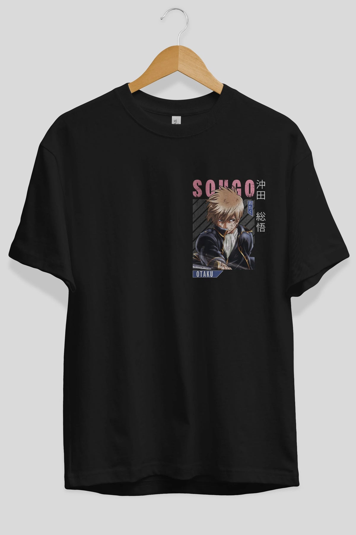 Sougo Okita GINTAMA Ön Sol Baskılı Oversize t-shirt Erkek Kadın Unisex %100 Pamuk Bisiklet Yaka tişort