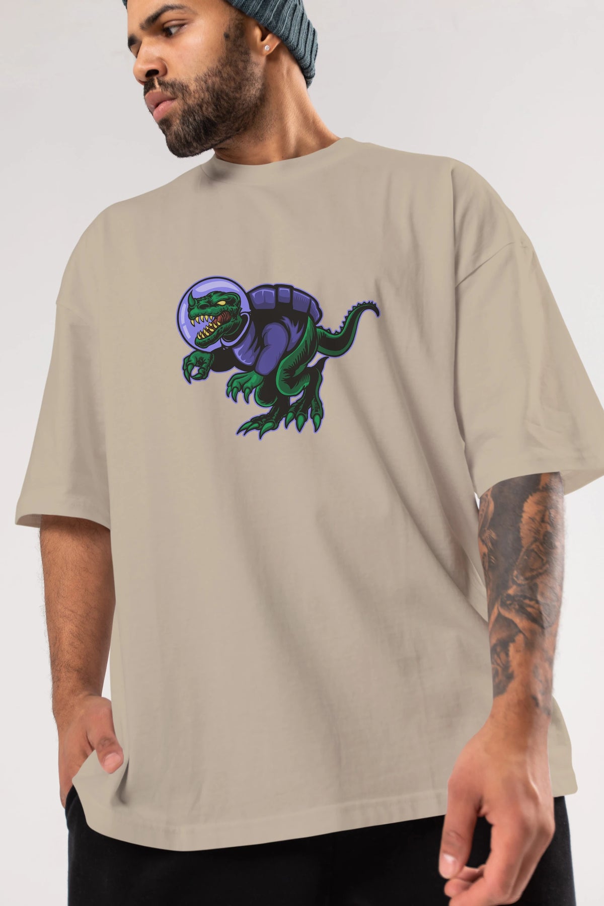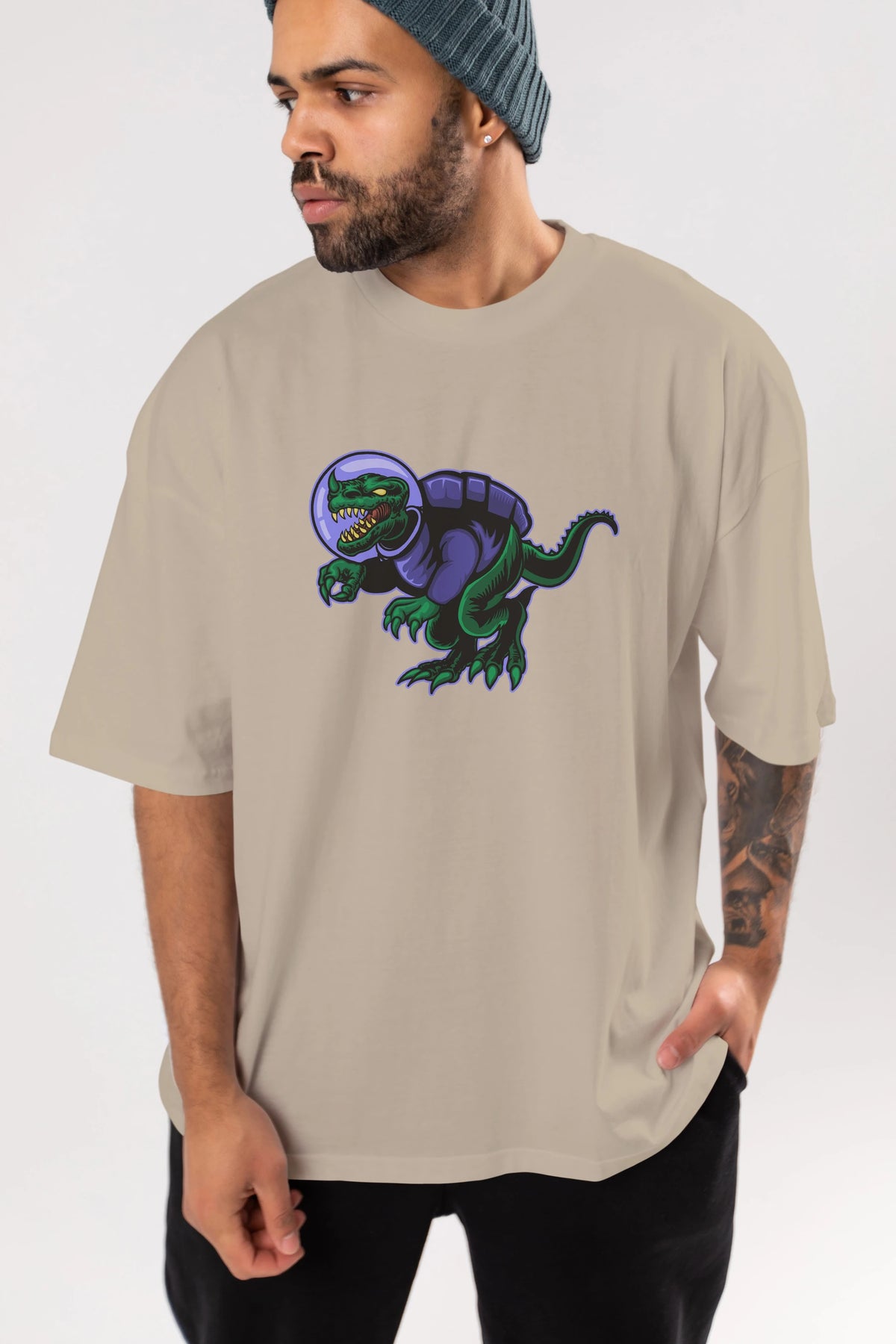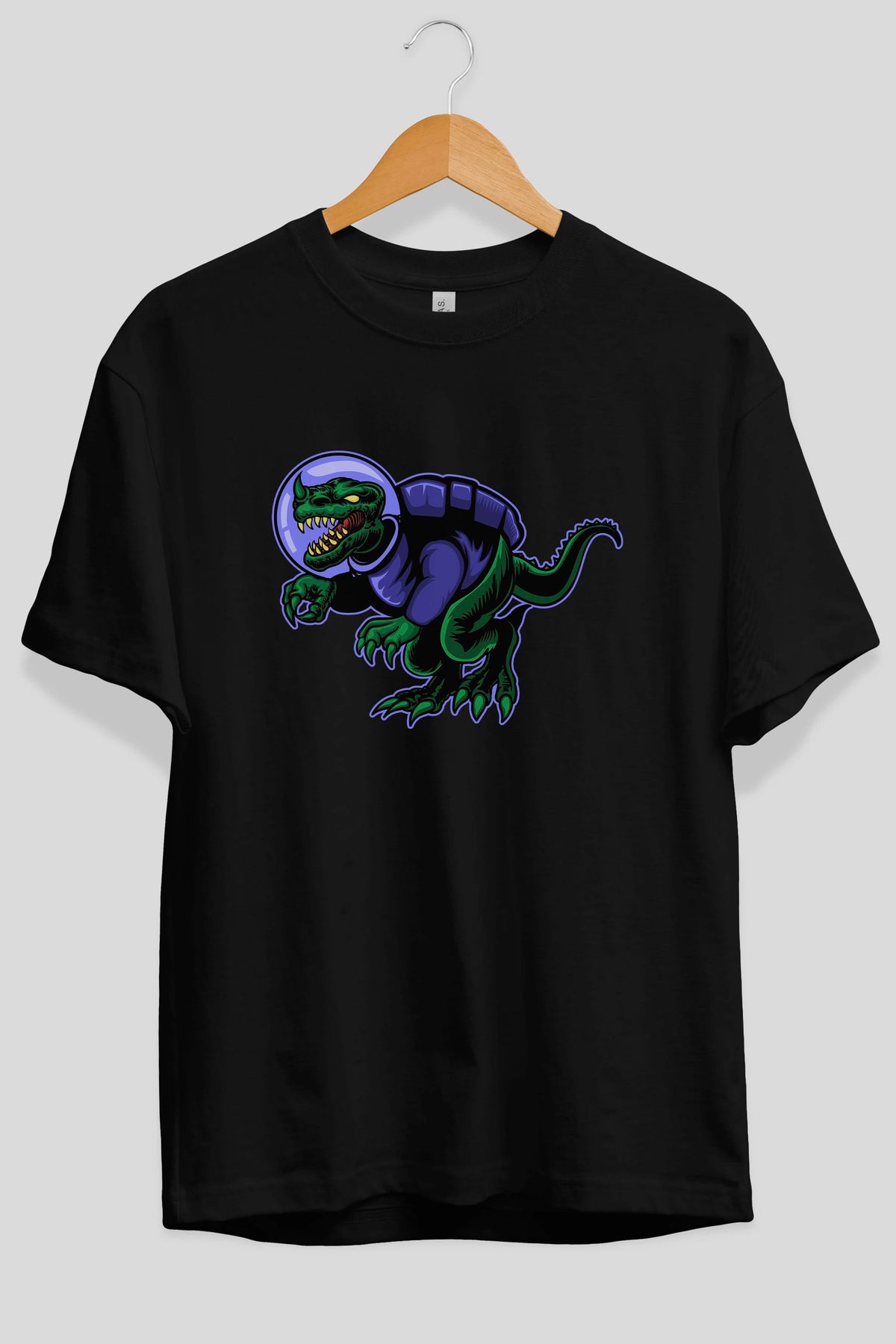 Space Dino Ön Baskılı Oversize t-shirt Erkek Kadın Unisex