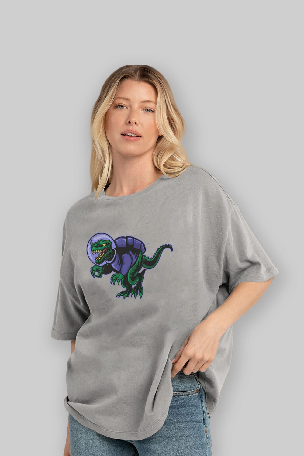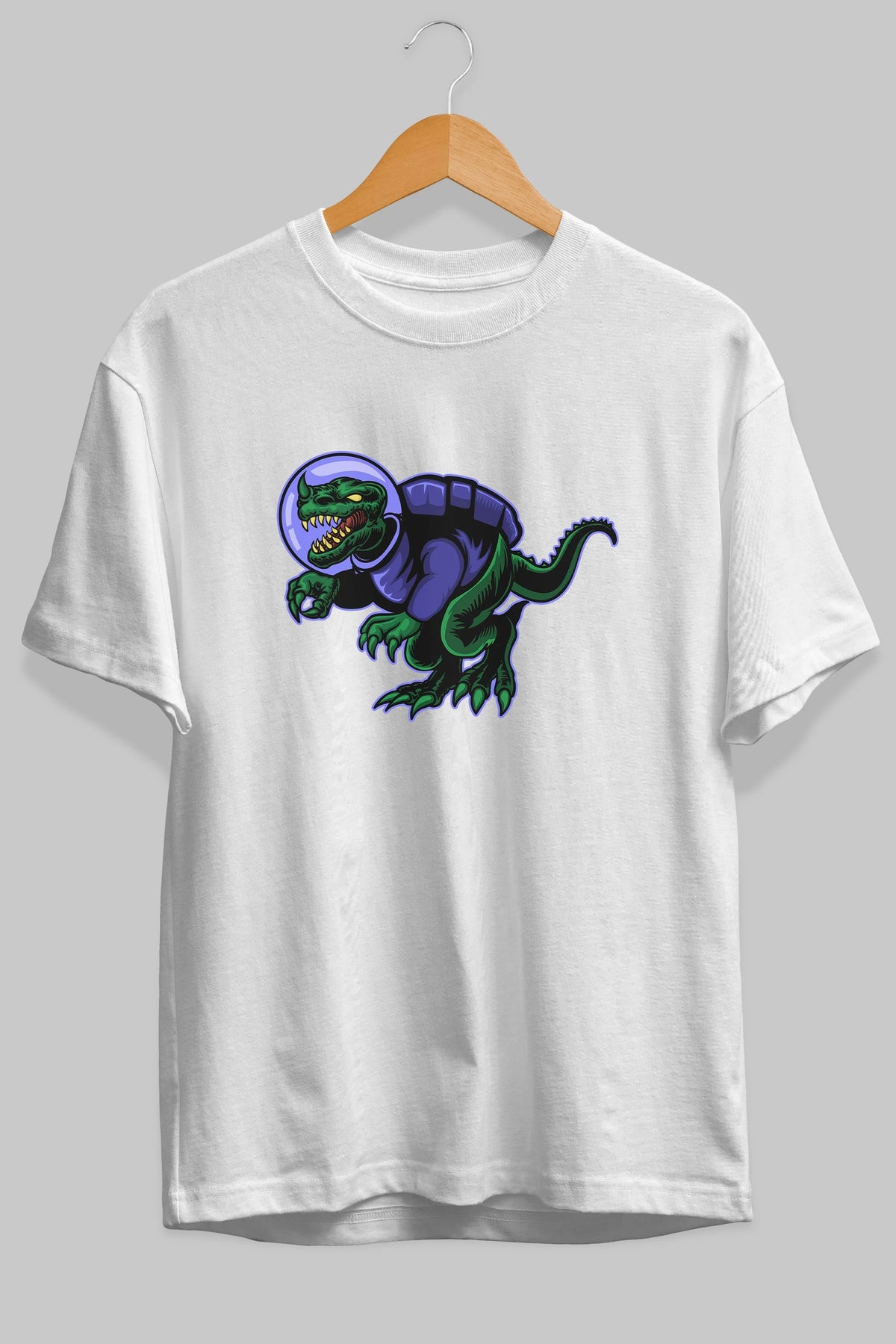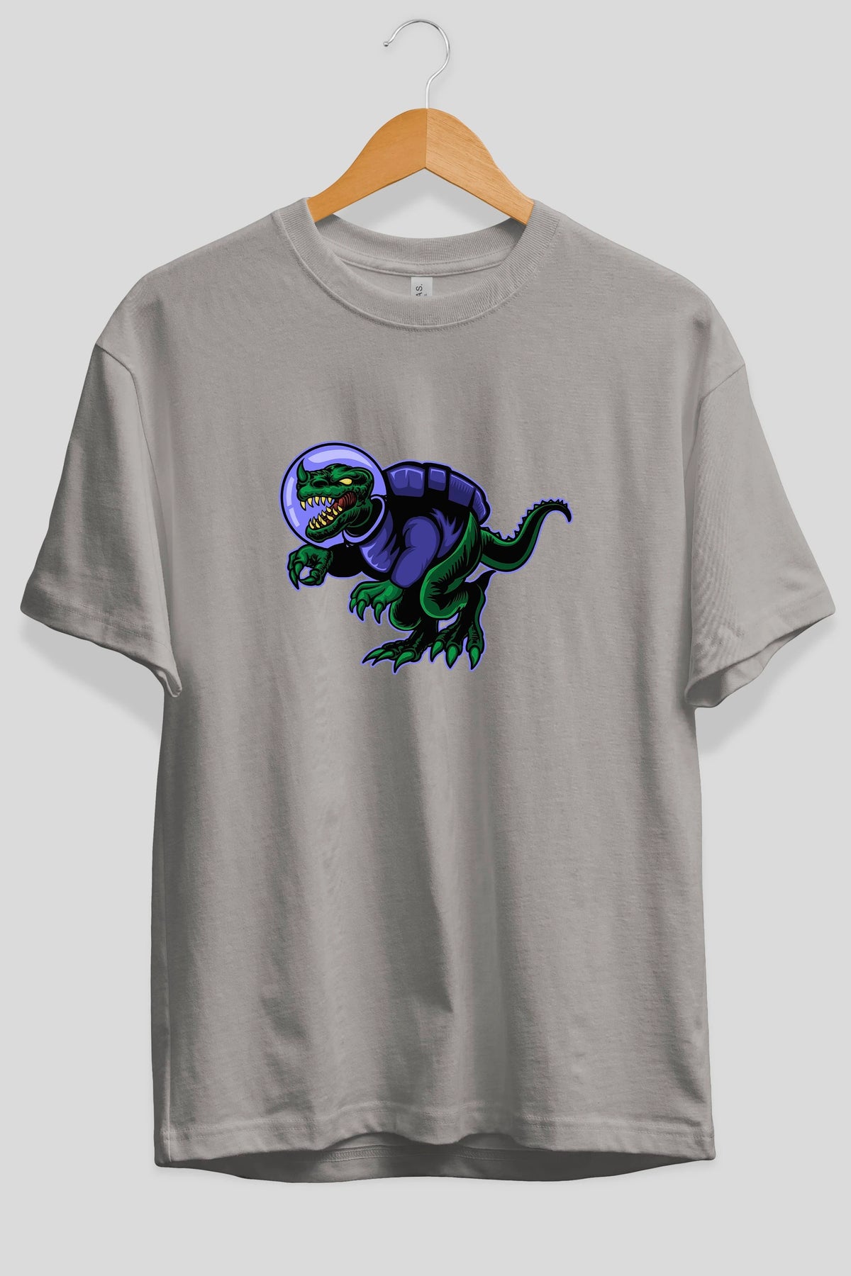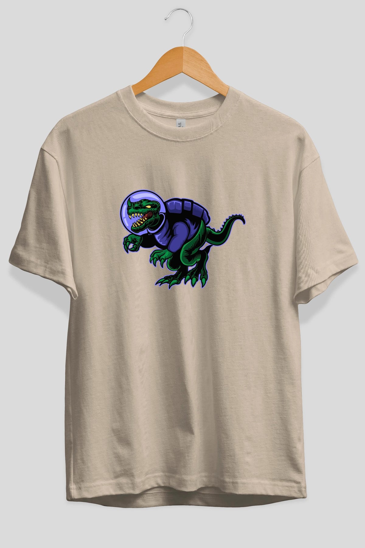 Space Dino Ön Baskılı Oversize t-shirt Erkek Kadın Unisex