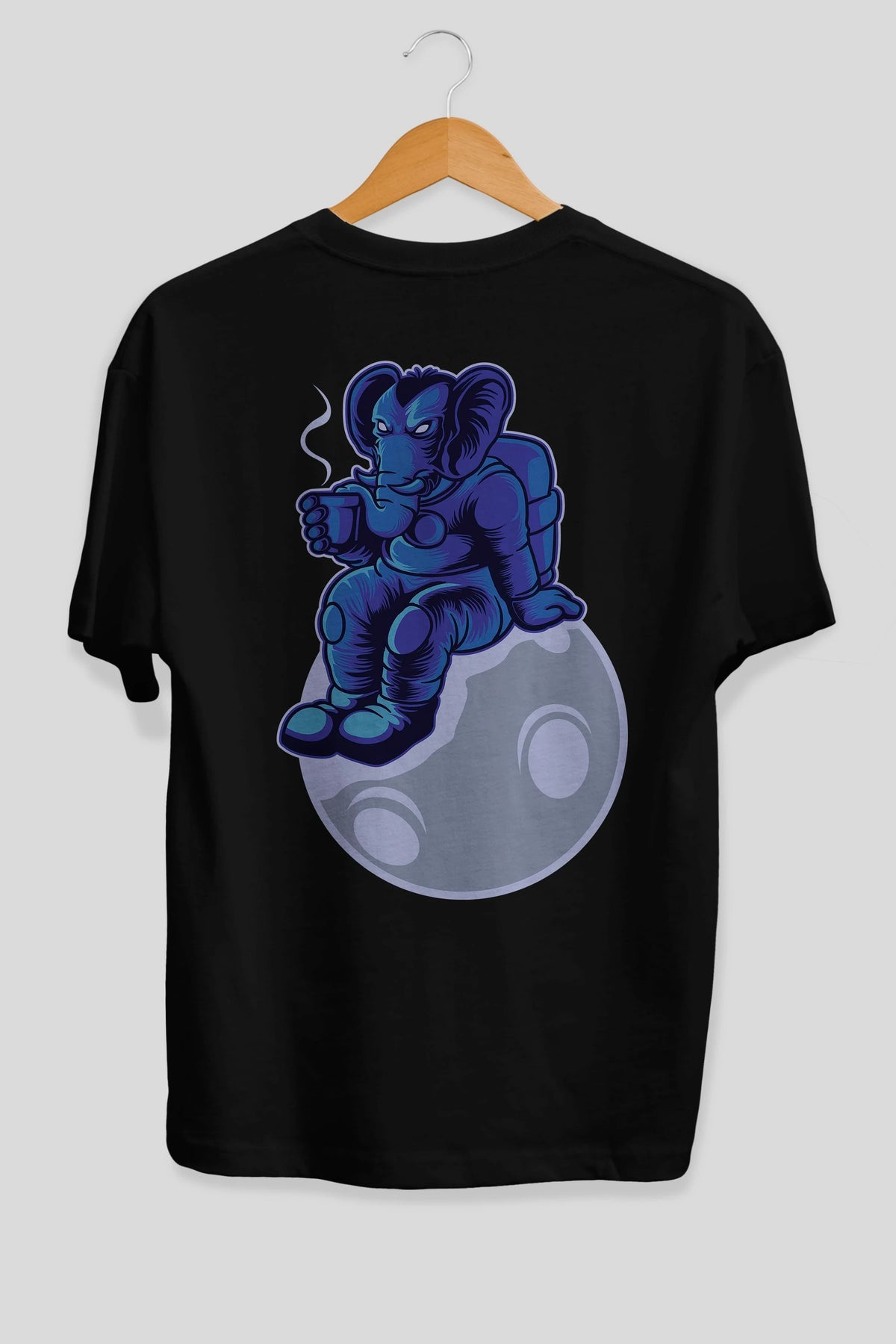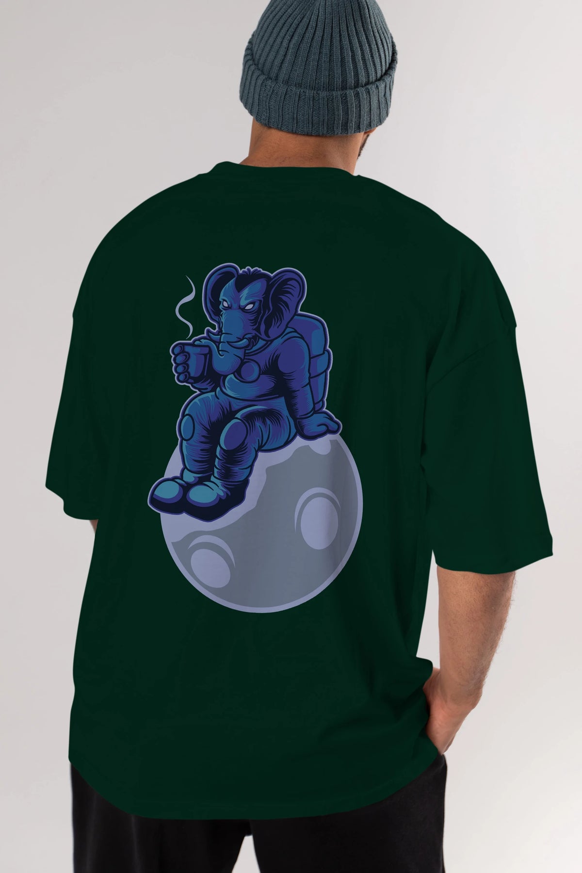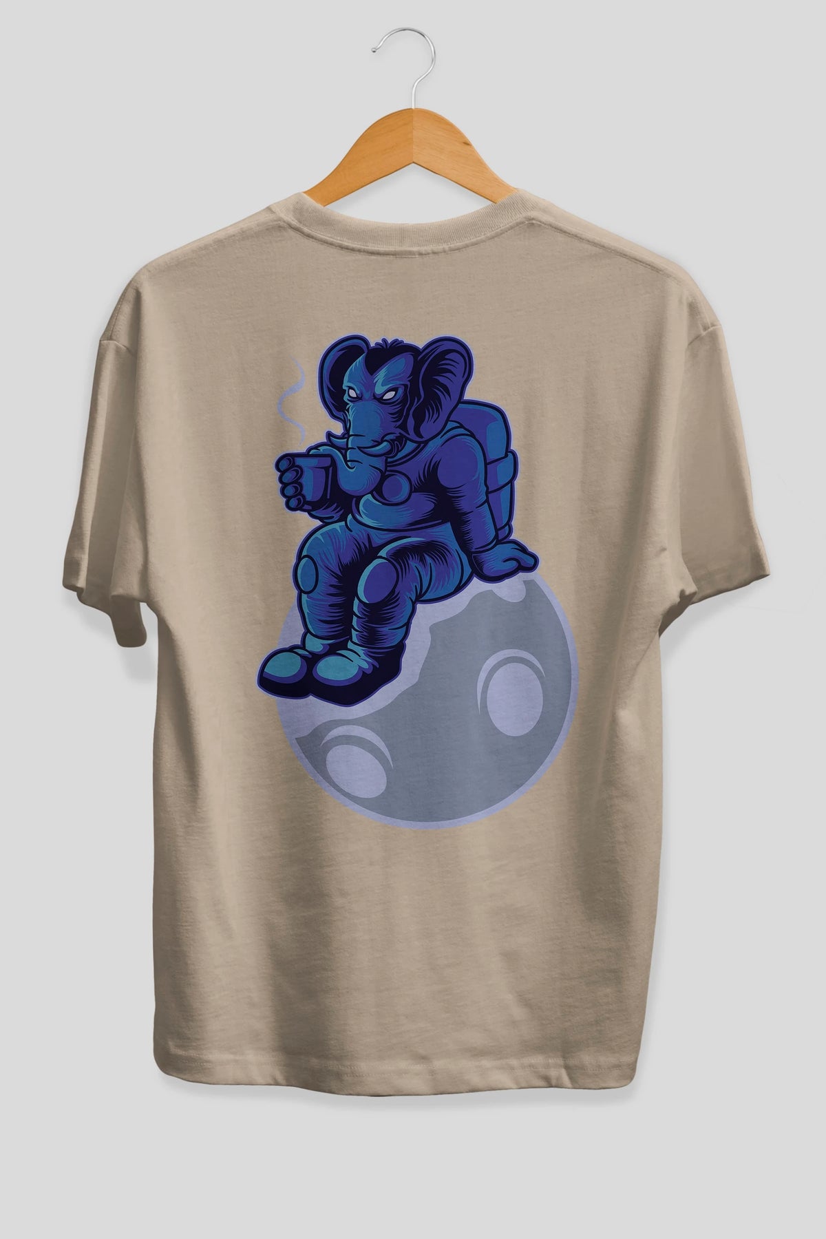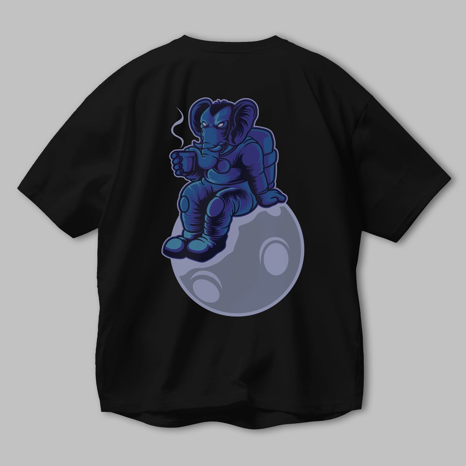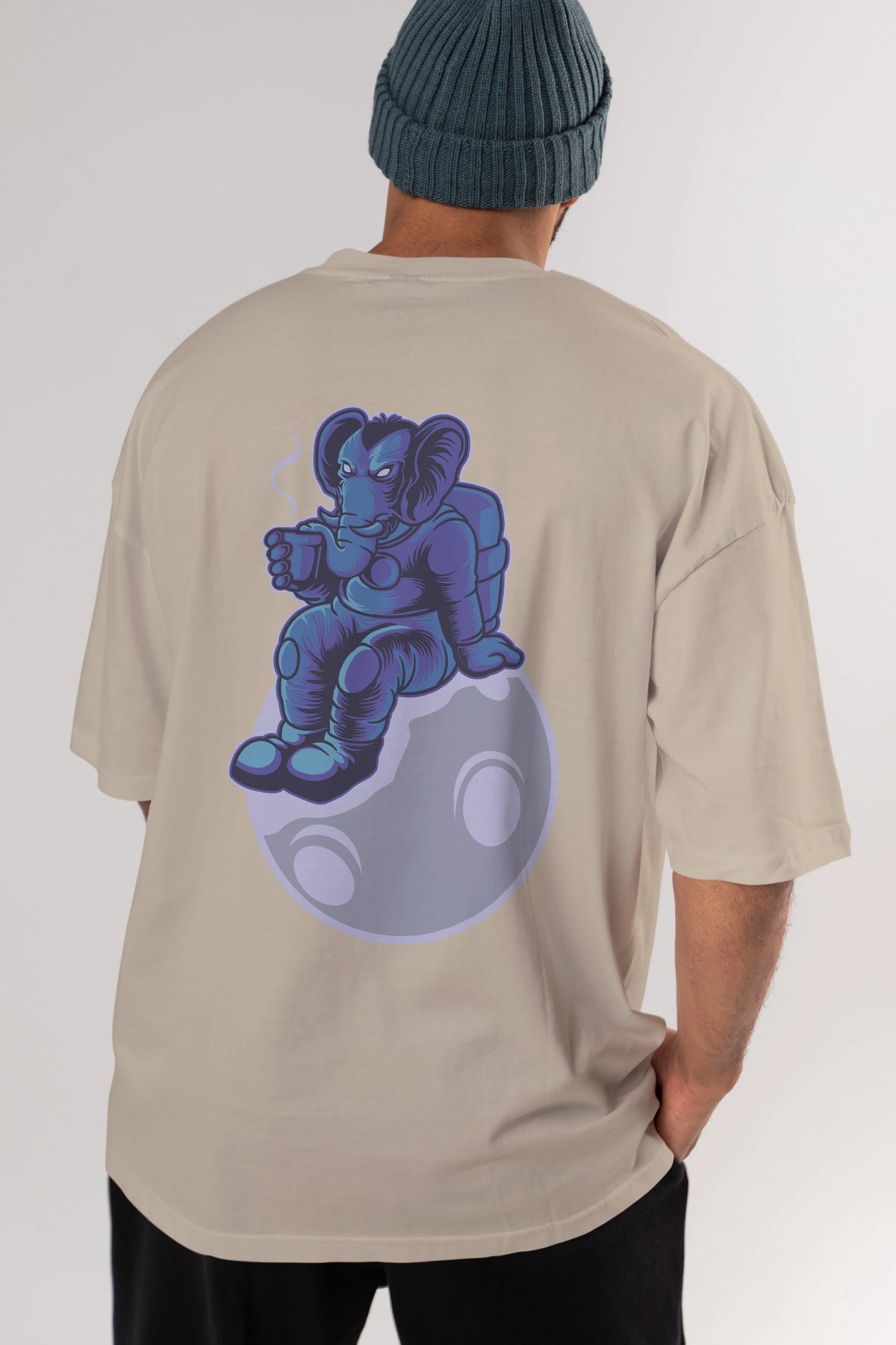Space Elephant Drink Coffee Arka Baskılı Oversize t-shirt Erkek Kadın Unisex