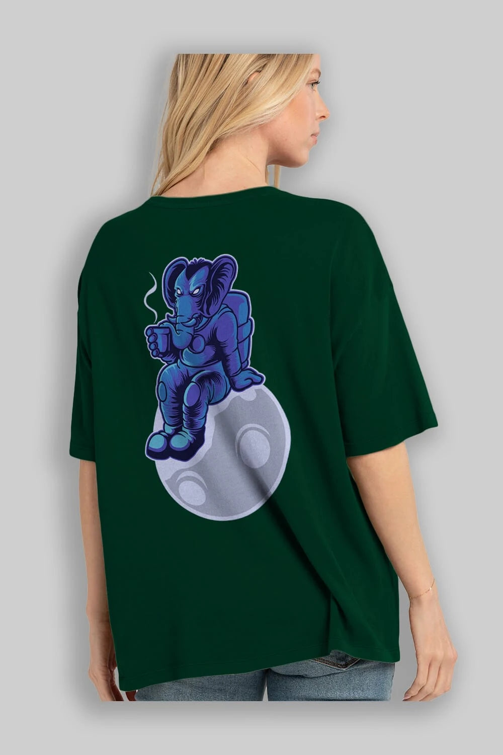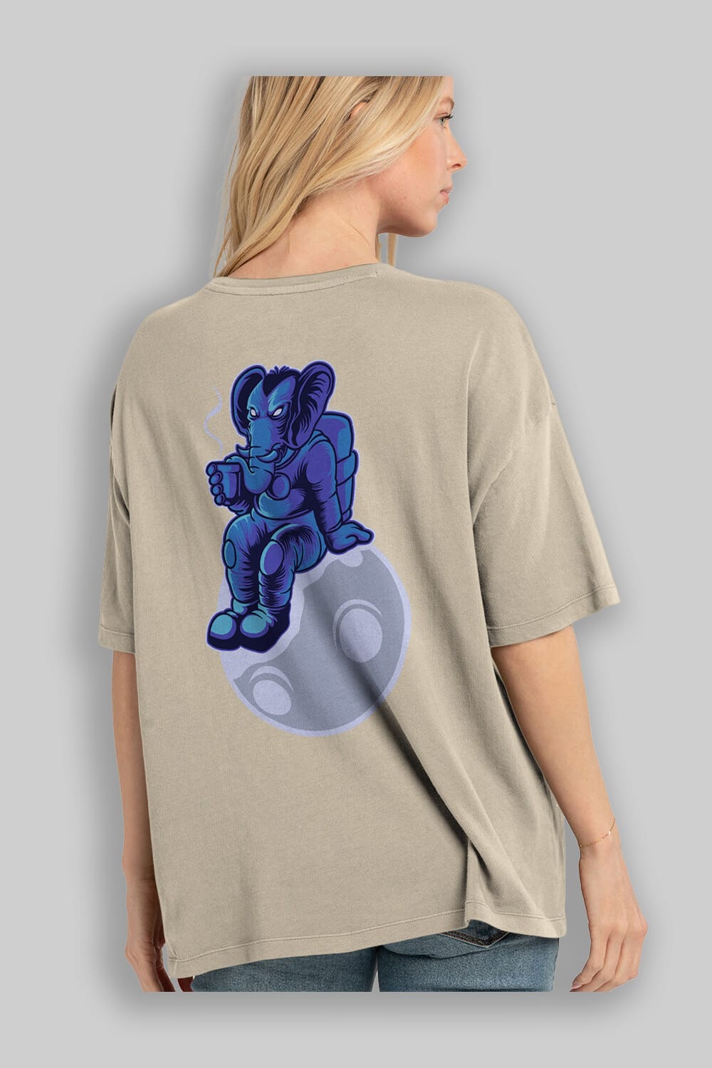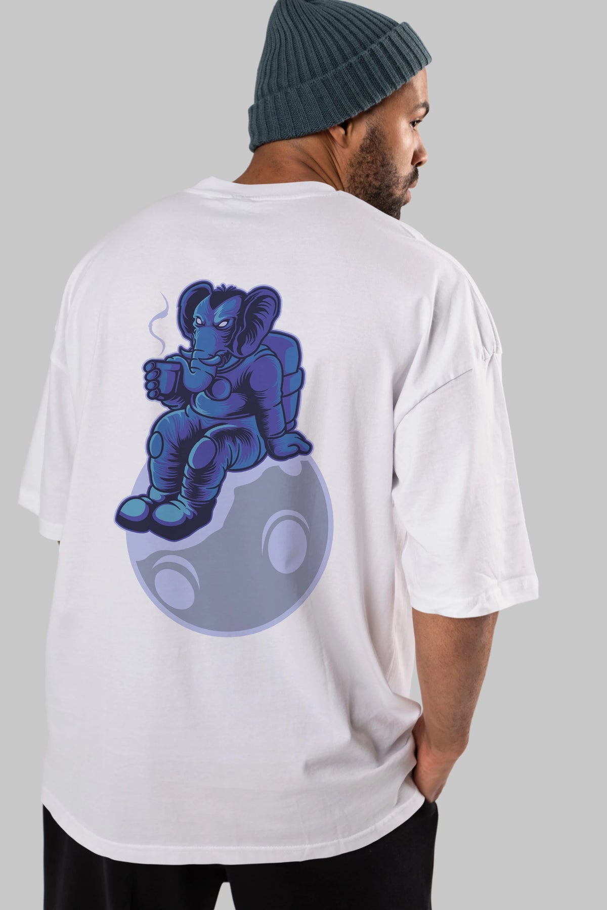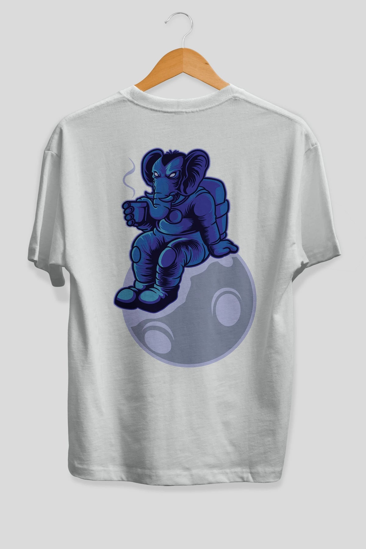 Space Elephant Drink Coffee Arka Baskılı Oversize t-shirt Erkek Kadın Unisex