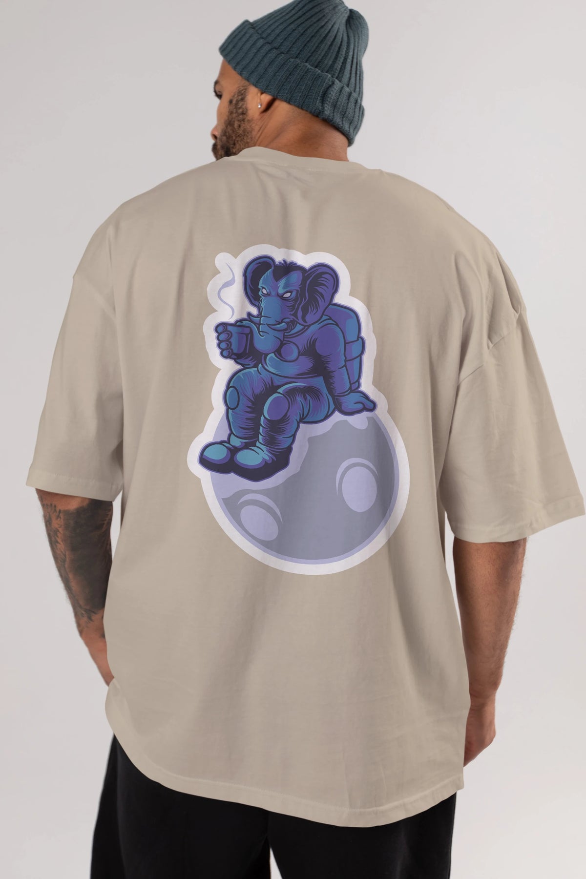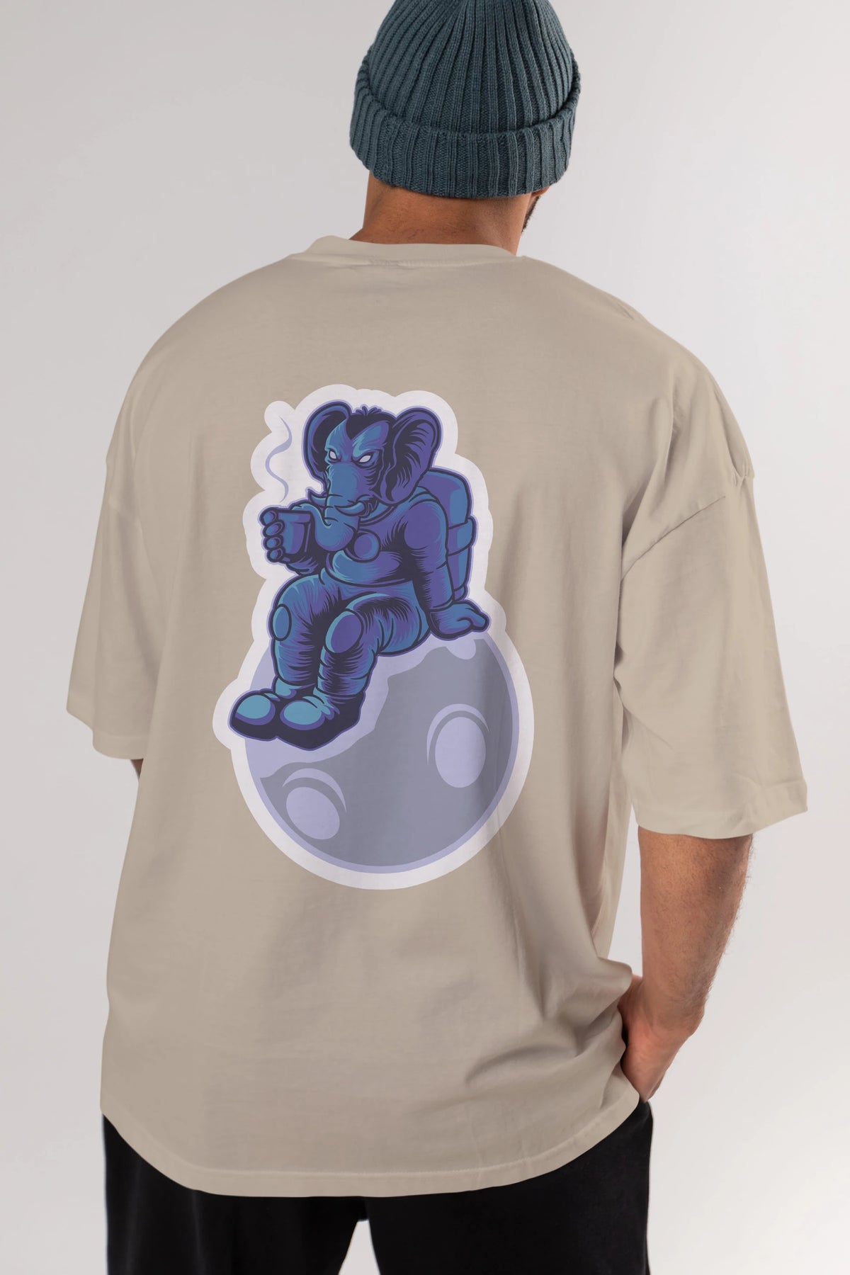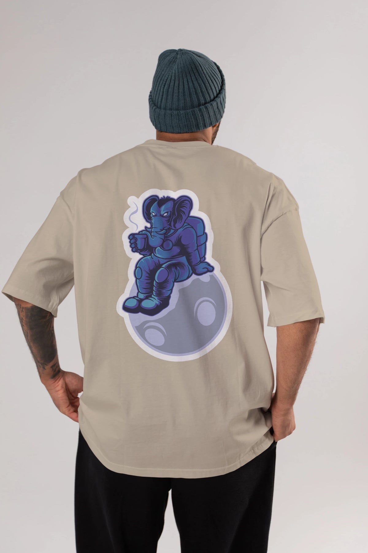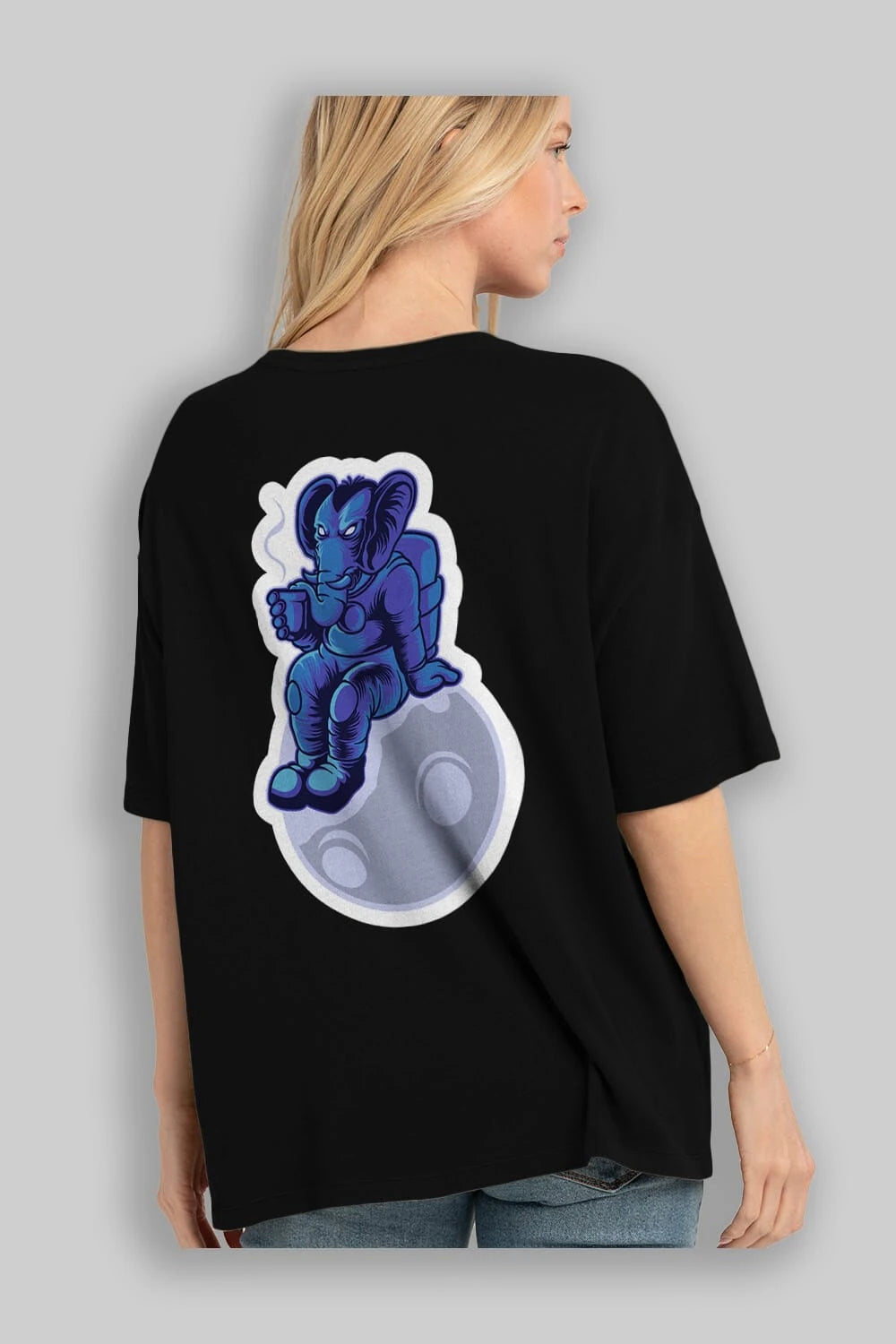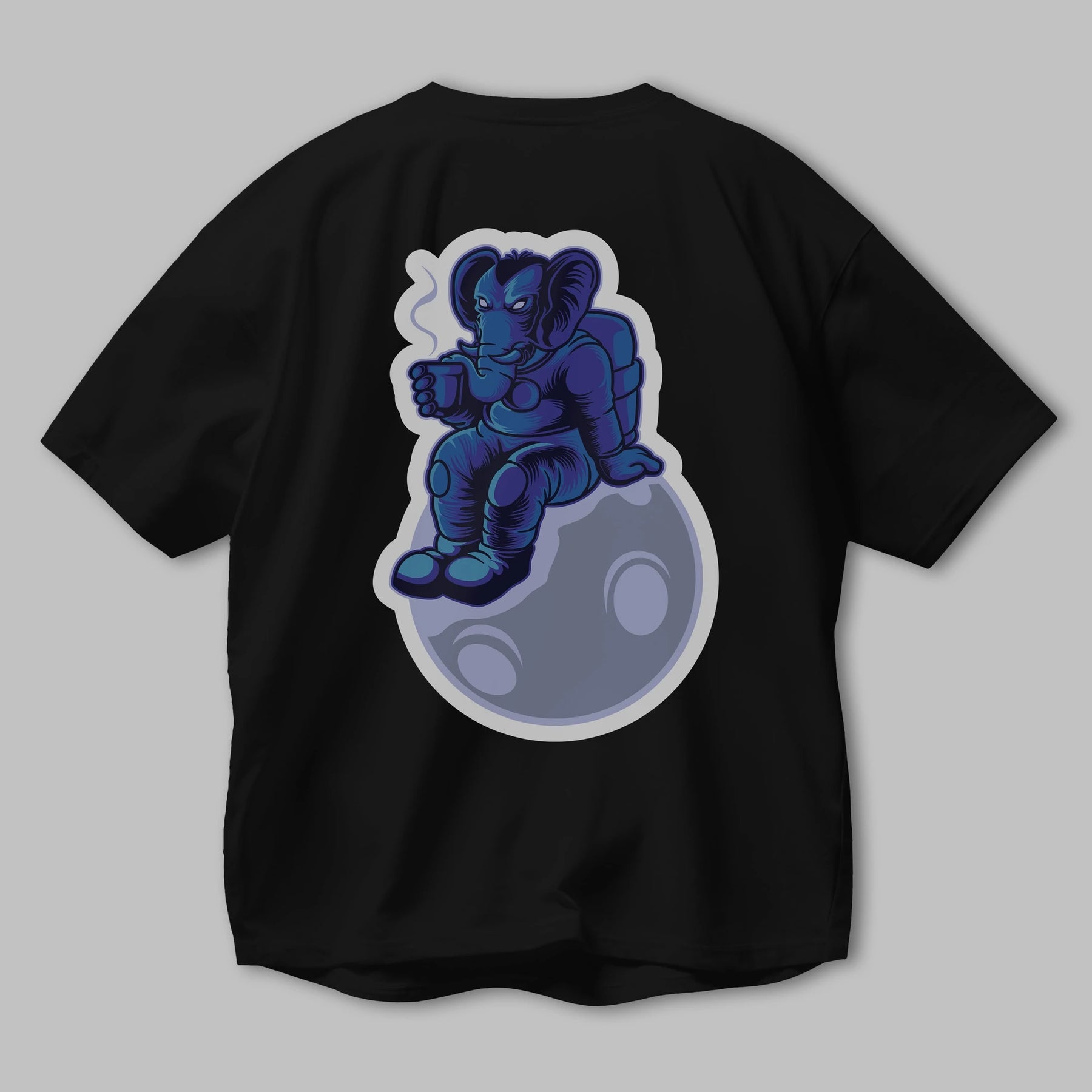 Space Elephant Drink Coffee Sticker Arka Baskılı Oversize t-shirt Erkek Kadın Unisex