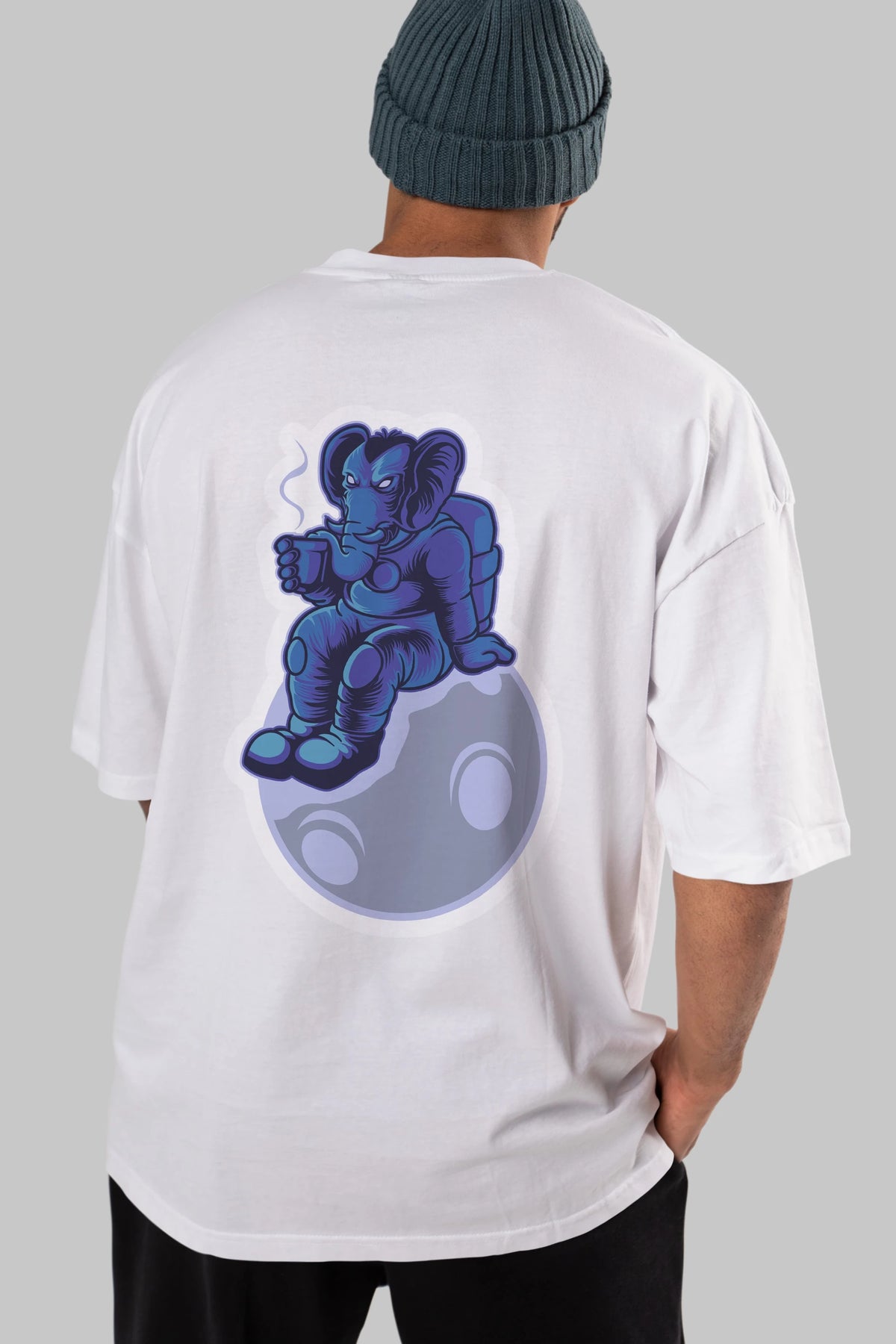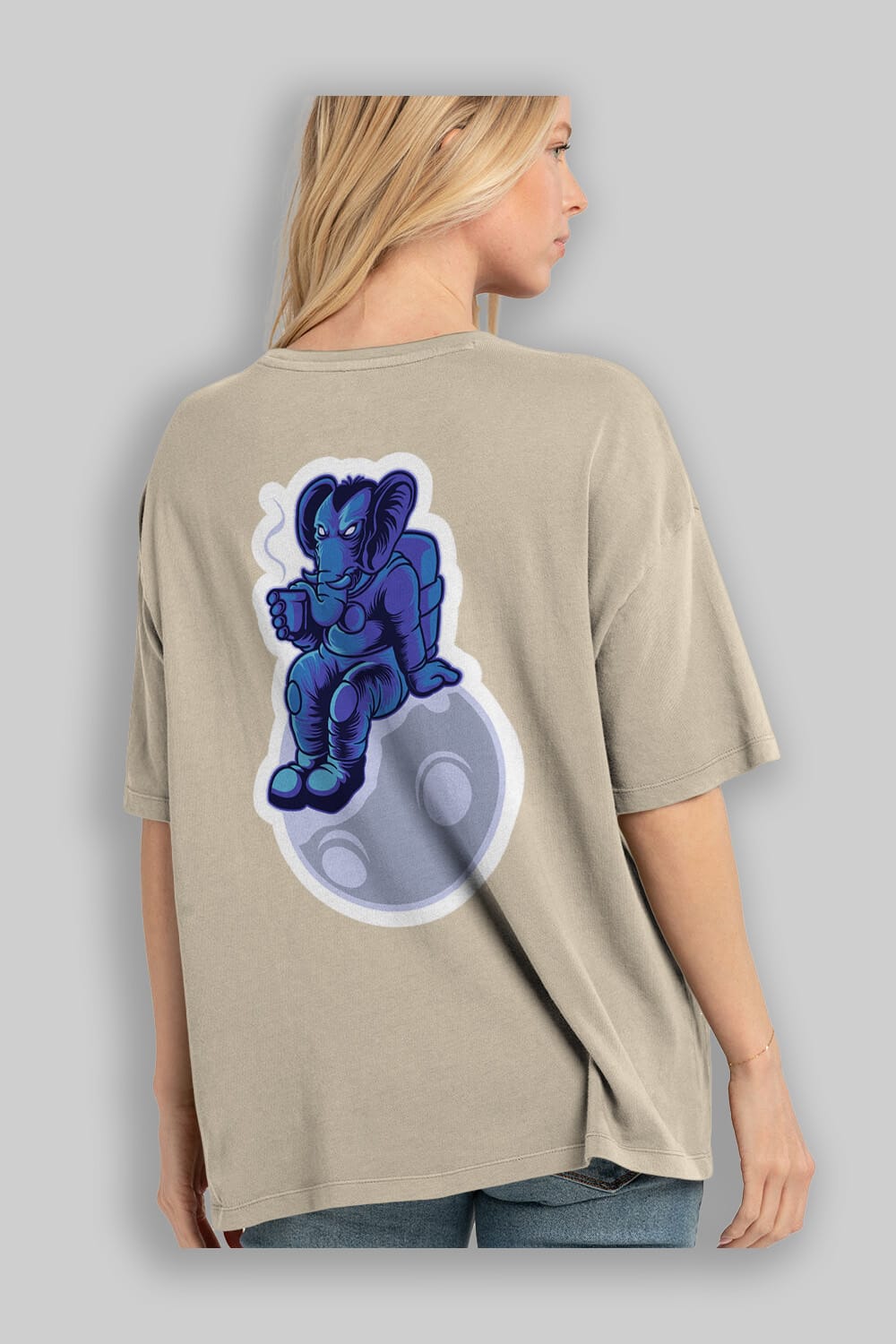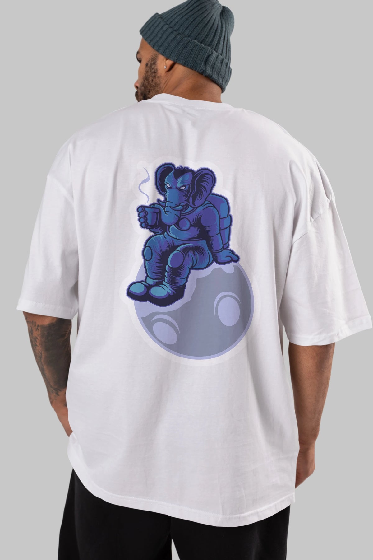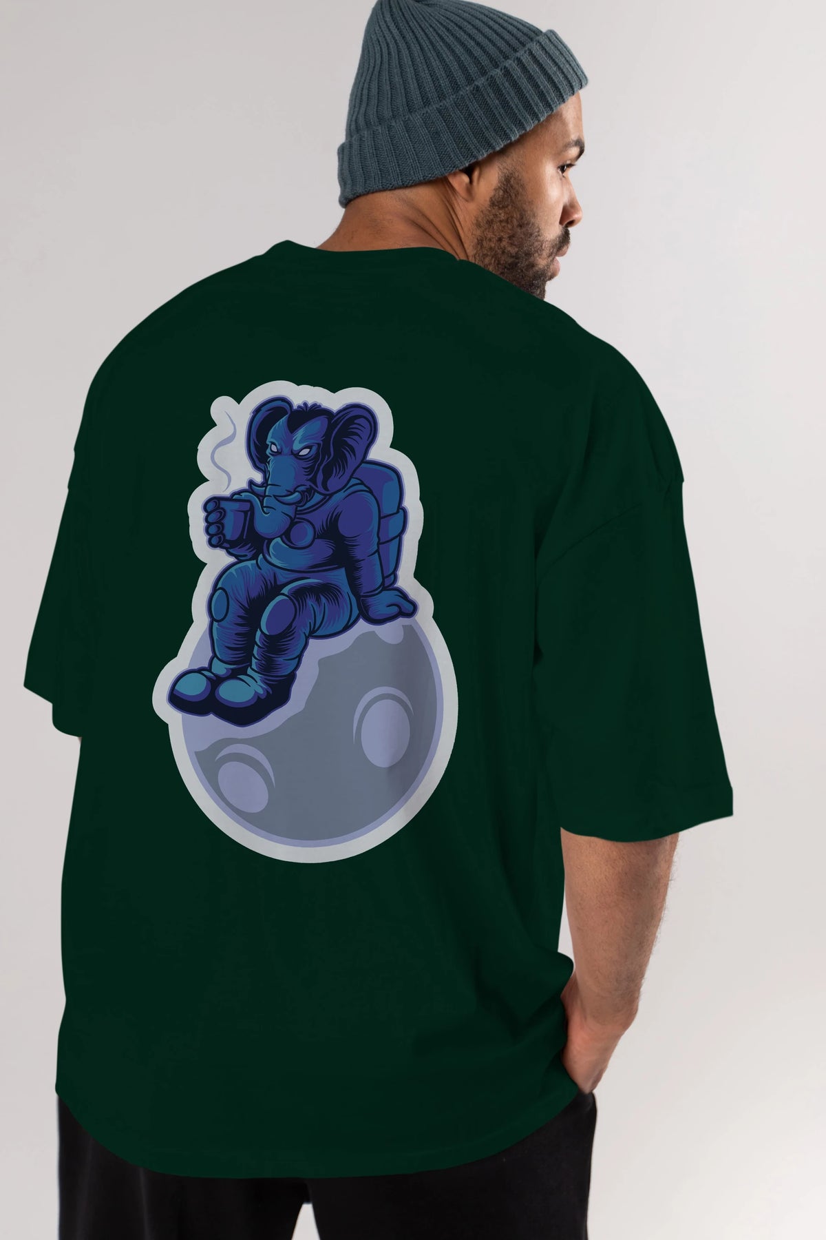 Space Elephant Drink Coffee Sticker Arka Baskılı Oversize t-shirt Erkek Kadın Unisex