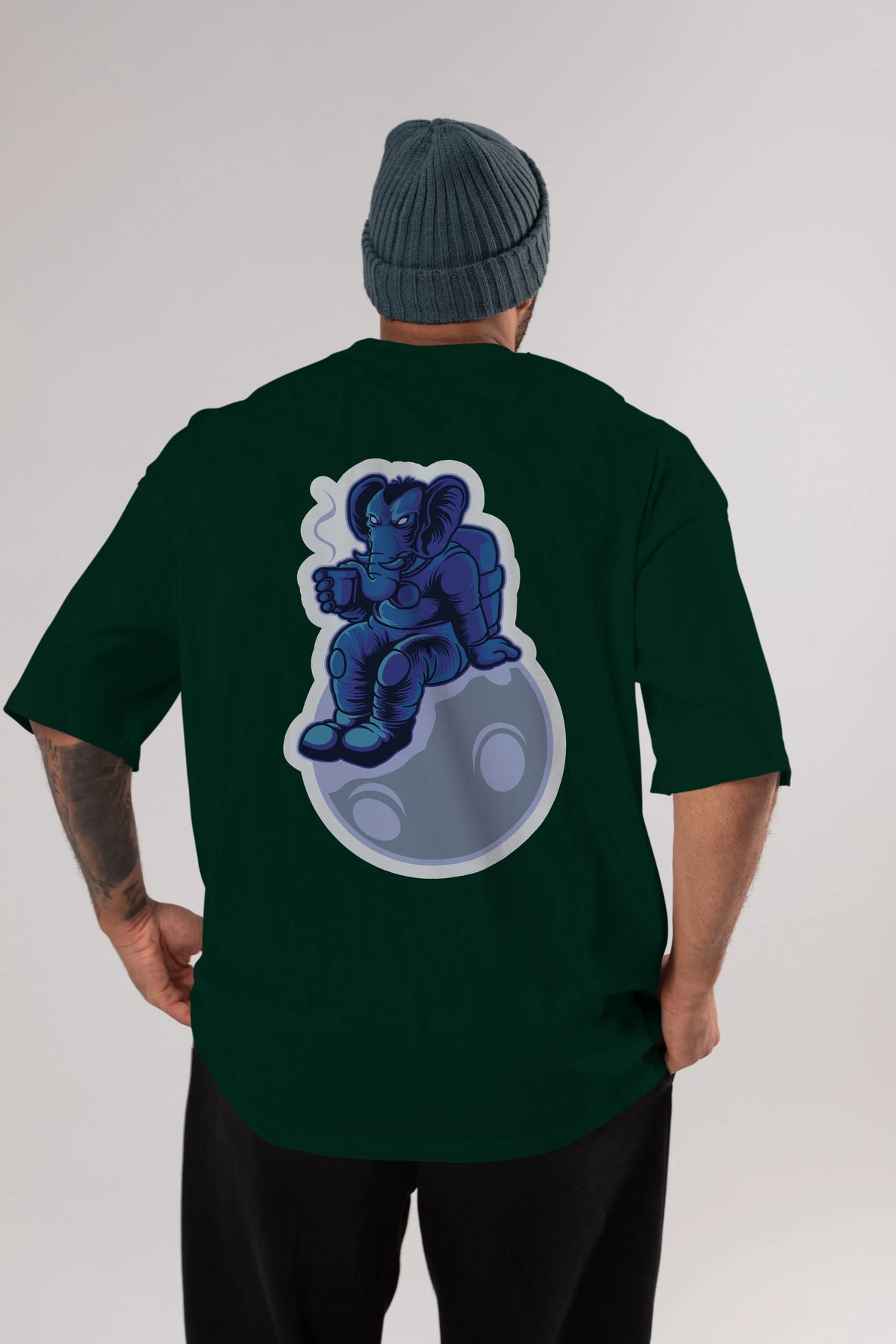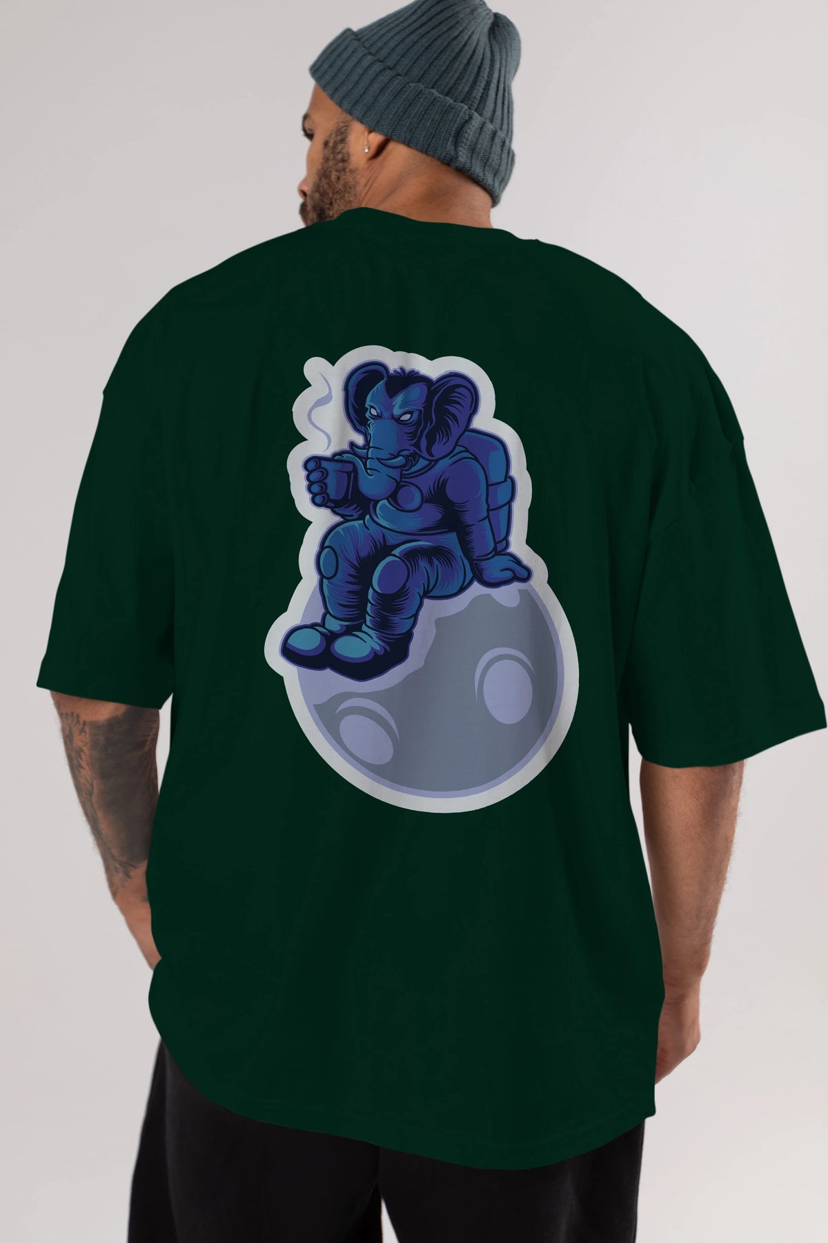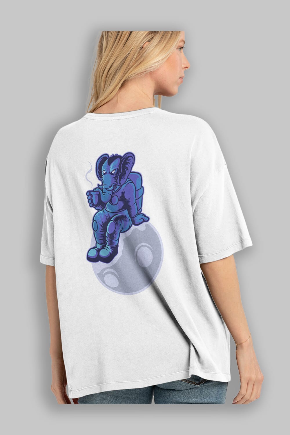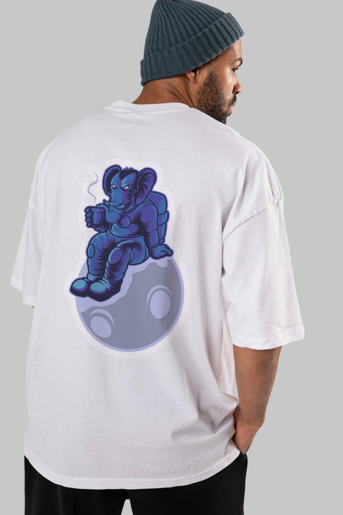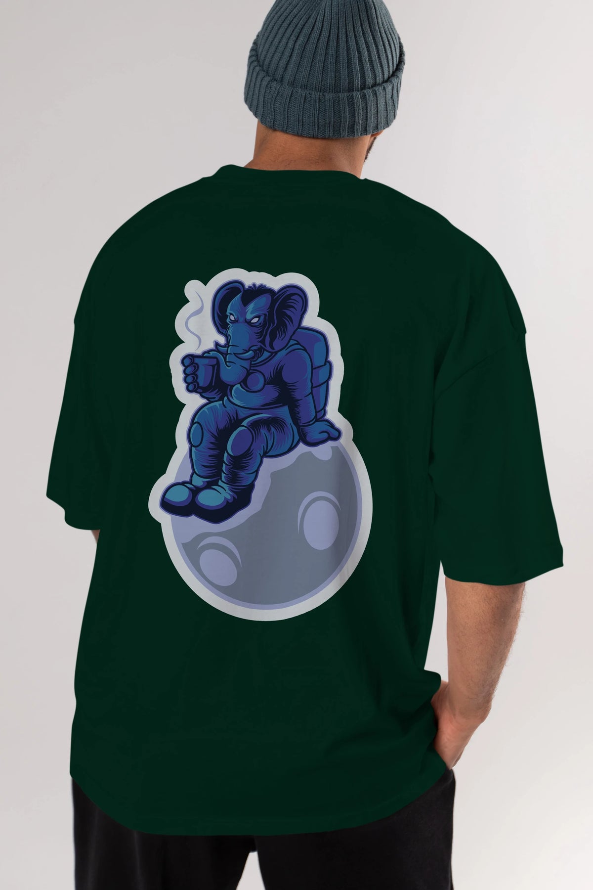 Space Elephant Drink Coffee Sticker Arka Baskılı Oversize t-shirt Erkek Kadın Unisex