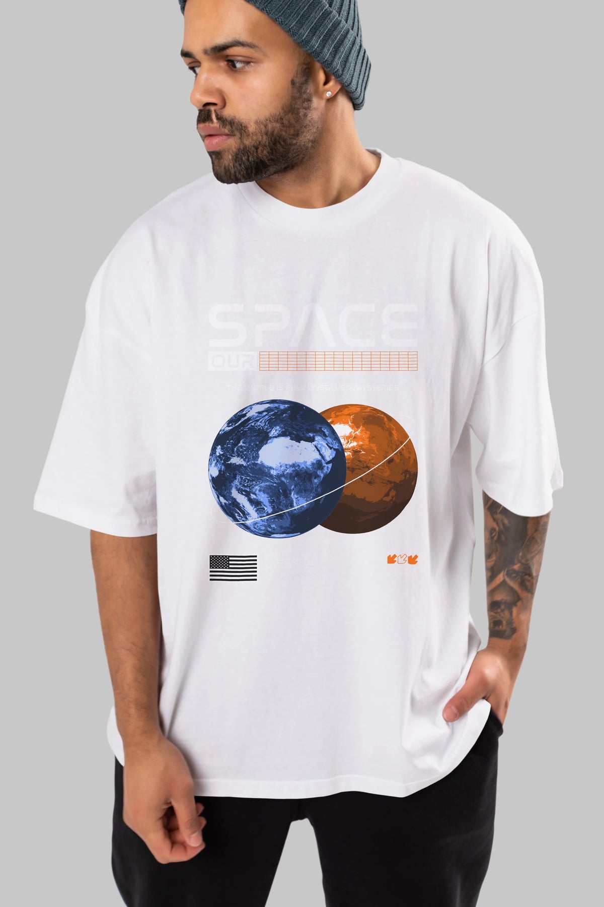 Space Our Ön Baskılı Oversize t-shirt Erkek Kadın Unisex