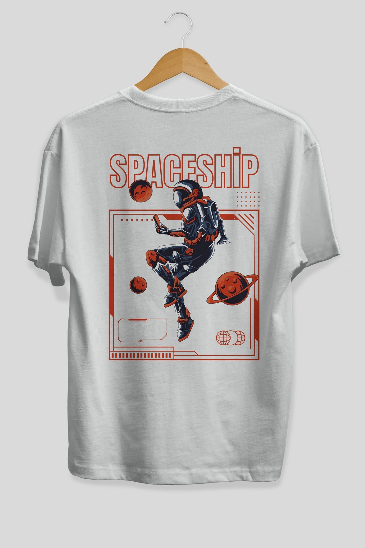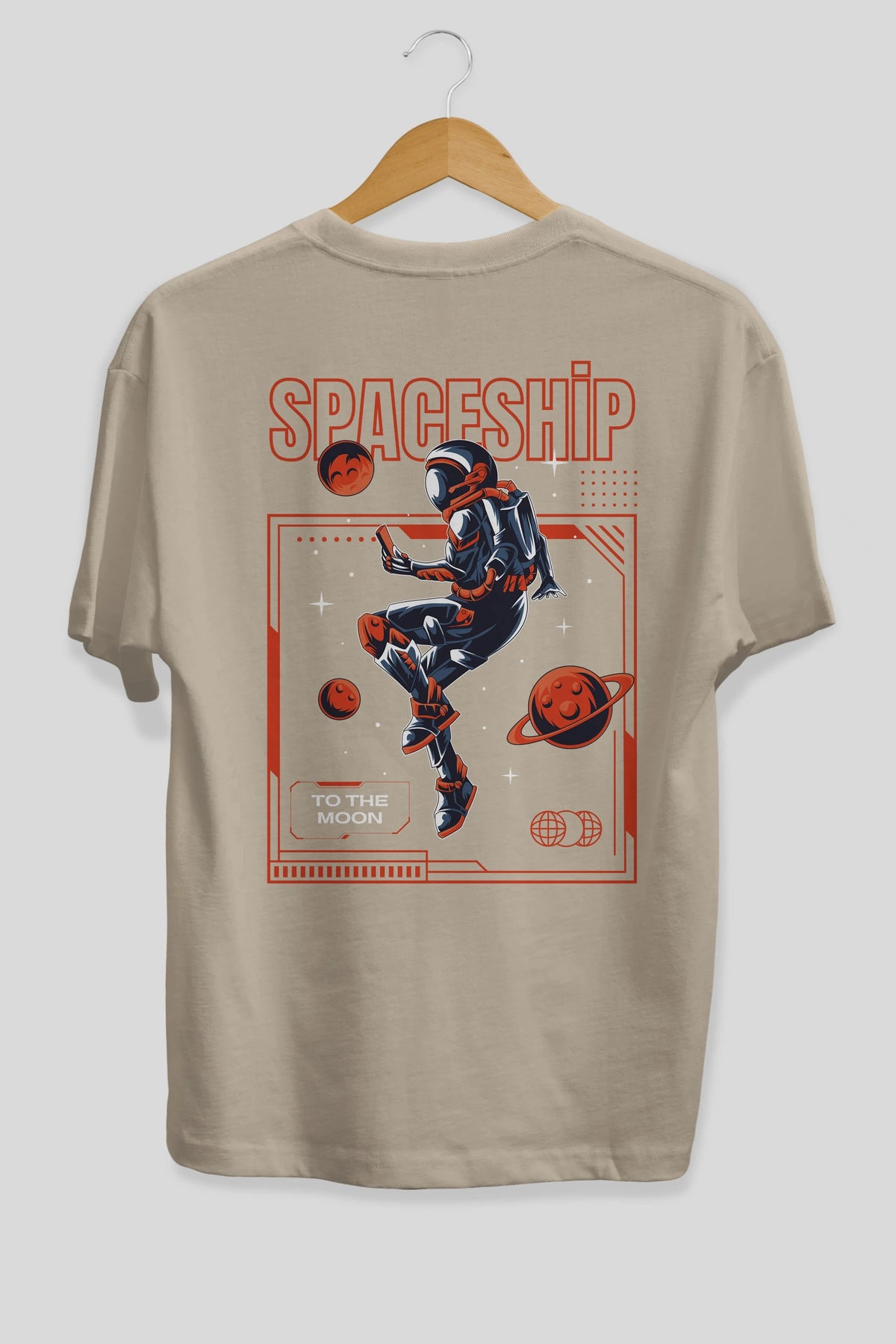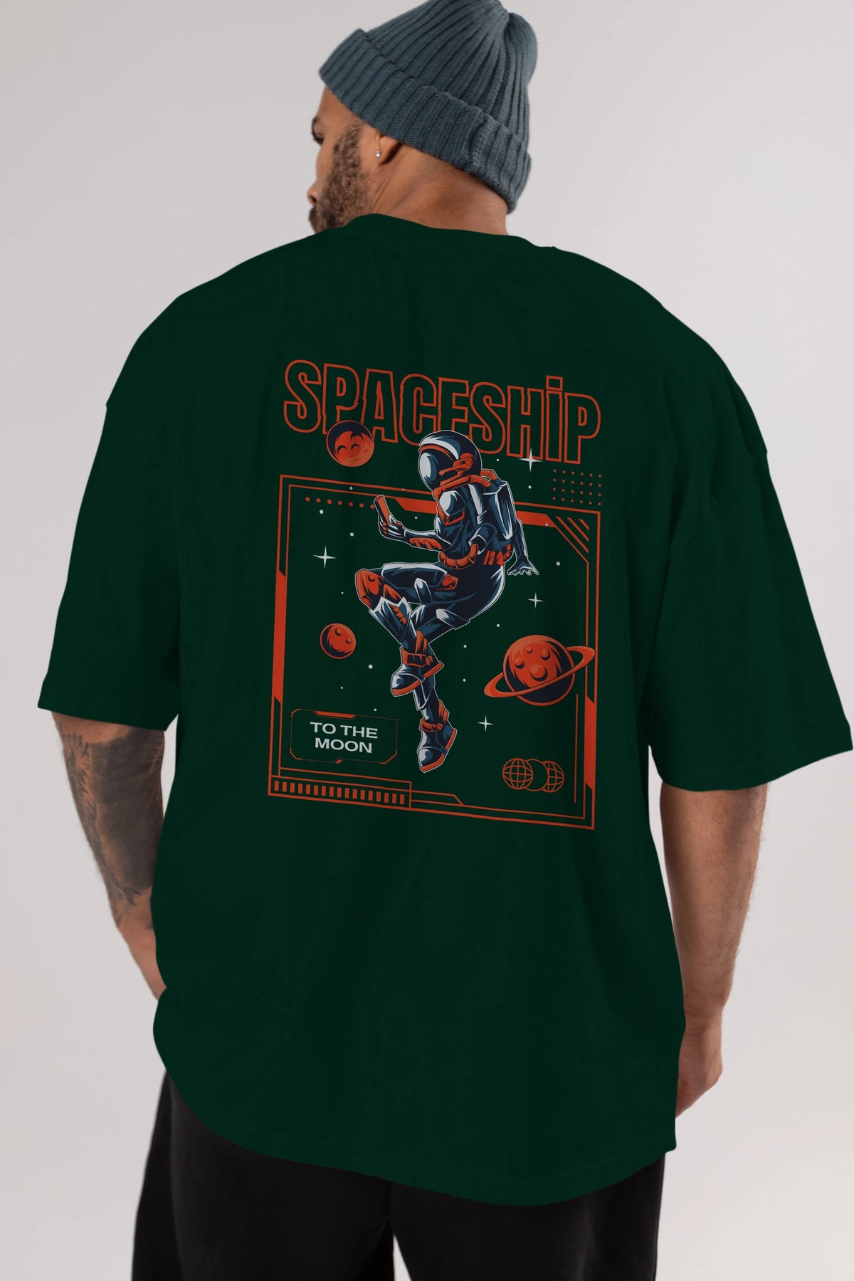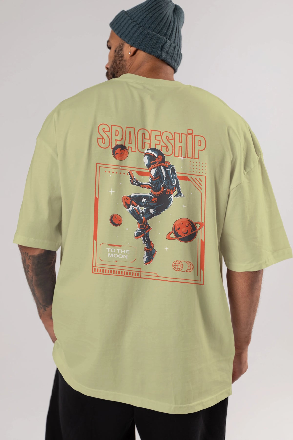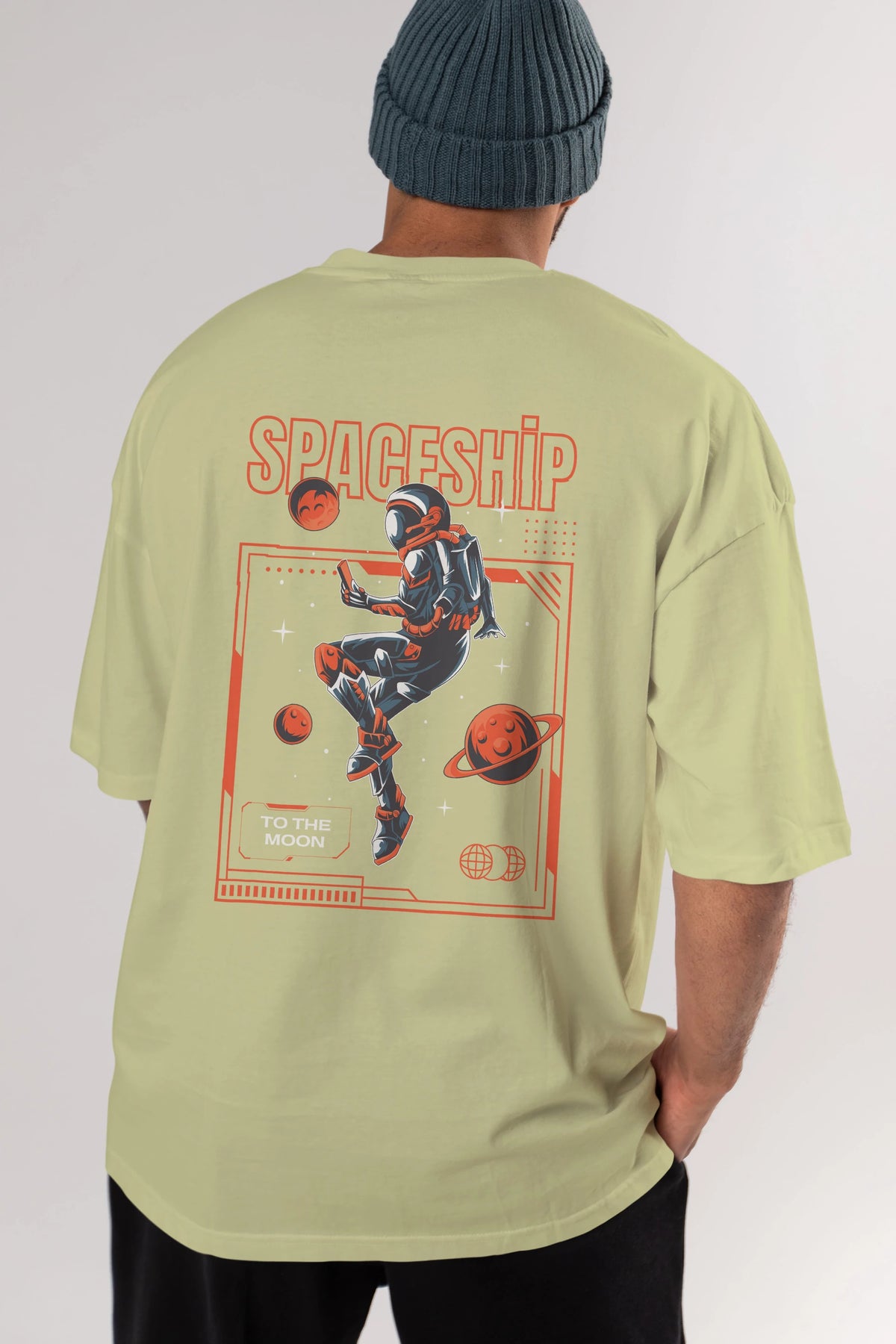 Spaceship Arka Baskılı Oversize t-shirt Erkek Kadın Unisex