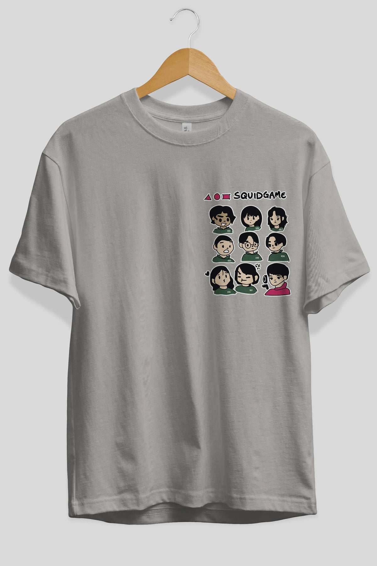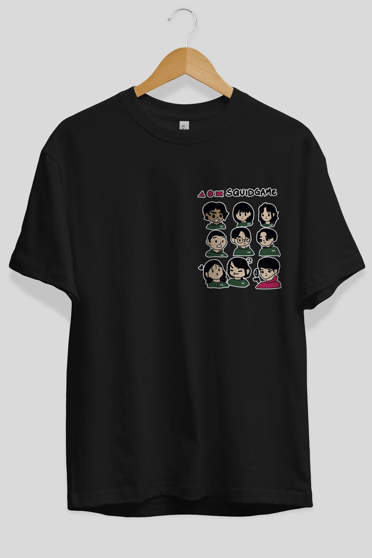 Squid Game (3) Ön Sol Baskılı Oversize t-shirt Erkek Kadın Unisex %100 Pamuk Bisiklet Yaka tişort