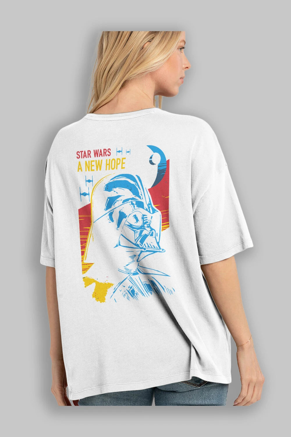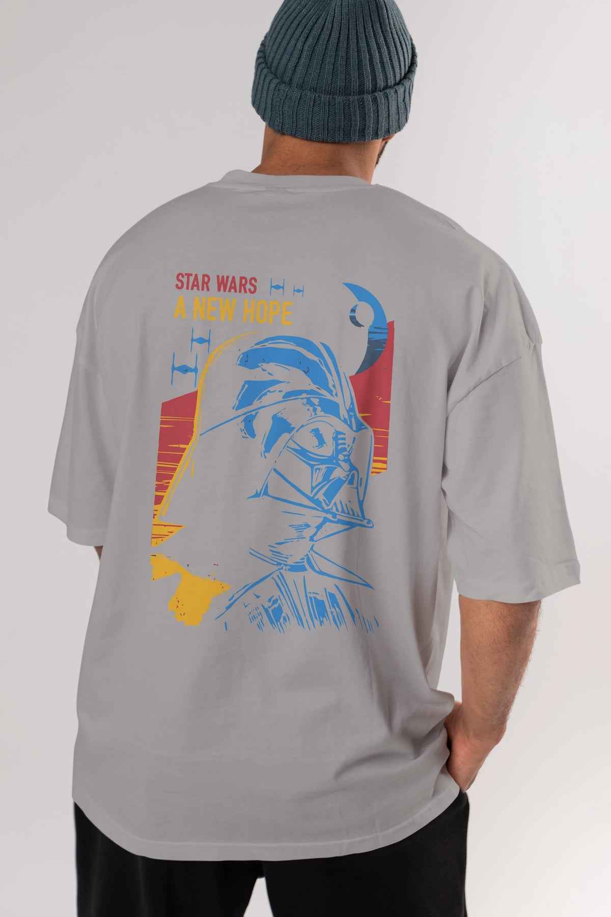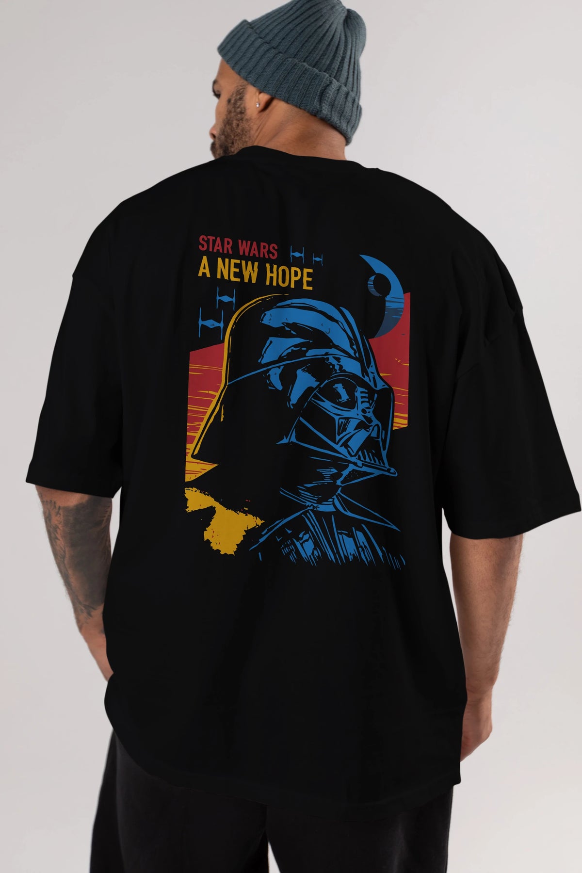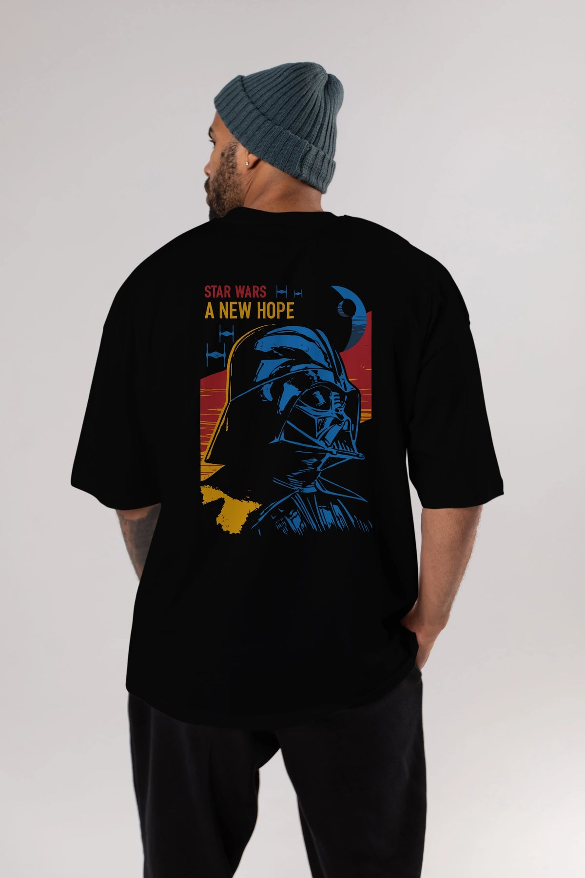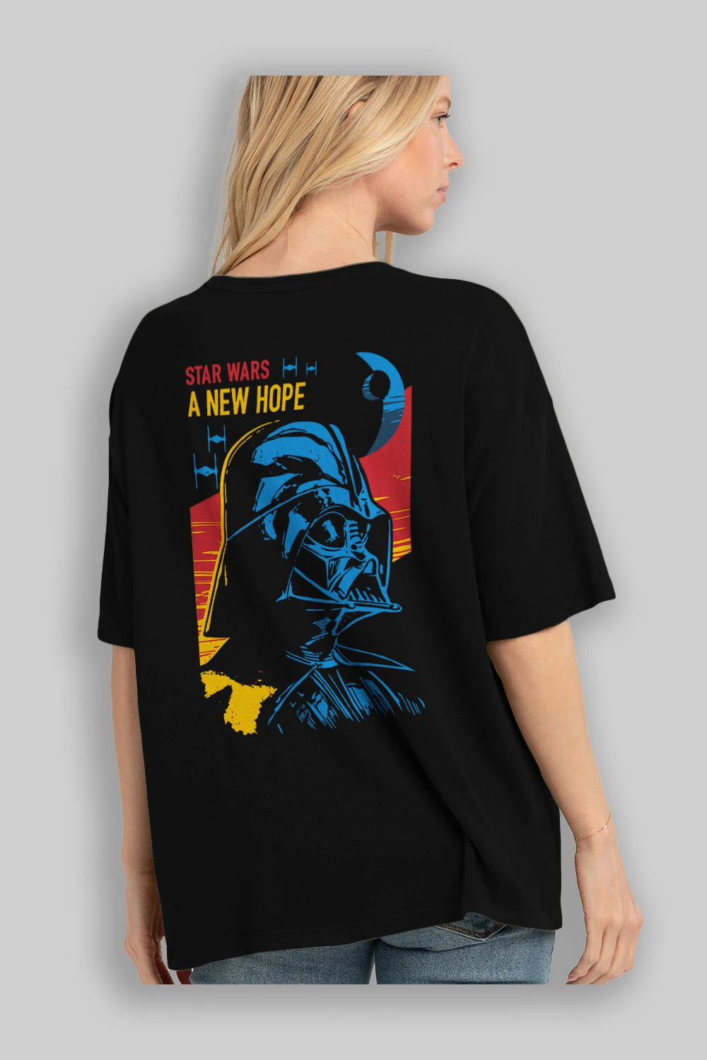 Star Wars Arka Baskılı Oversize t-shirt Erkek Kadın Unisex %100 Pamuk Bisiklet Yaka tişort