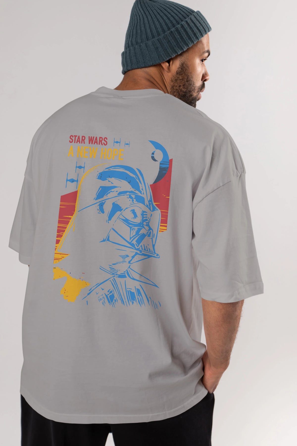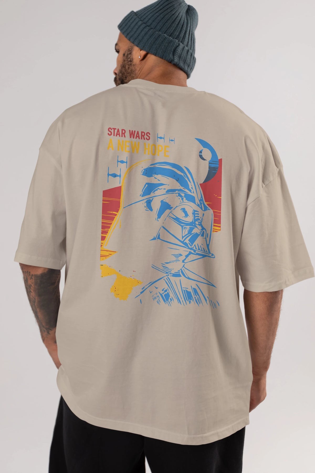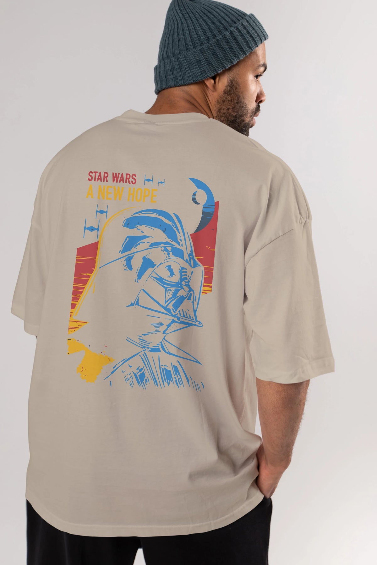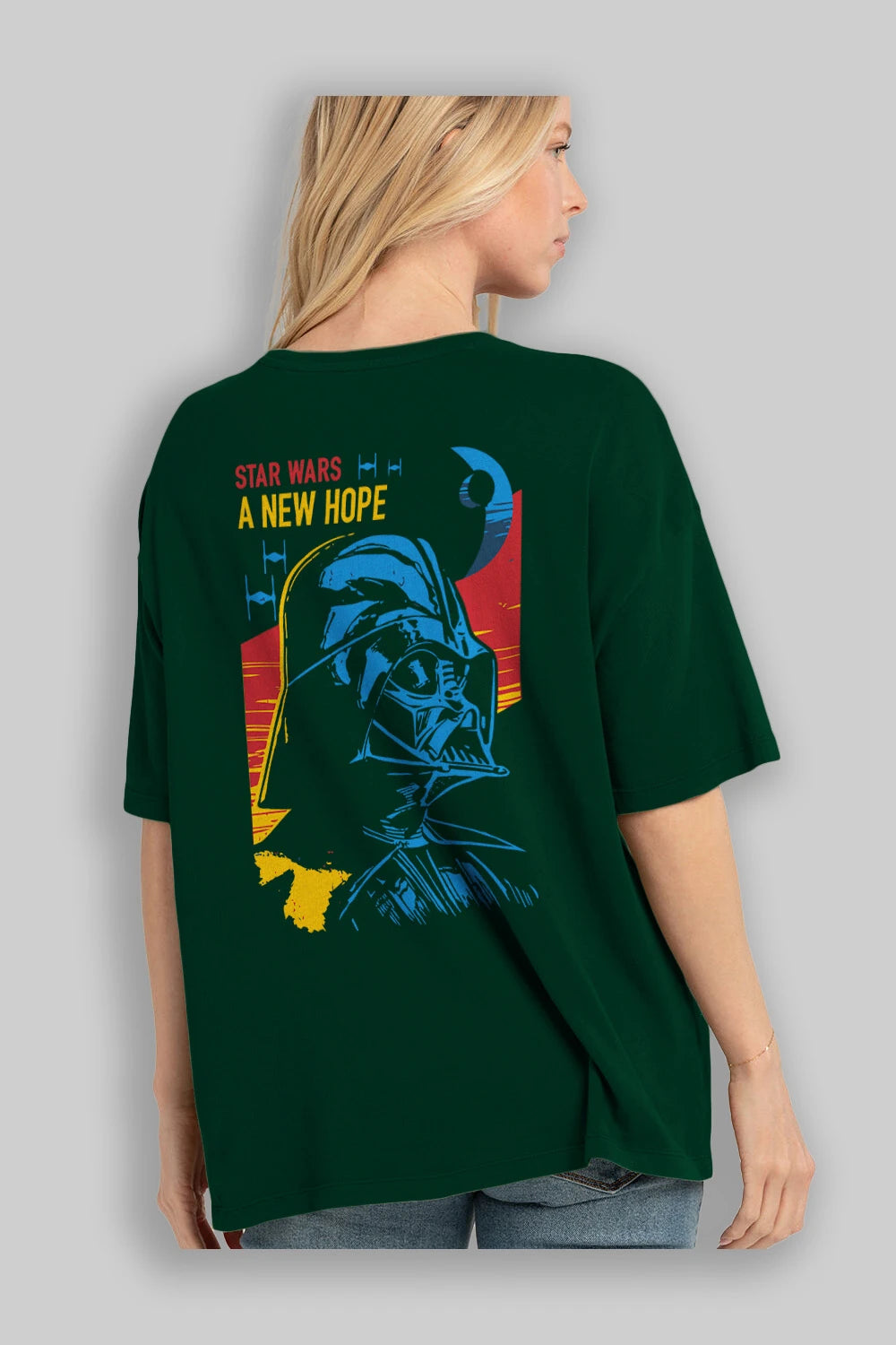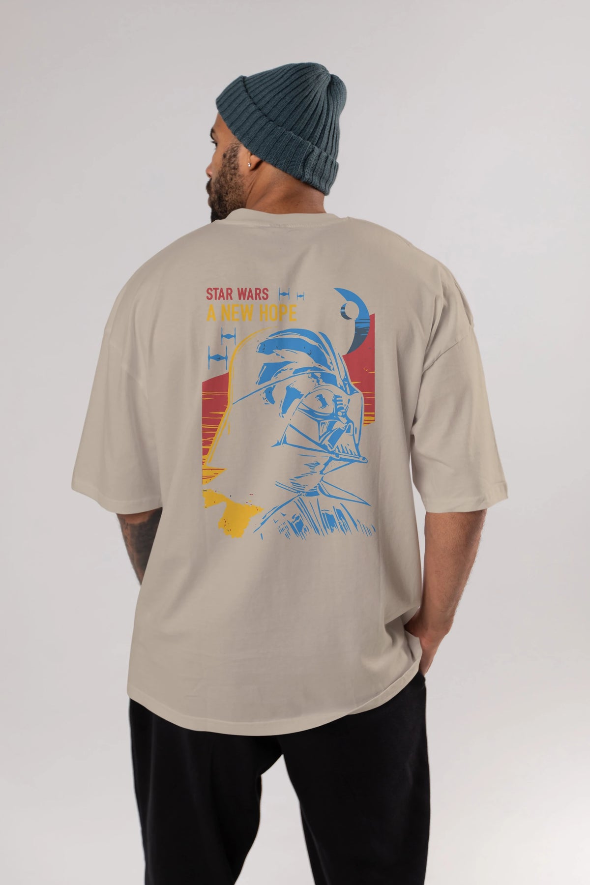 Star Wars Arka Baskılı Oversize t-shirt Erkek Kadın Unisex %100 Pamuk Bisiklet Yaka tişort