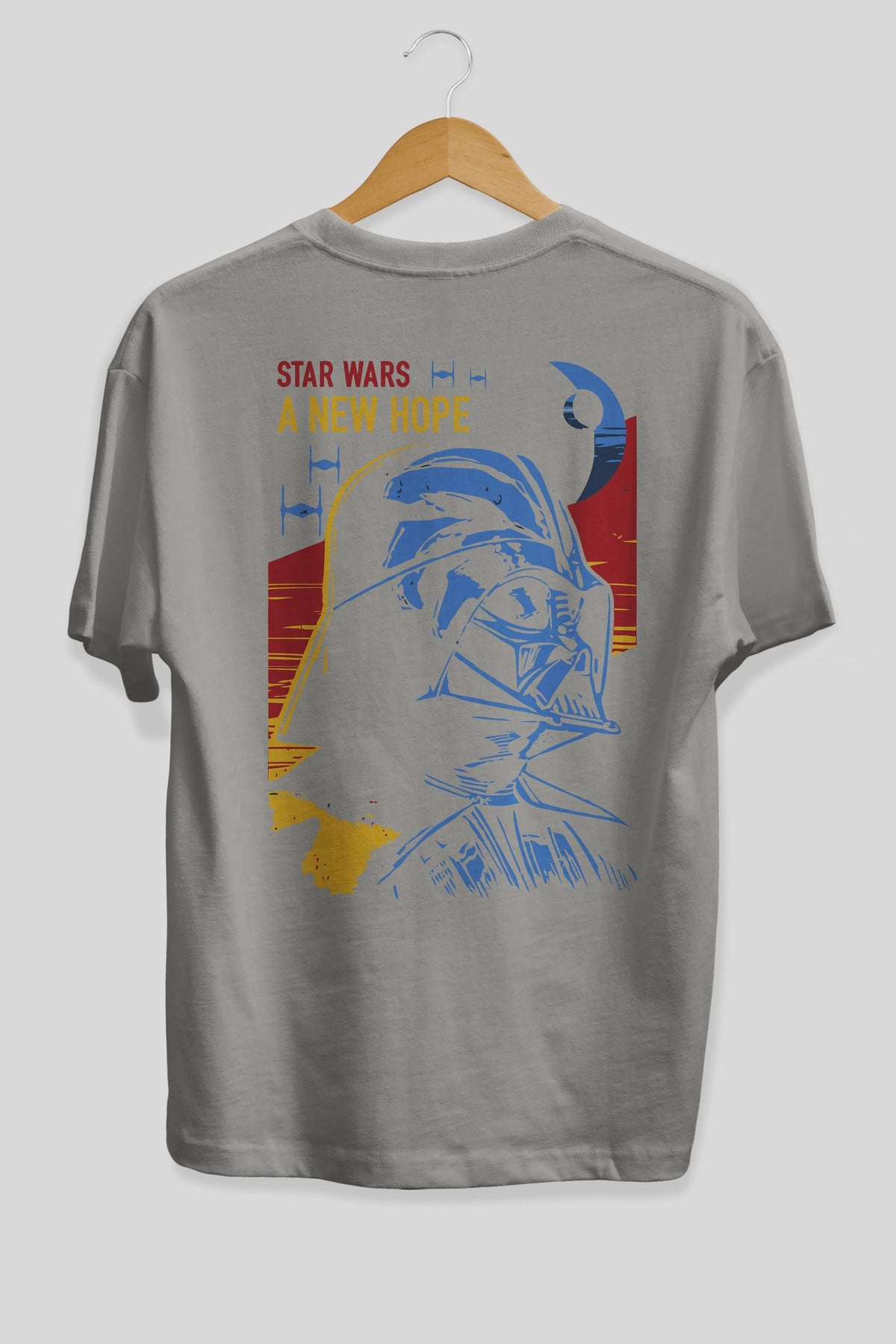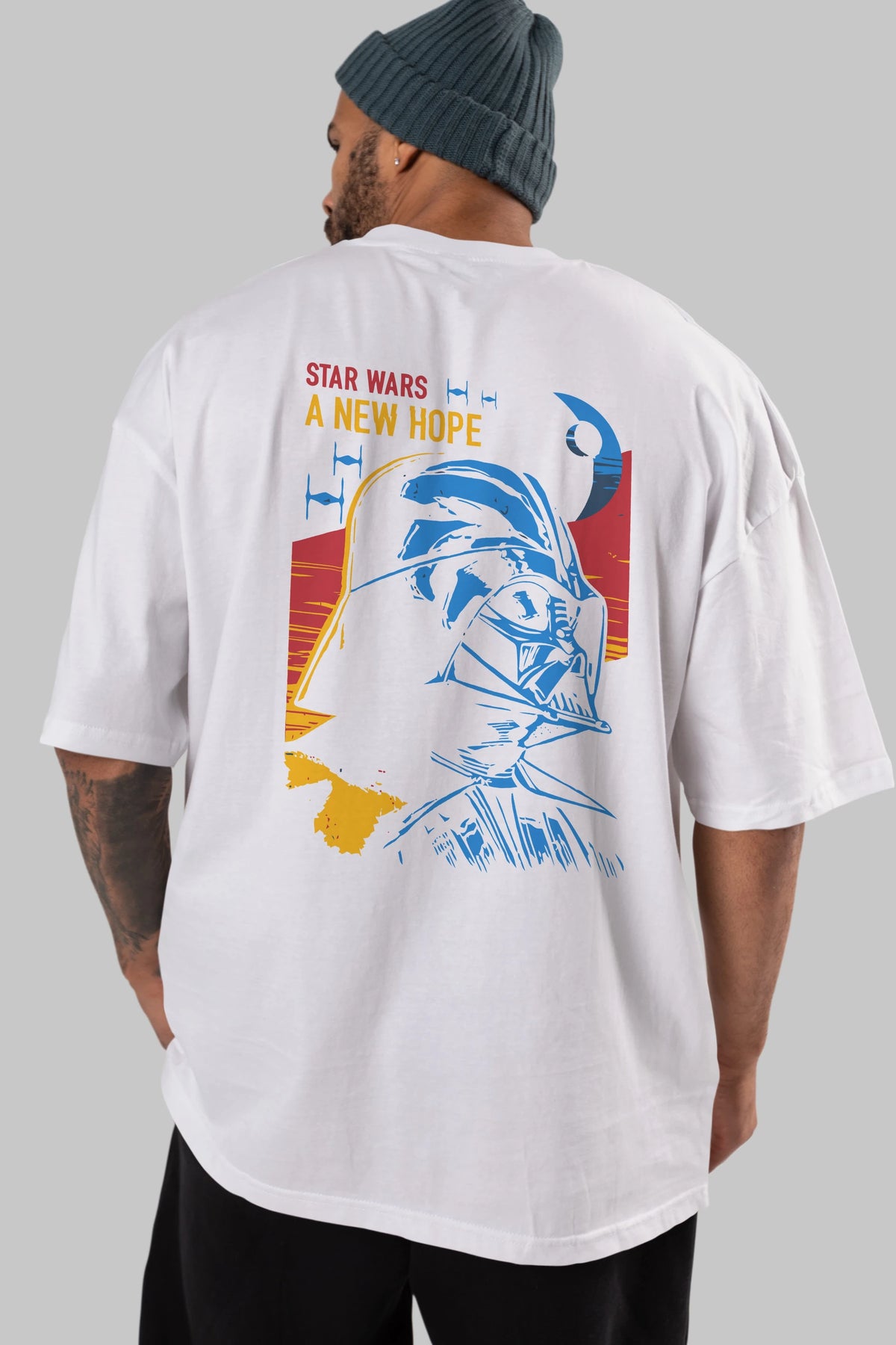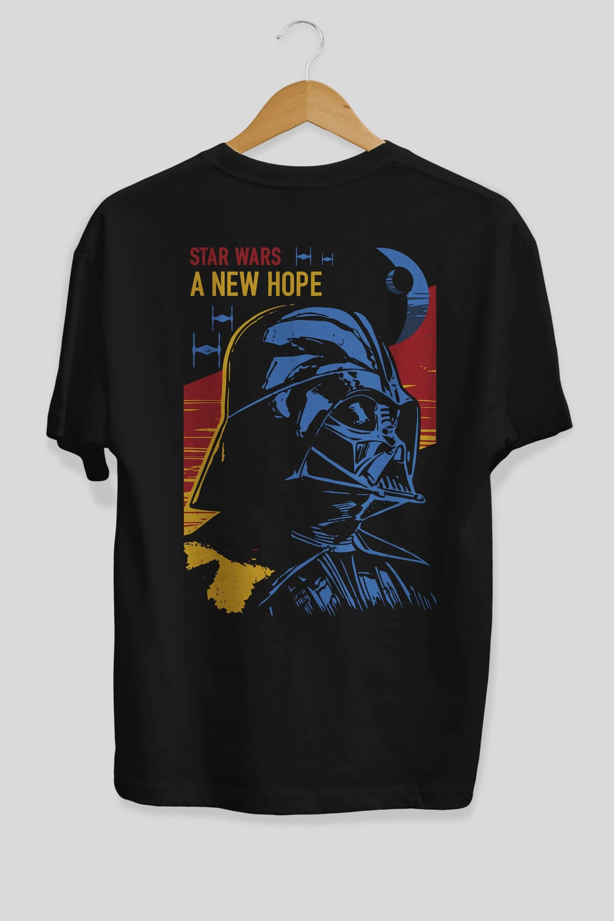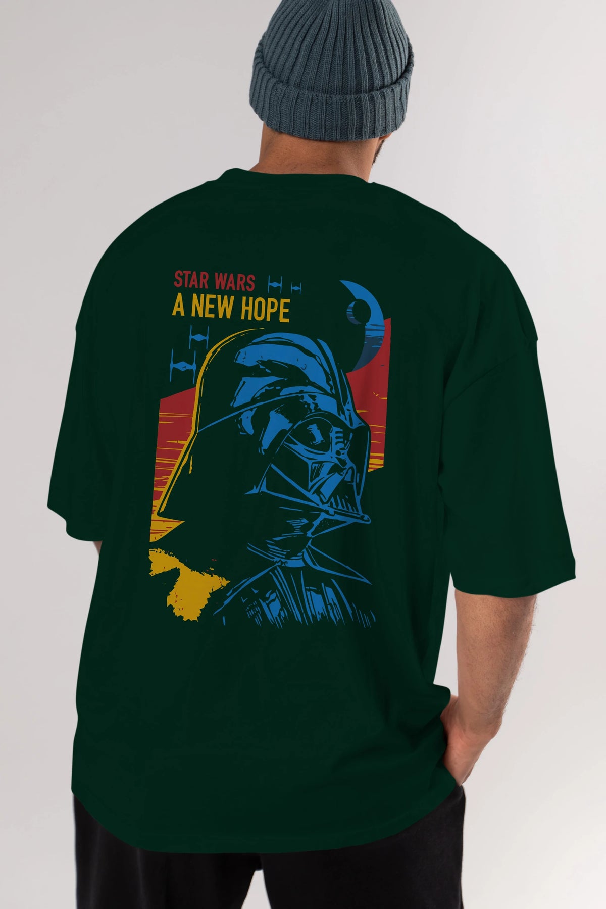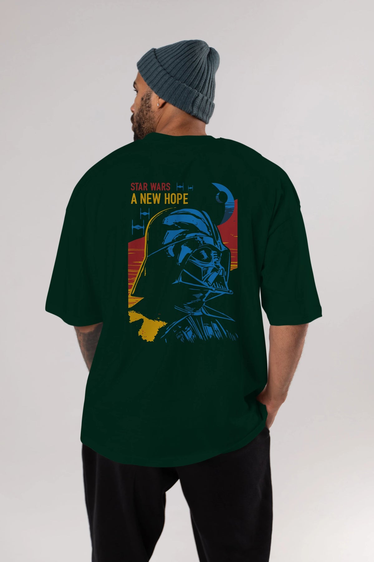 Star Wars Arka Baskılı Oversize t-shirt Erkek Kadın Unisex %100 Pamuk Bisiklet Yaka tişort