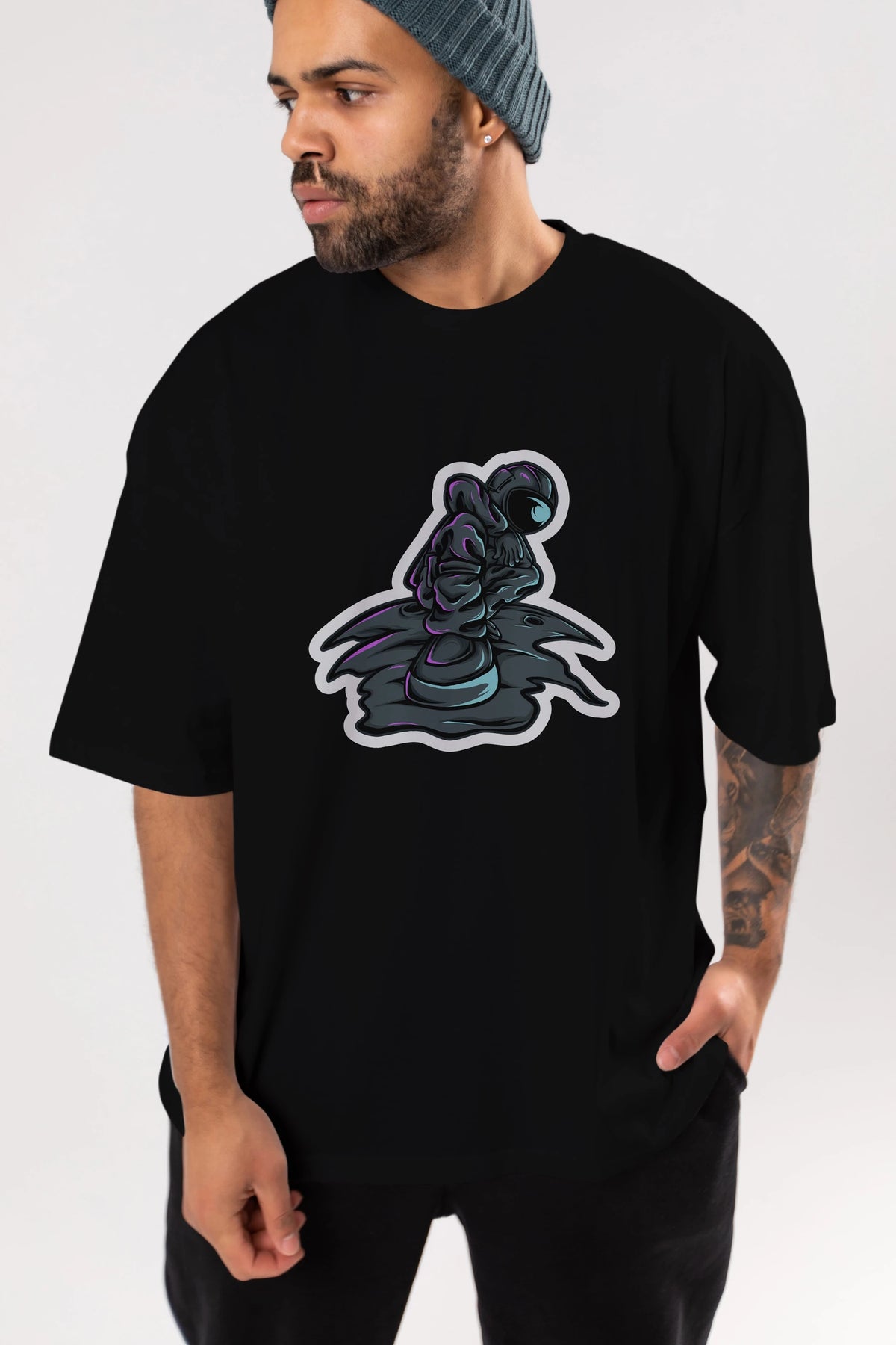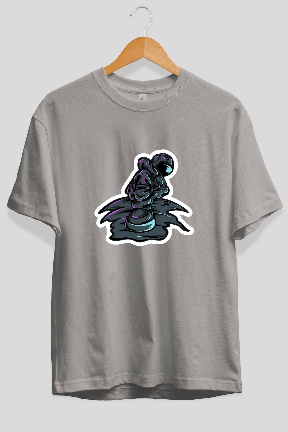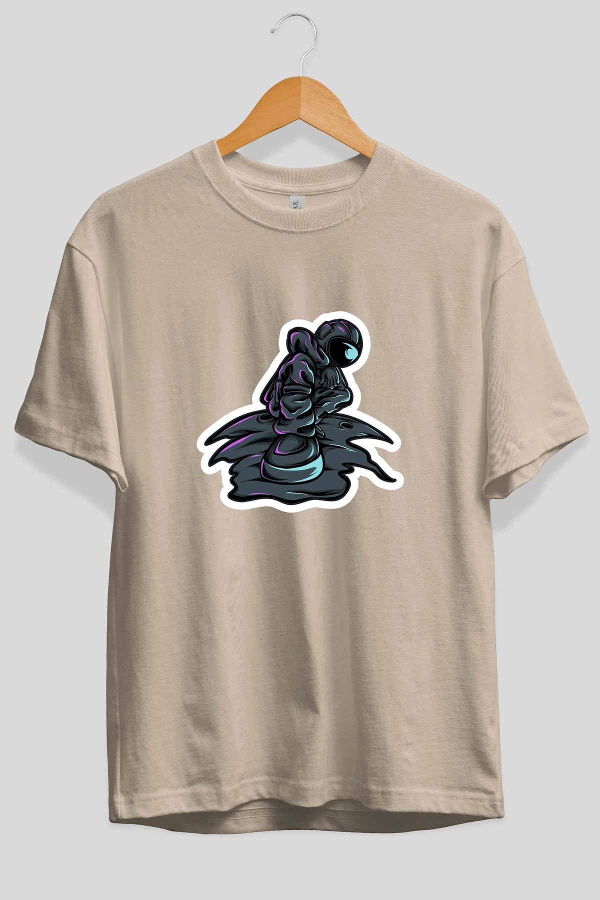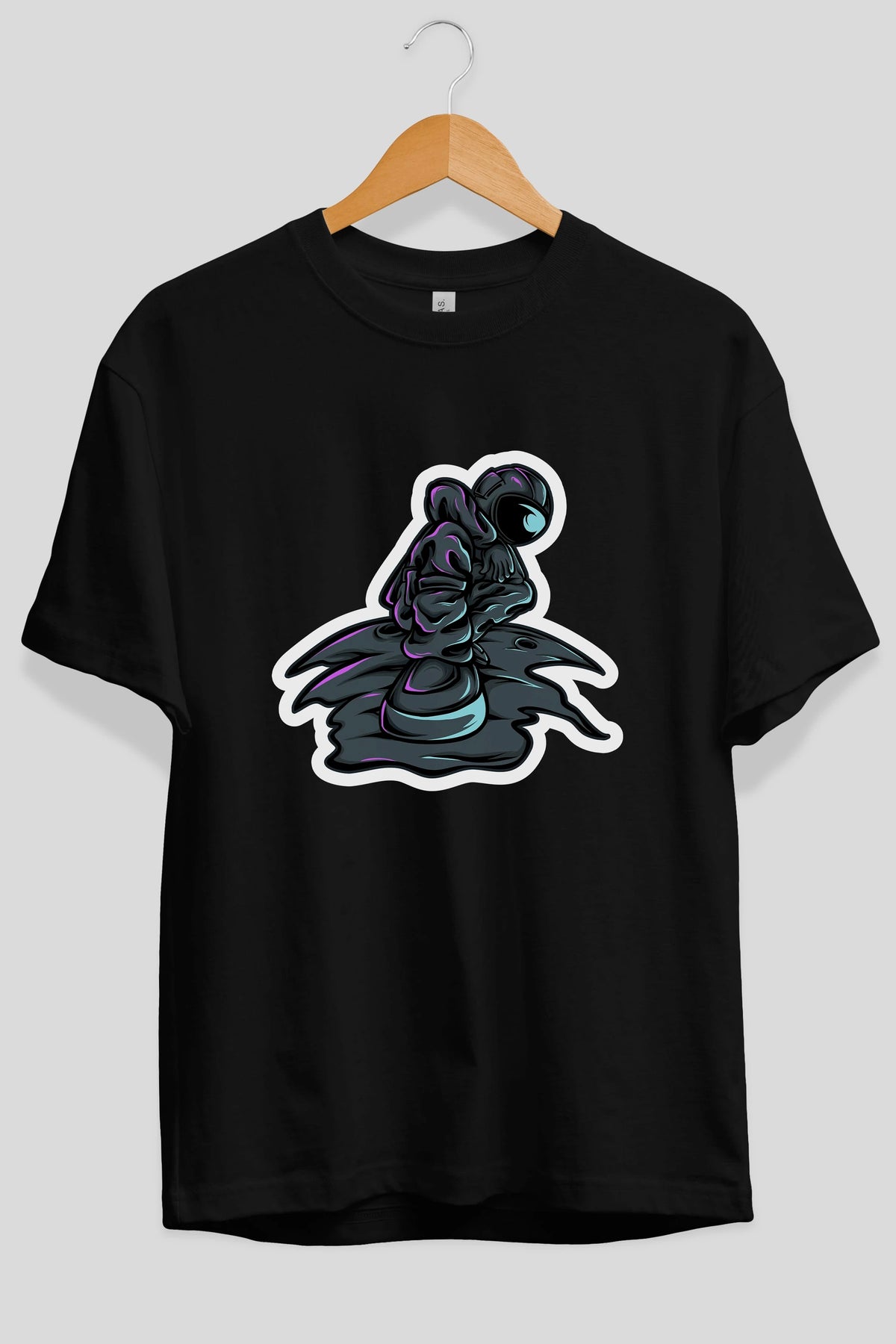 Stylish Astronaut Sticker Ön Baskılı Oversize t-shirt Erkek Kadın Unisex