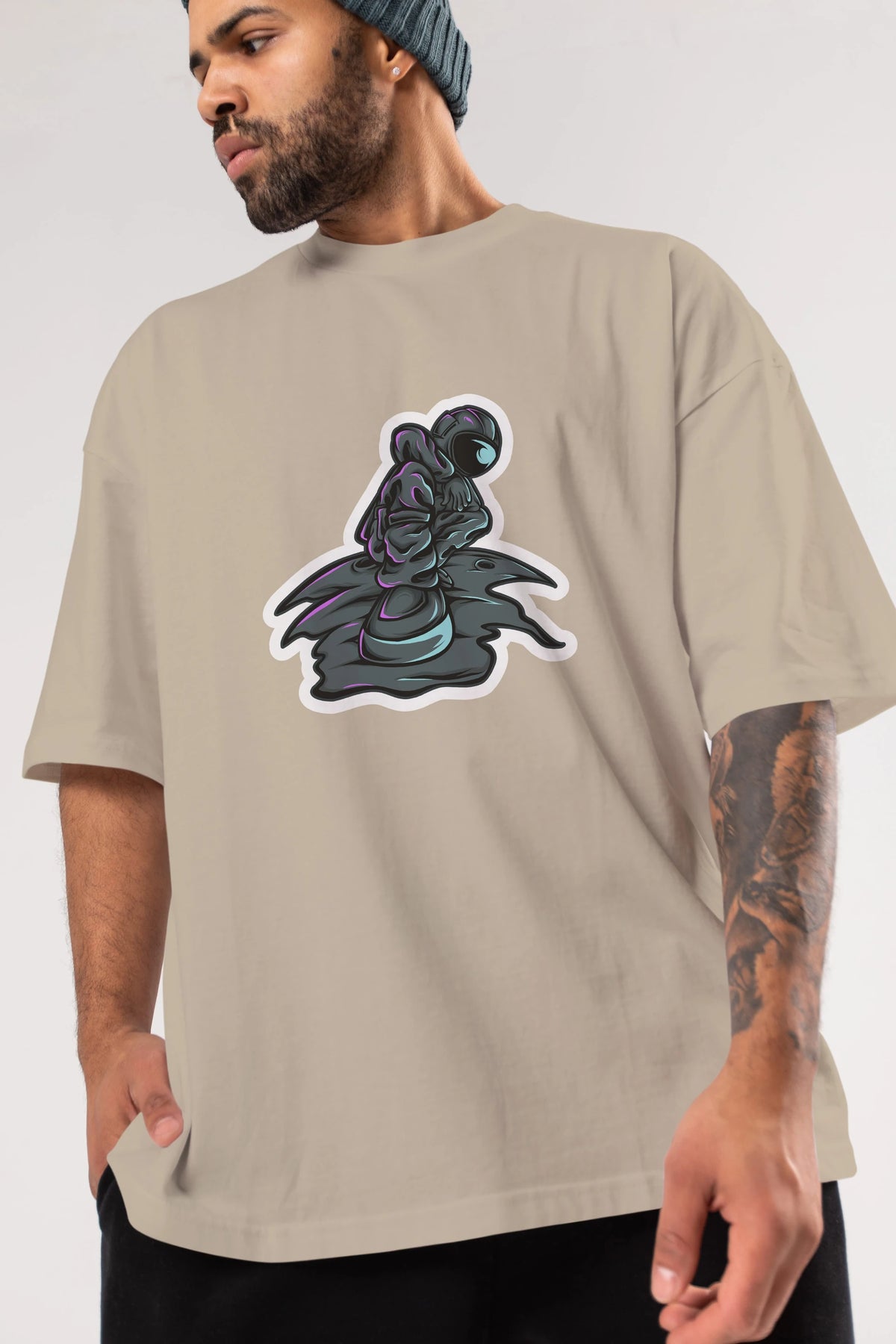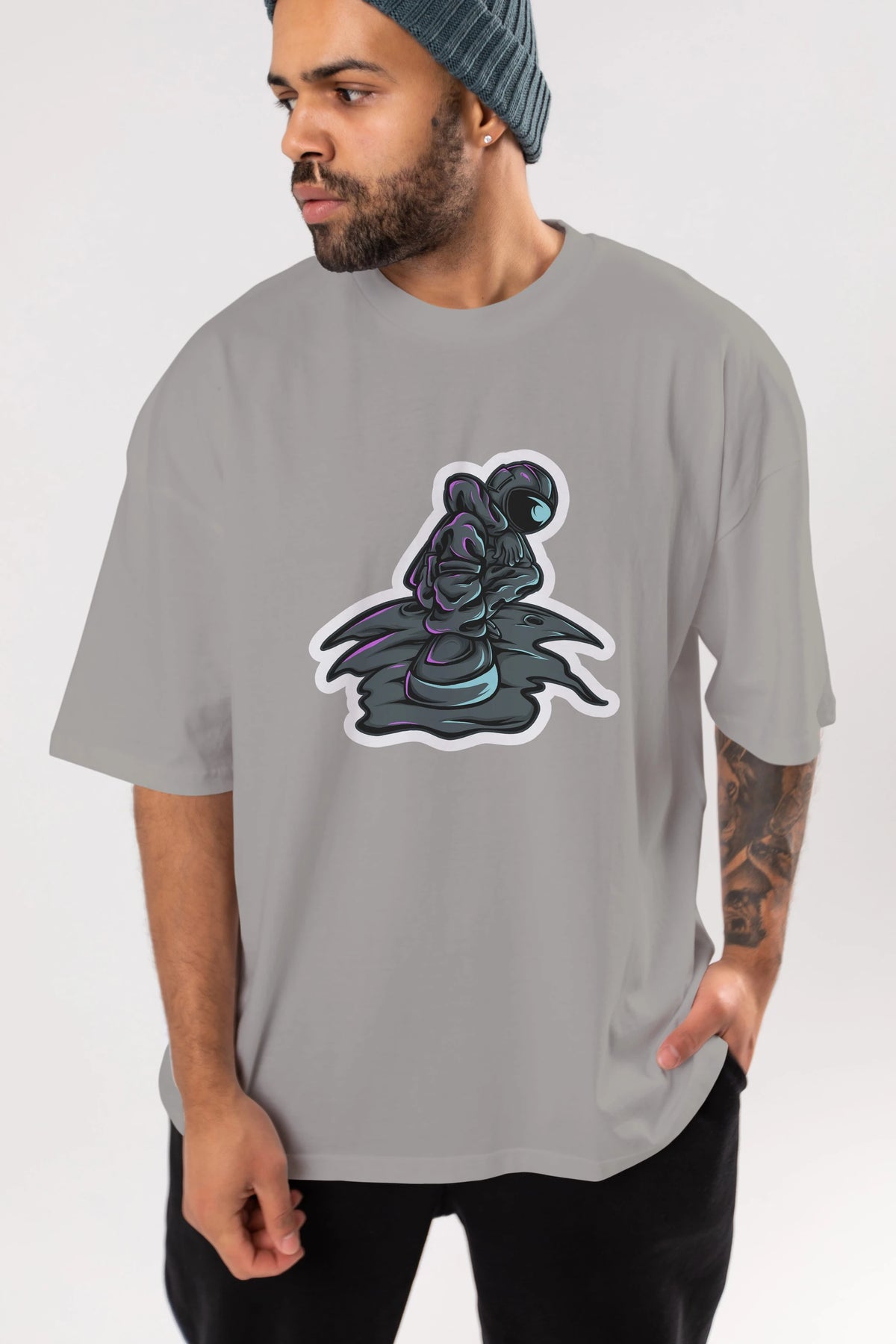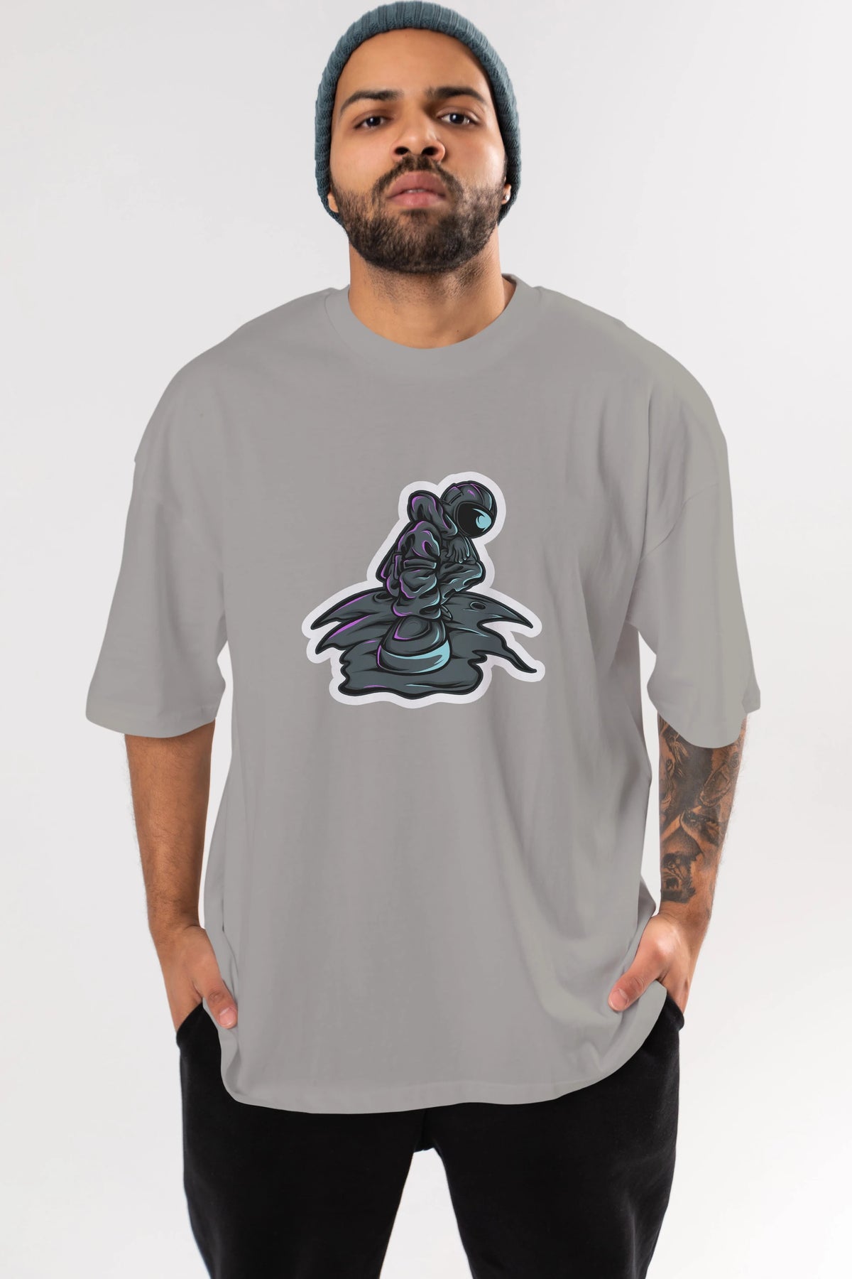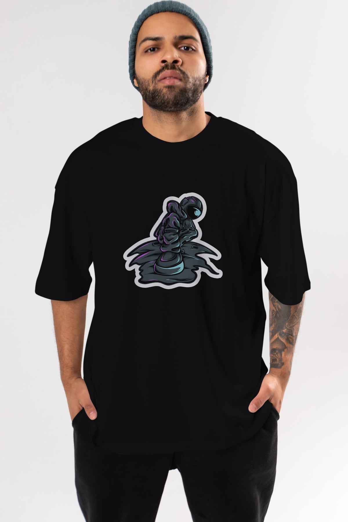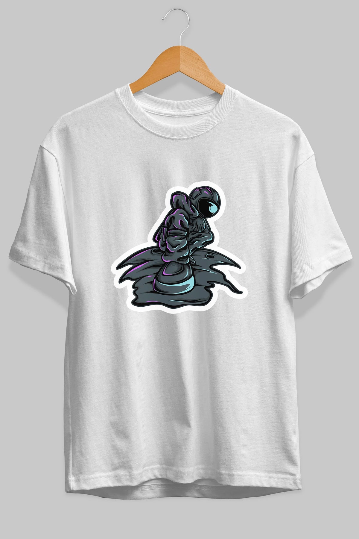 Stylish Astronaut Sticker Ön Baskılı Oversize t-shirt Erkek Kadın Unisex