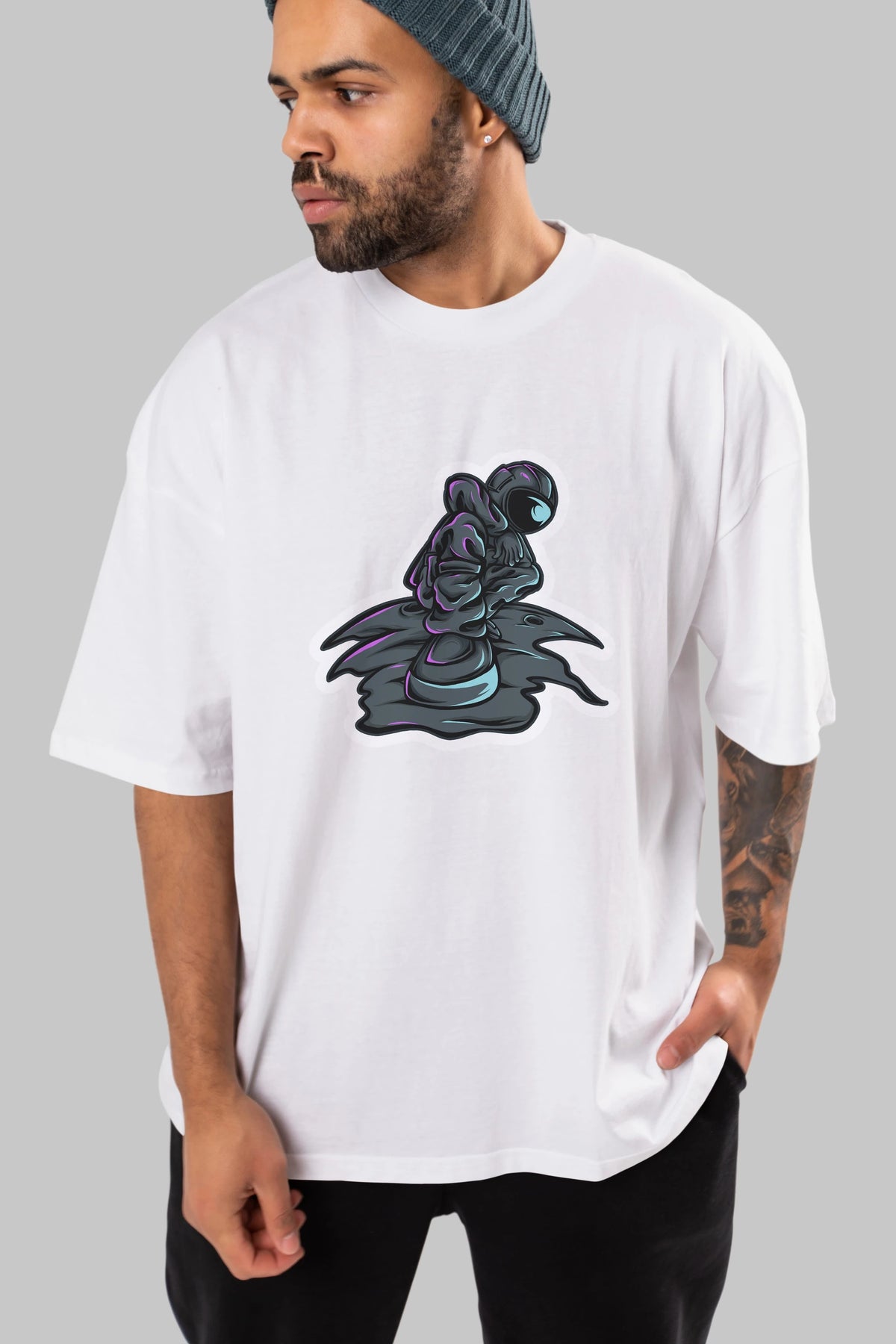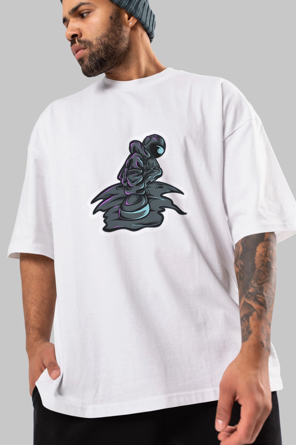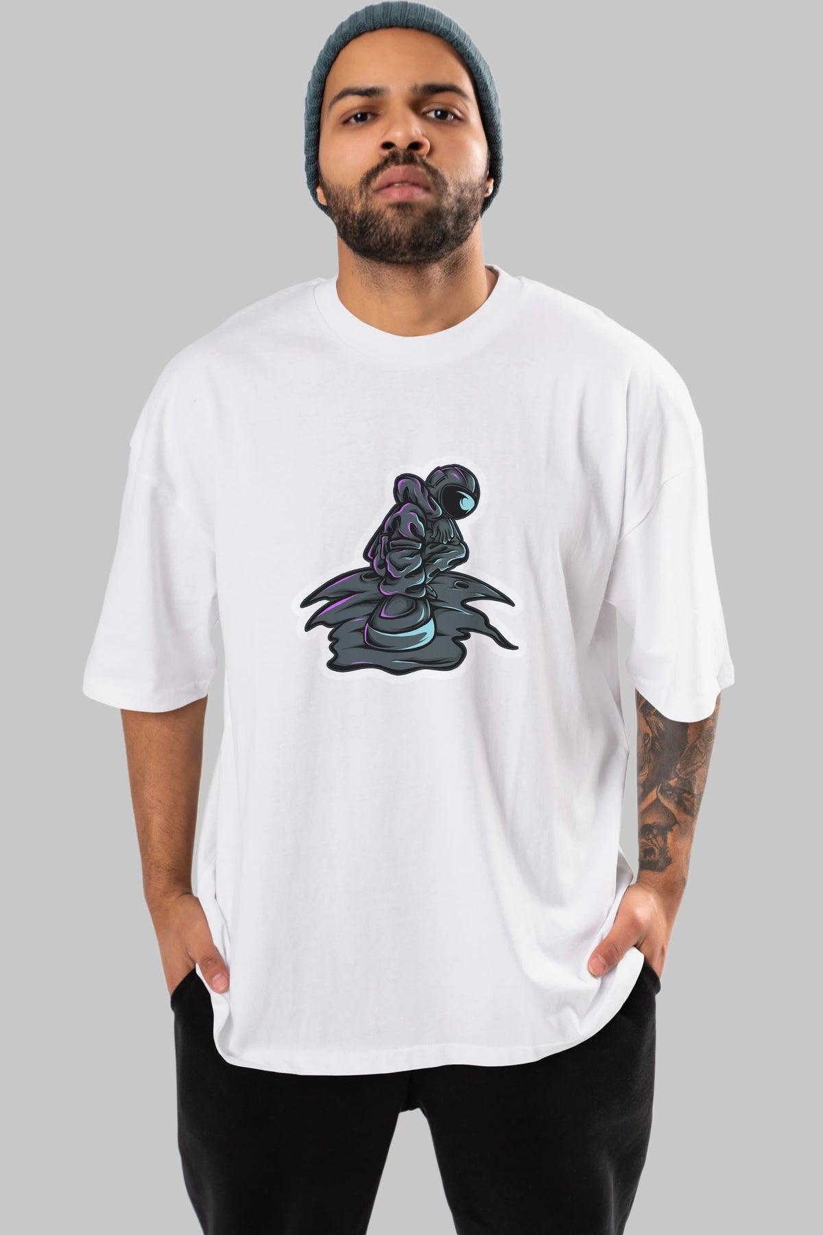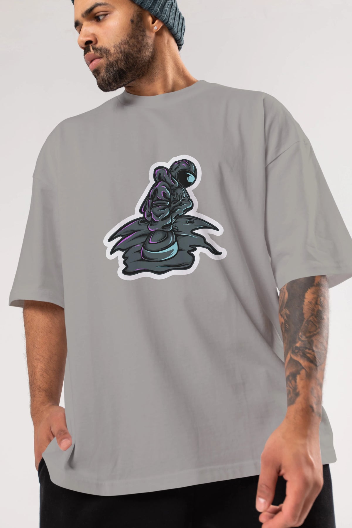 Stylish Astronaut Sticker Ön Baskılı Oversize t-shirt Erkek Kadın Unisex