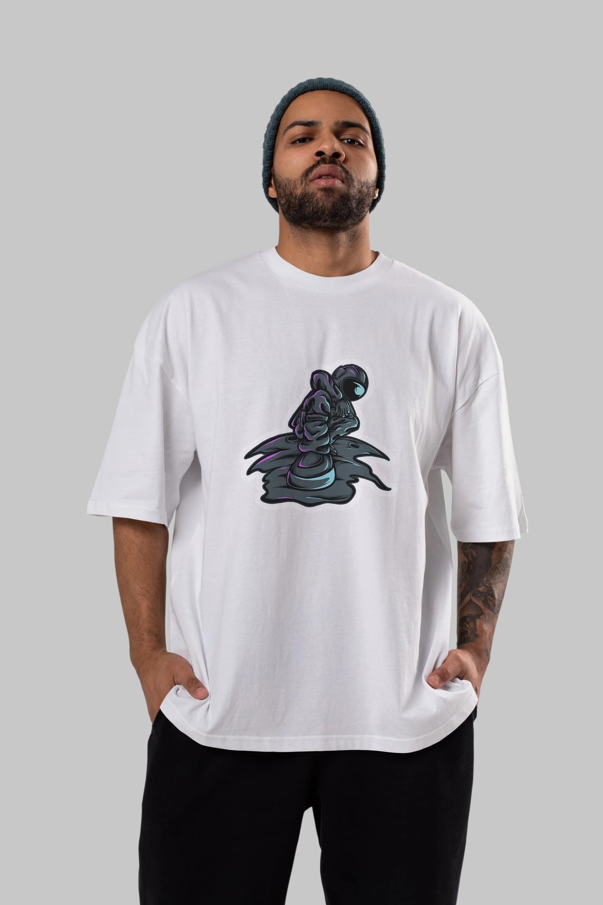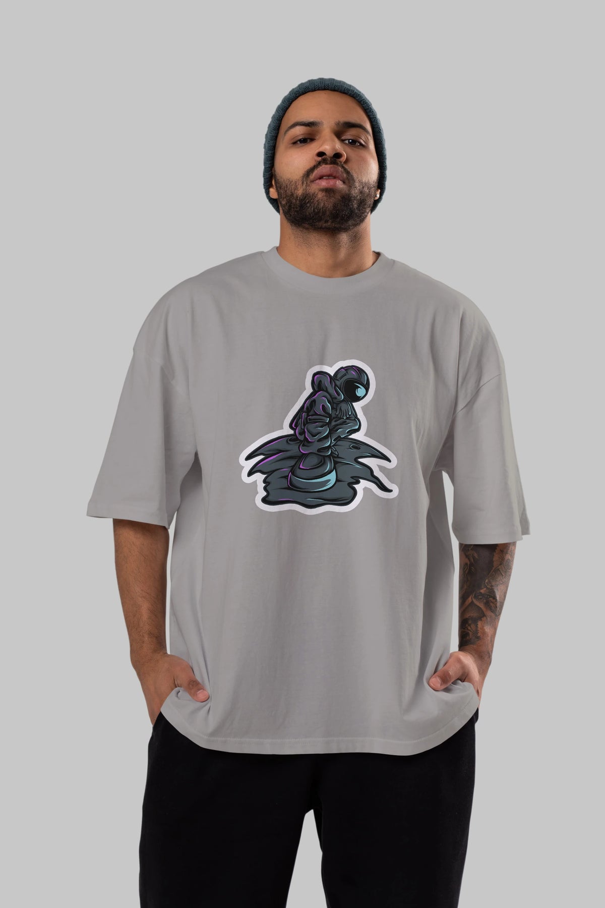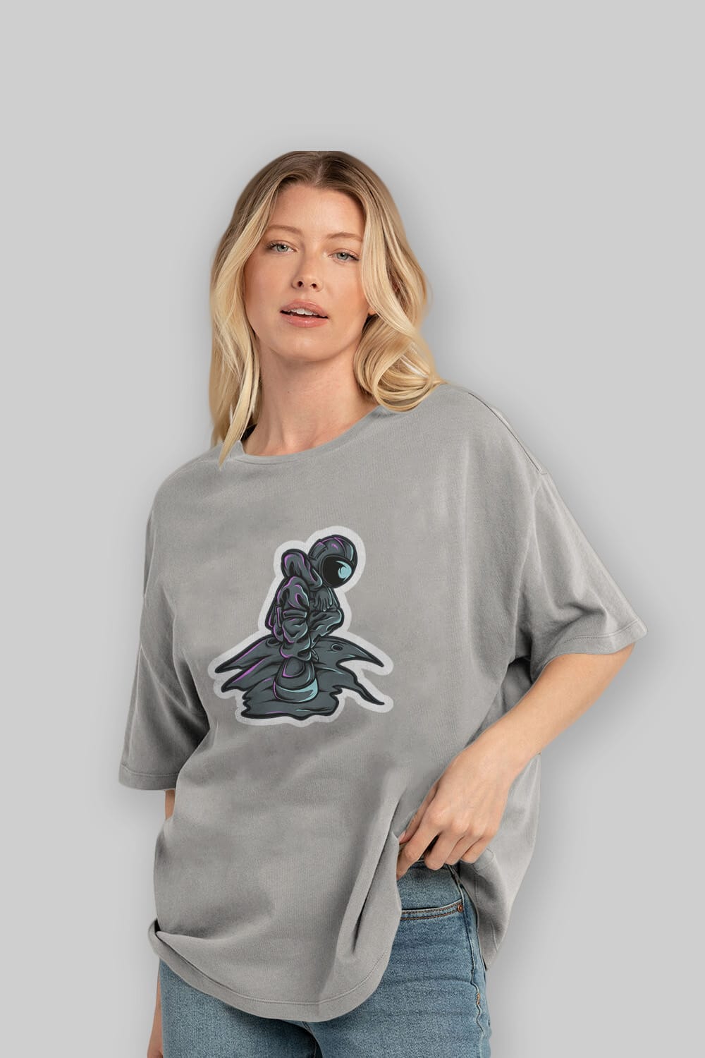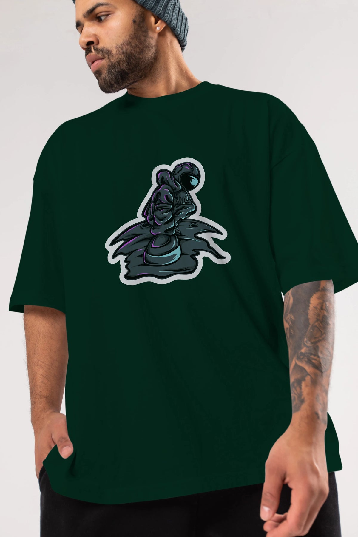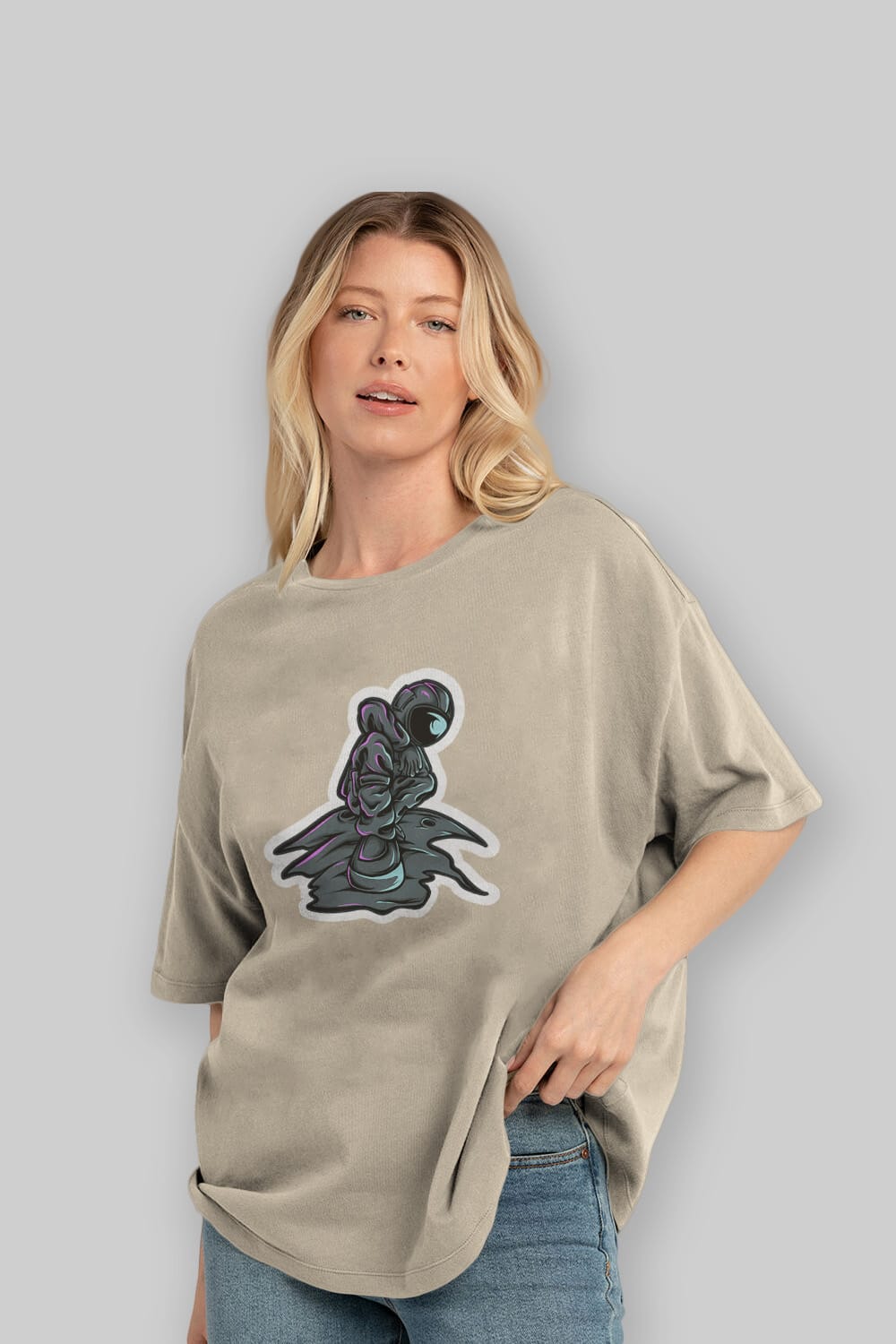 Stylish Astronaut Sticker Ön Baskılı Oversize t-shirt Erkek Kadın Unisex
