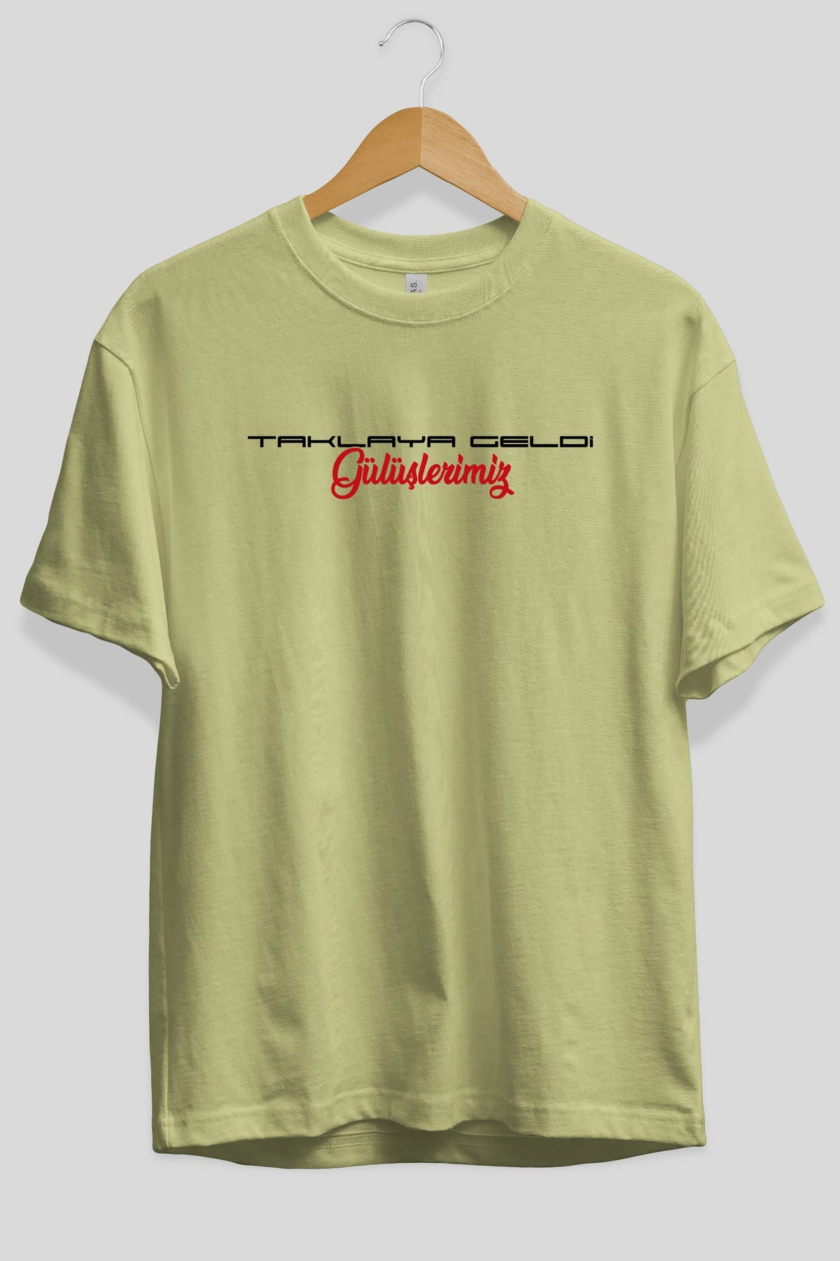 Taklaya Geldi Gülüşlerimiz Ön Baskılı Oversize t-shirt %100 pamuk Erkek Kadın Unisex