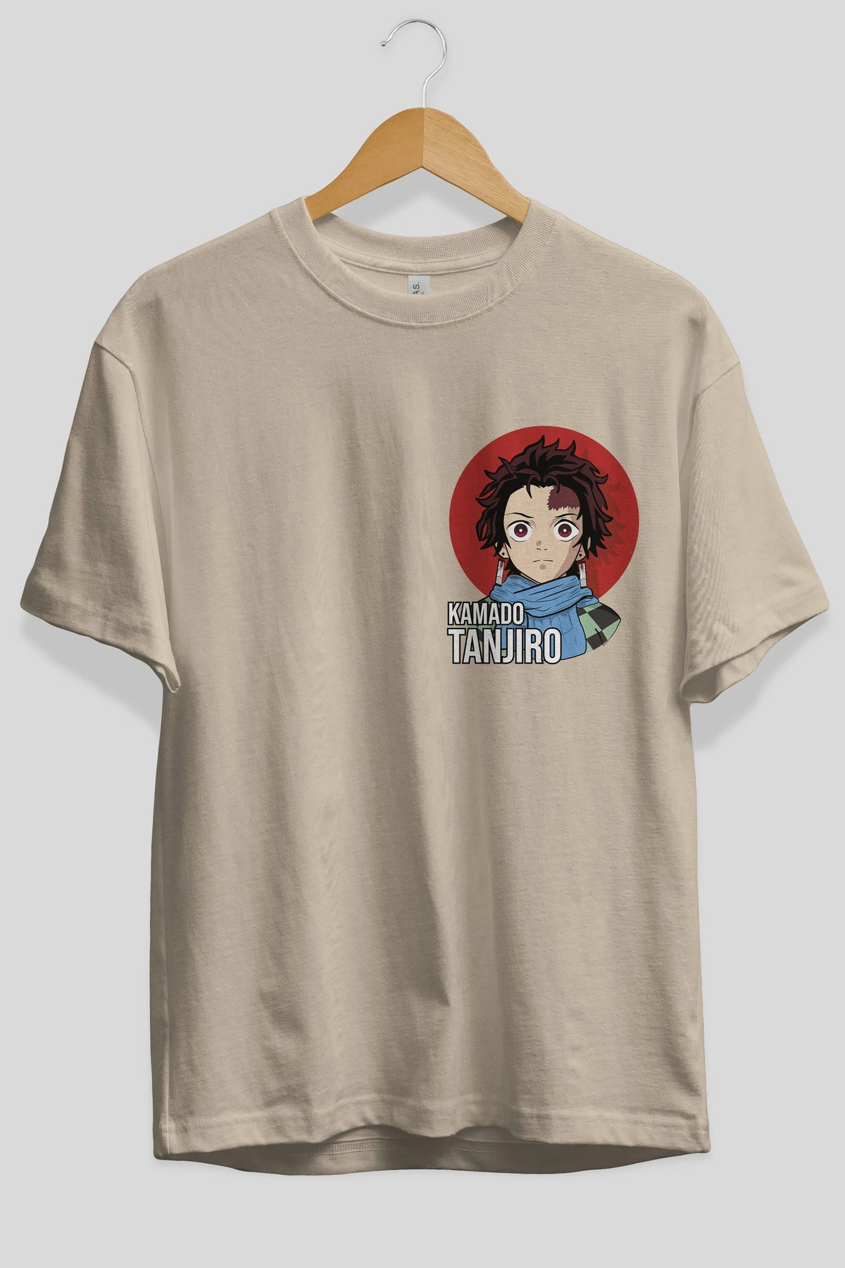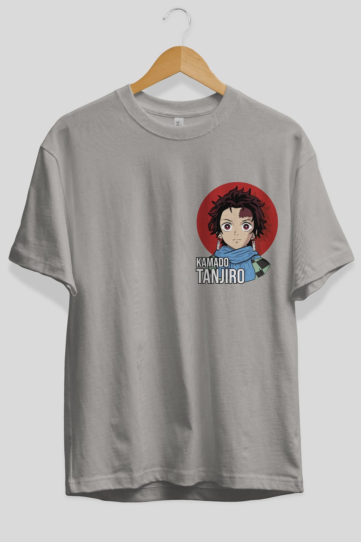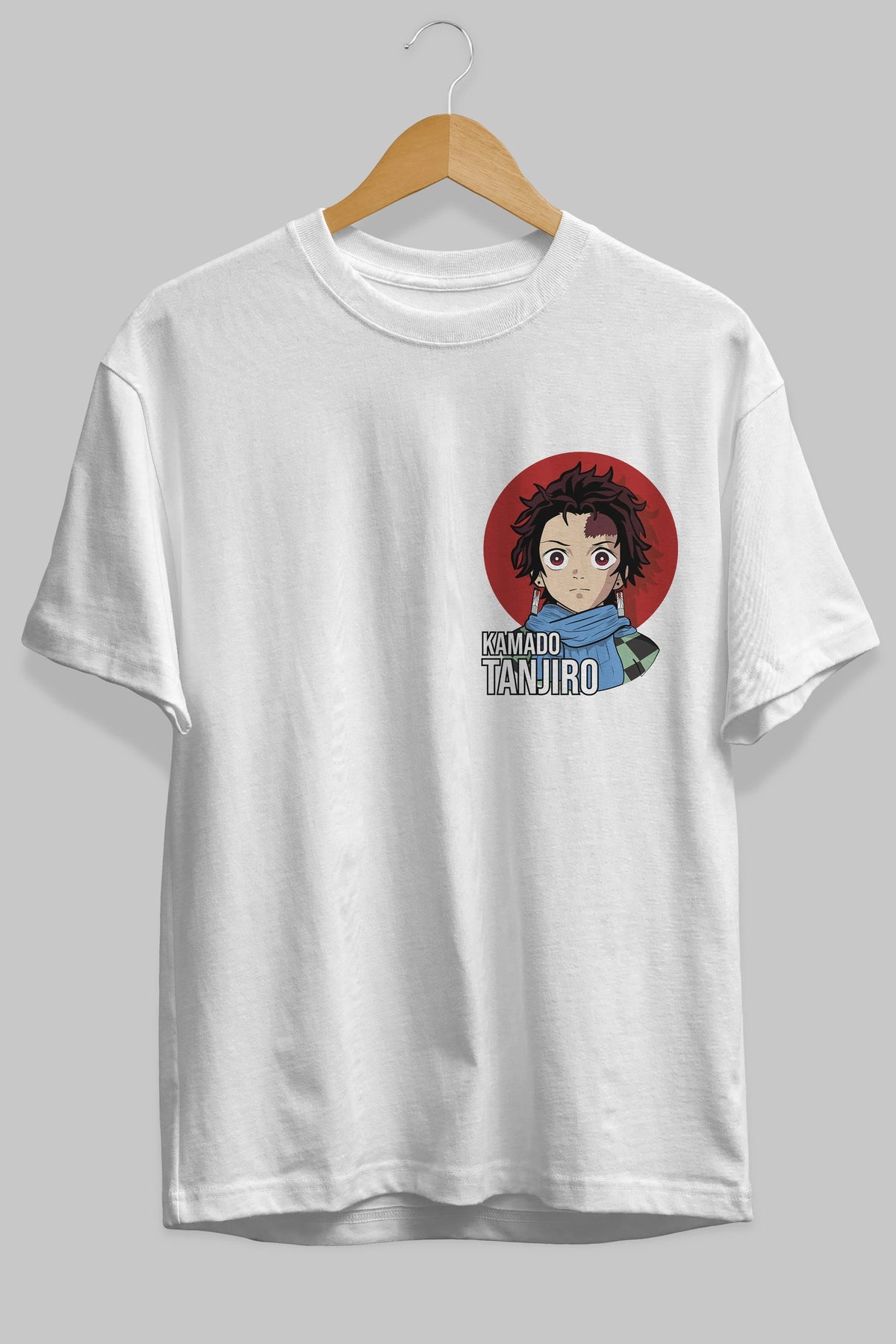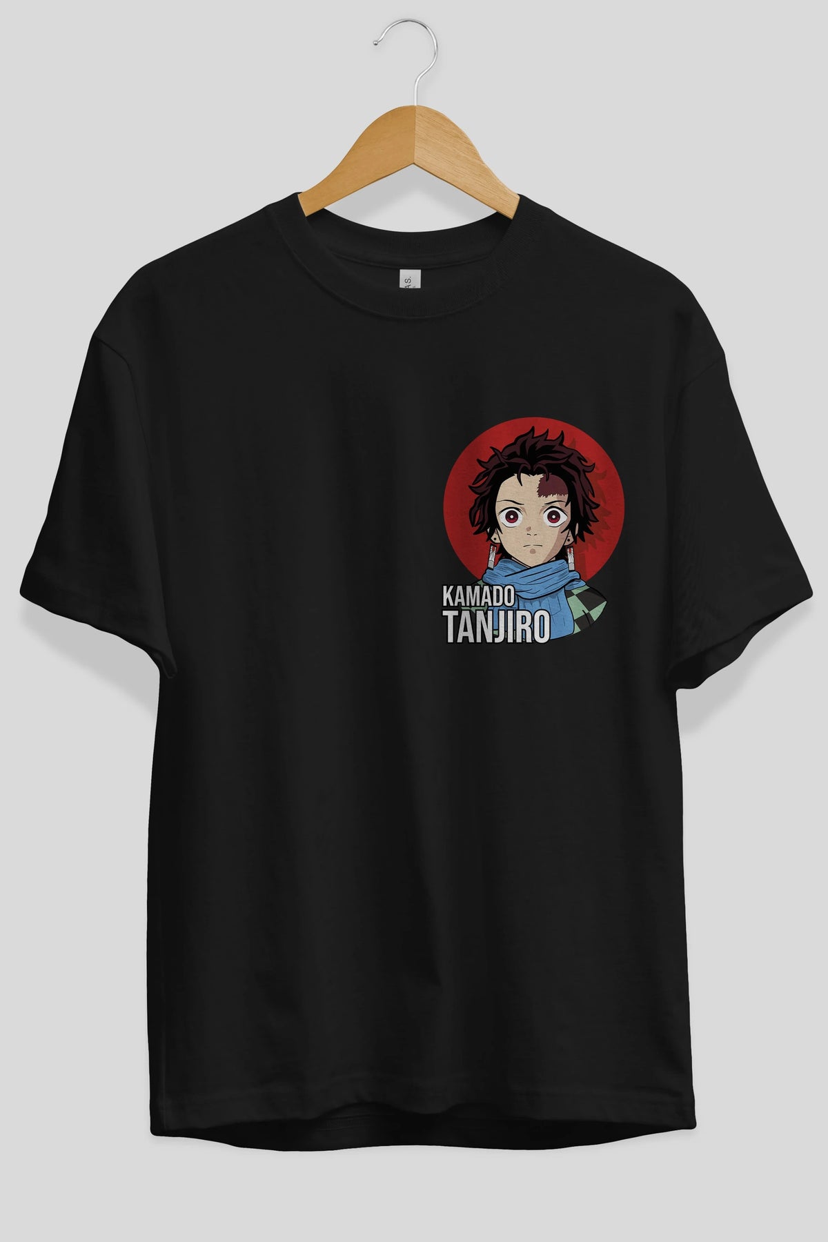 TANJIRO KAMADO Ön Sol Baskılı Oversize t-shirt Erkek Kadın Unisex %100 Pamuk Bisiklet Yaka tişort