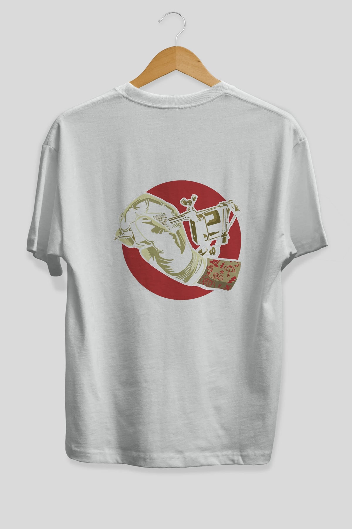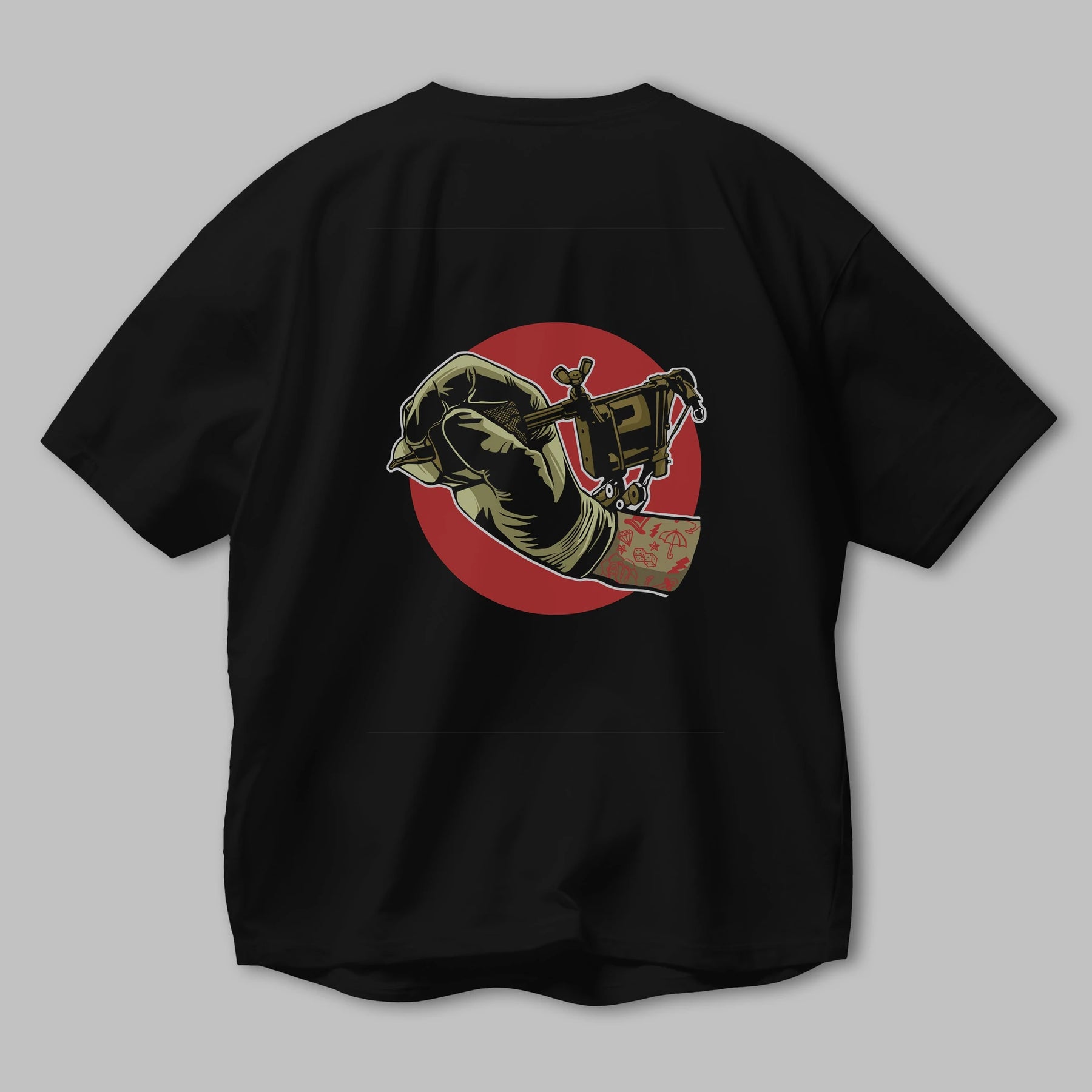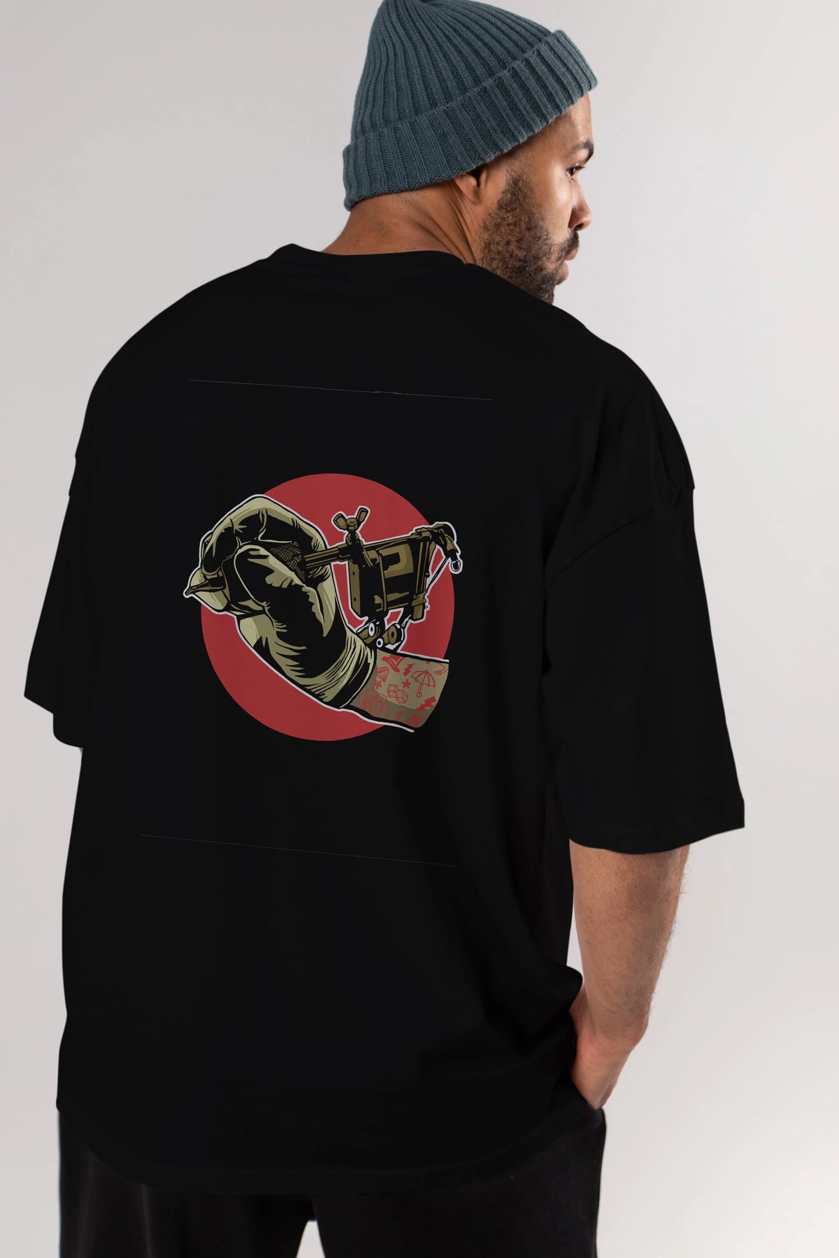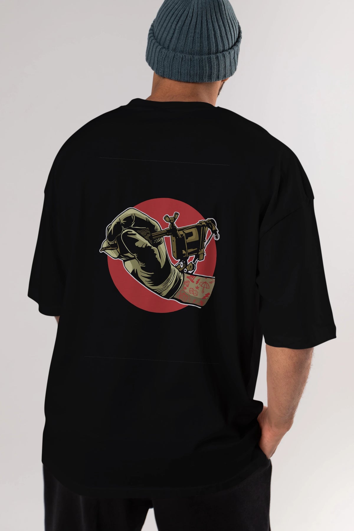 Tattoo Machine ] Arka Baskılı Oversize t-shirt Erkek Kadın Unisex %100 Pamuk