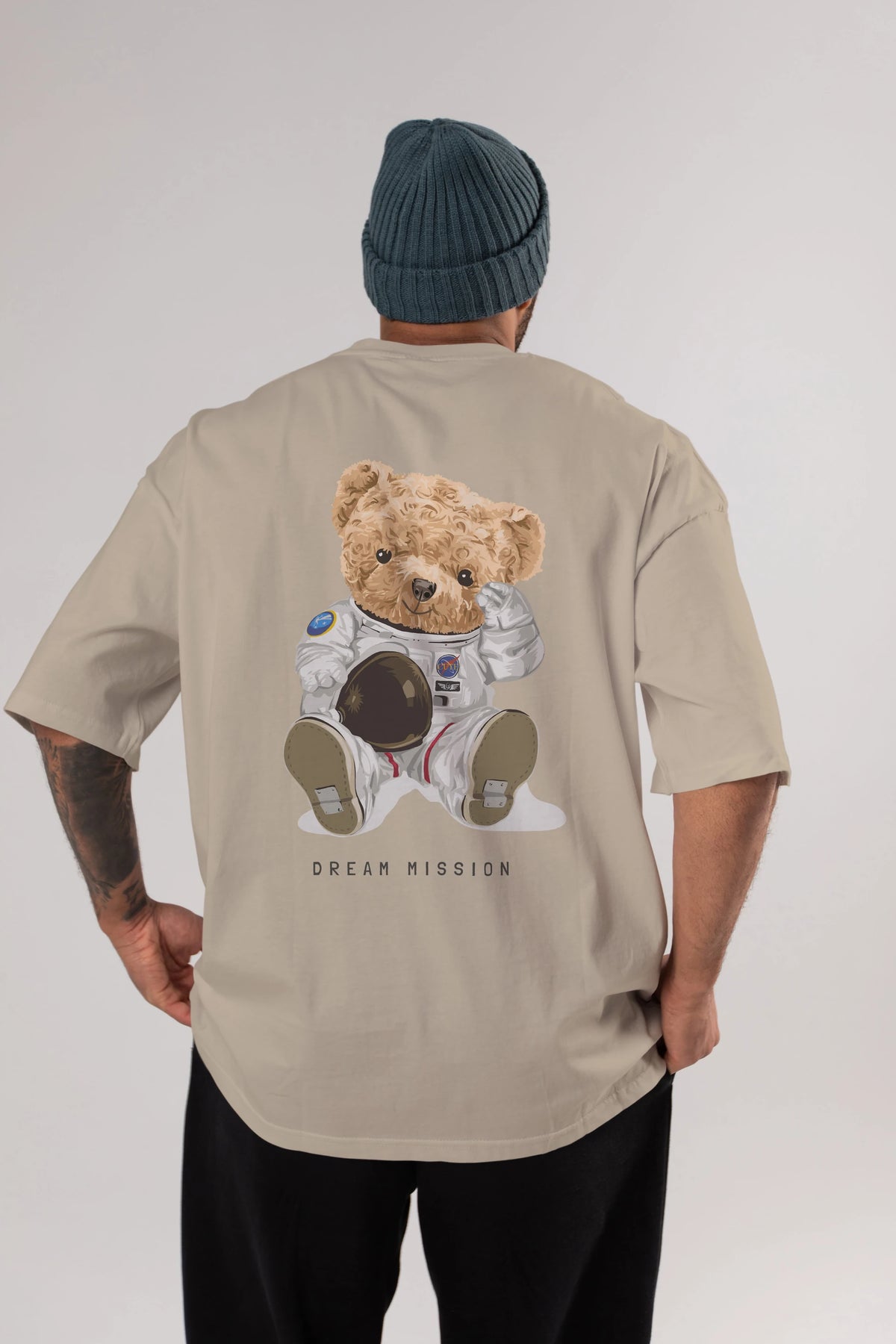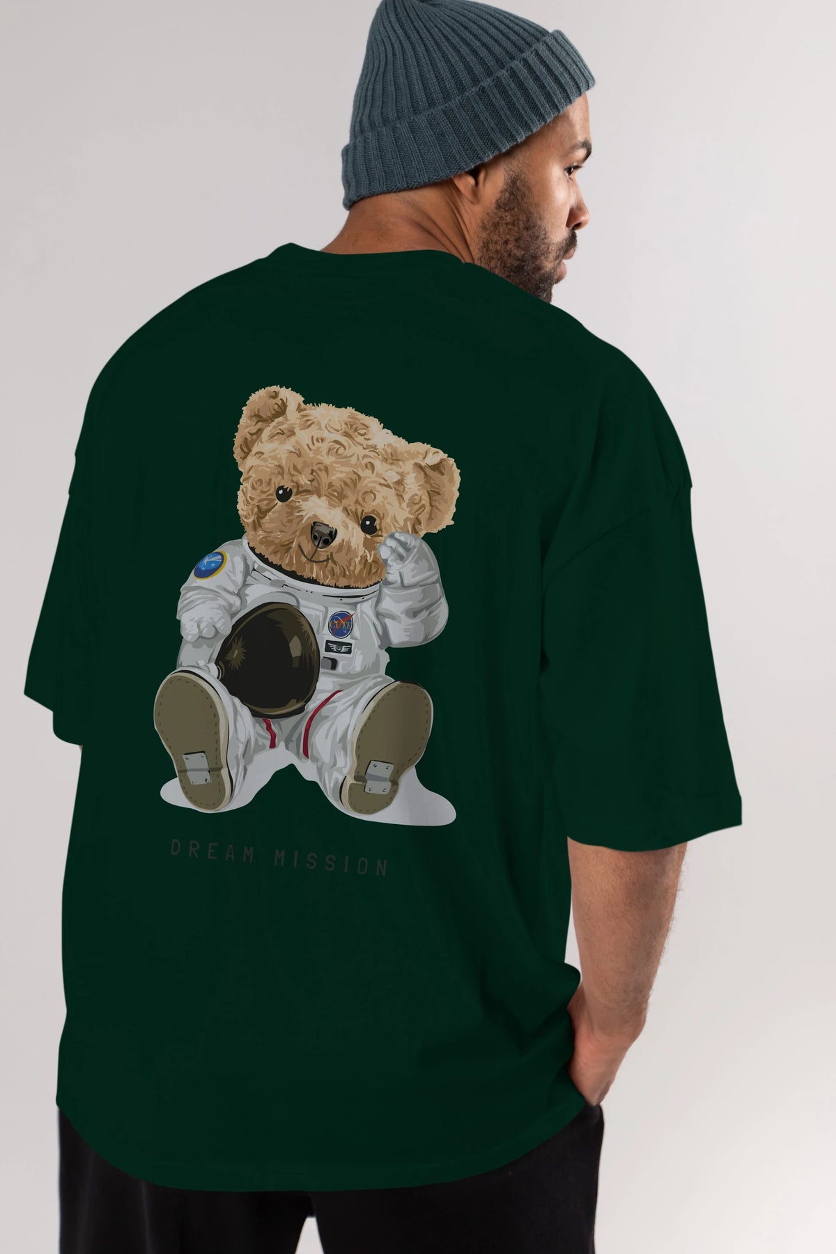 Teddy Bear Asrtonot Arka Baskılı Oversize t-shirt Erkek Kadın Unisex %100 Pamuk
