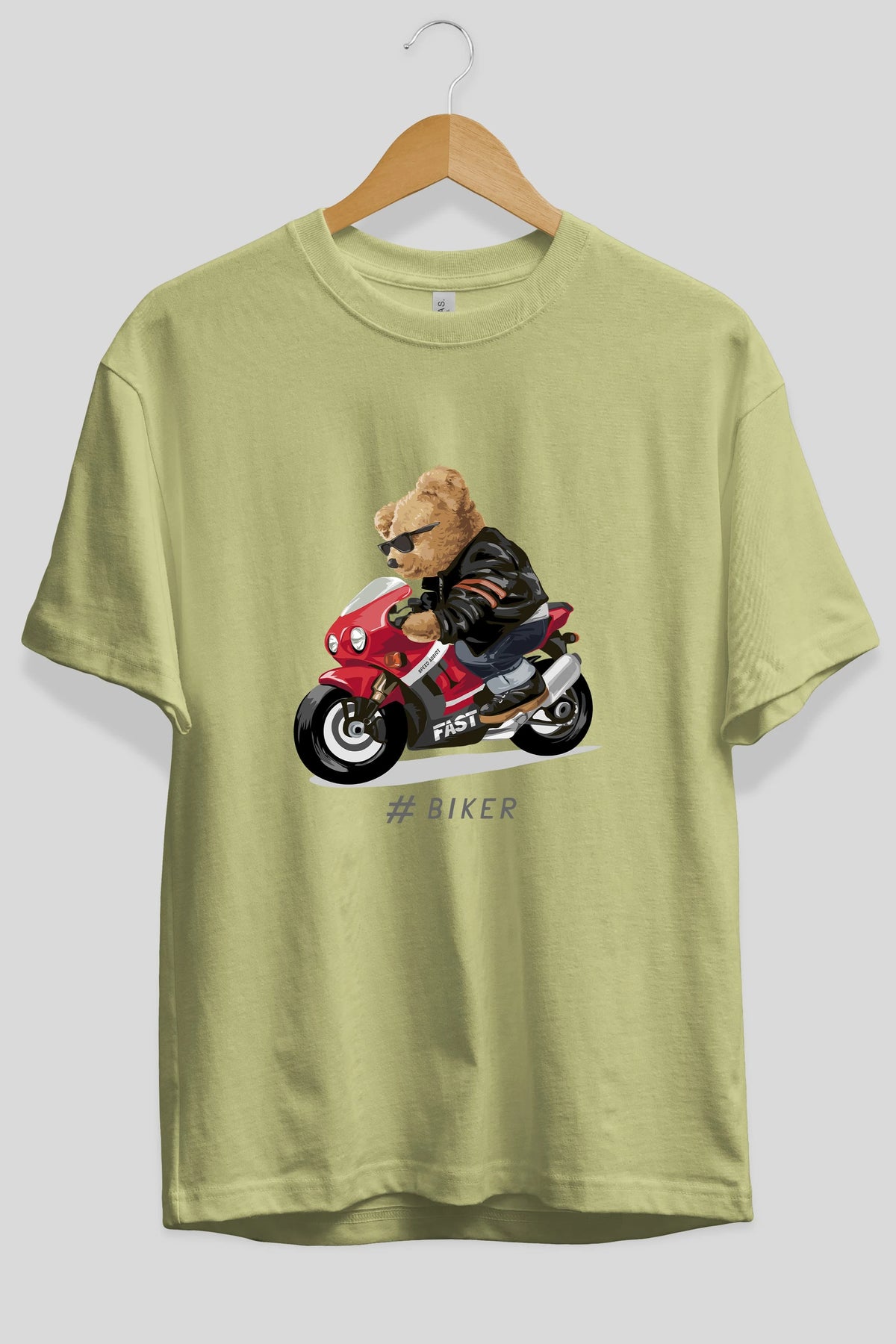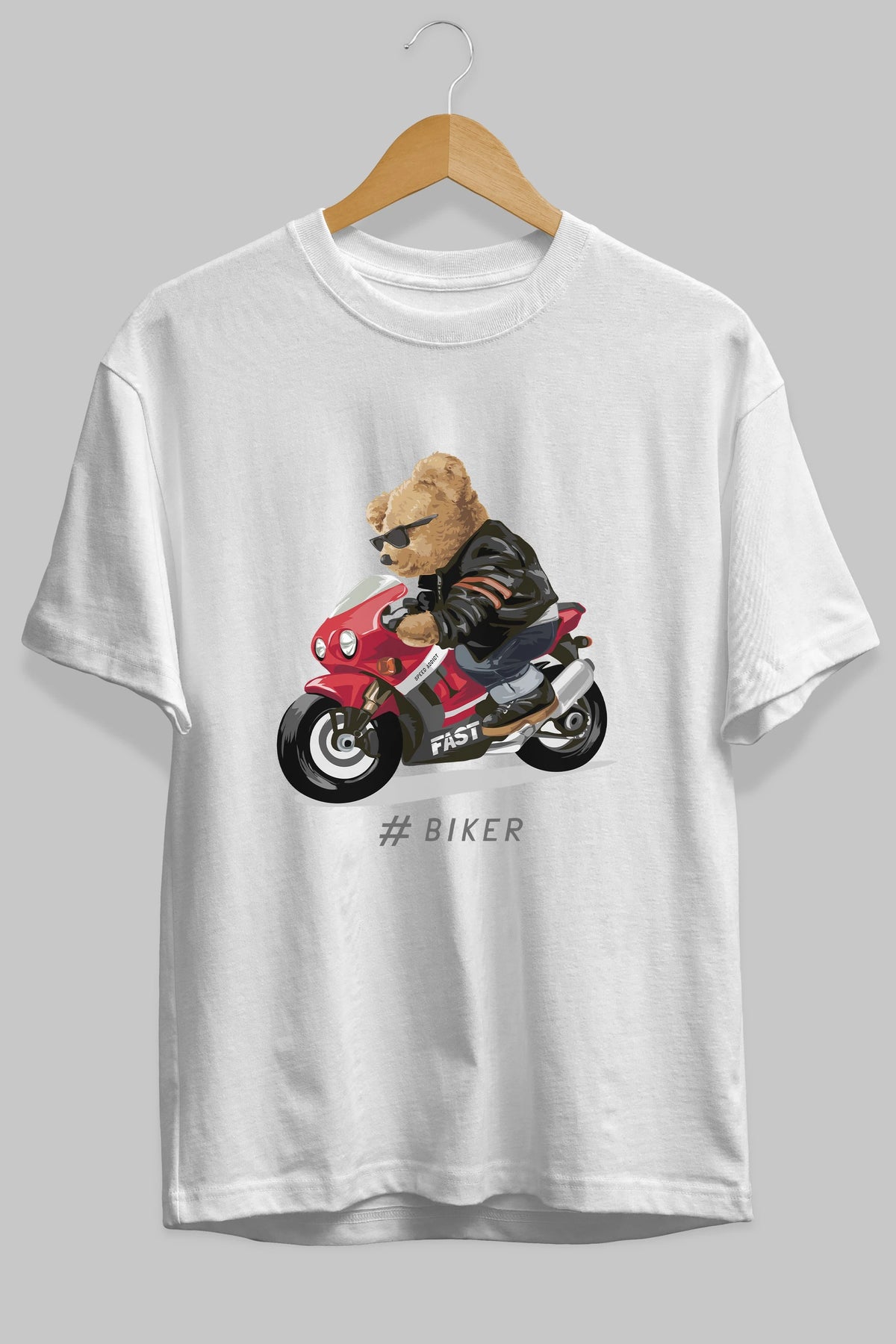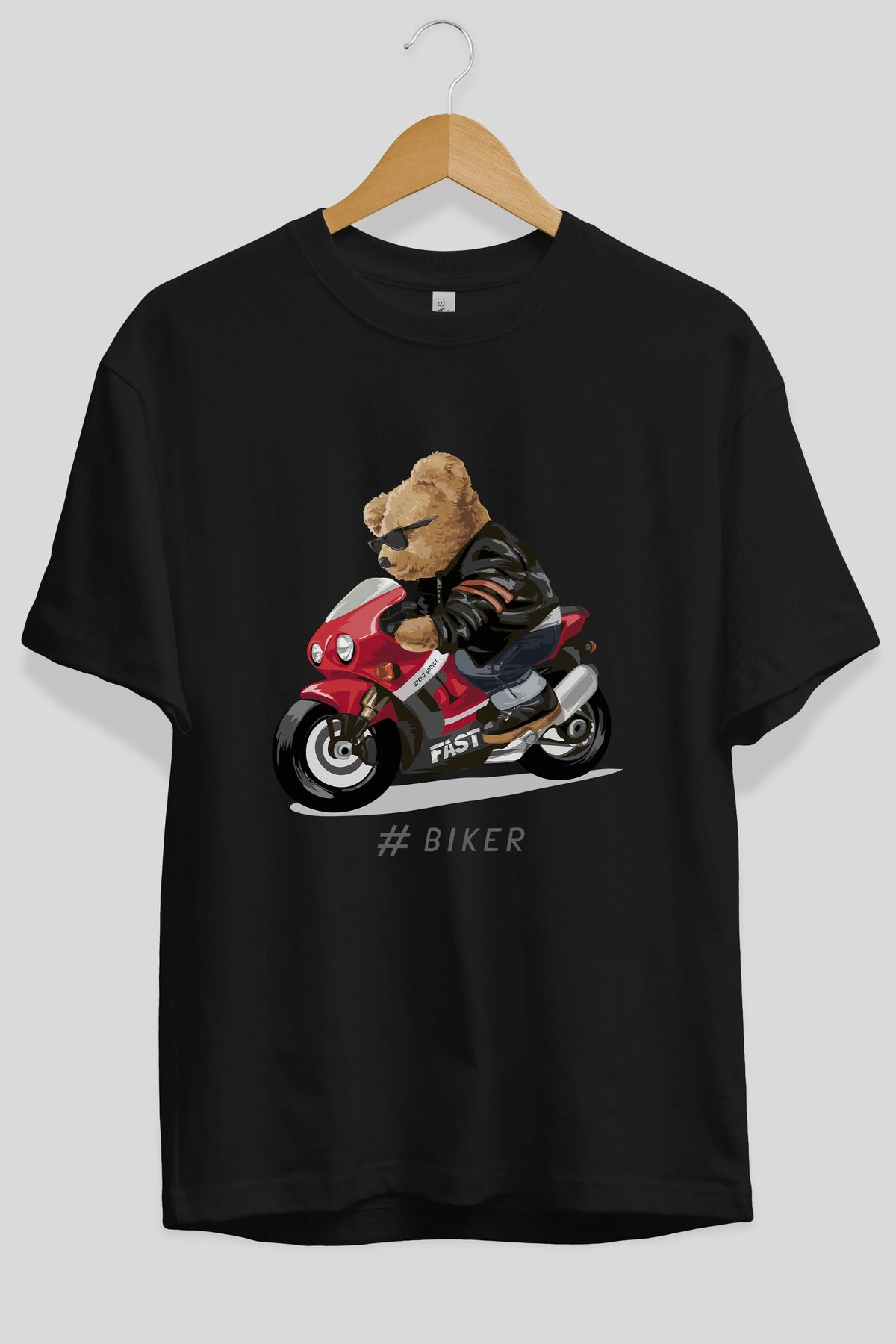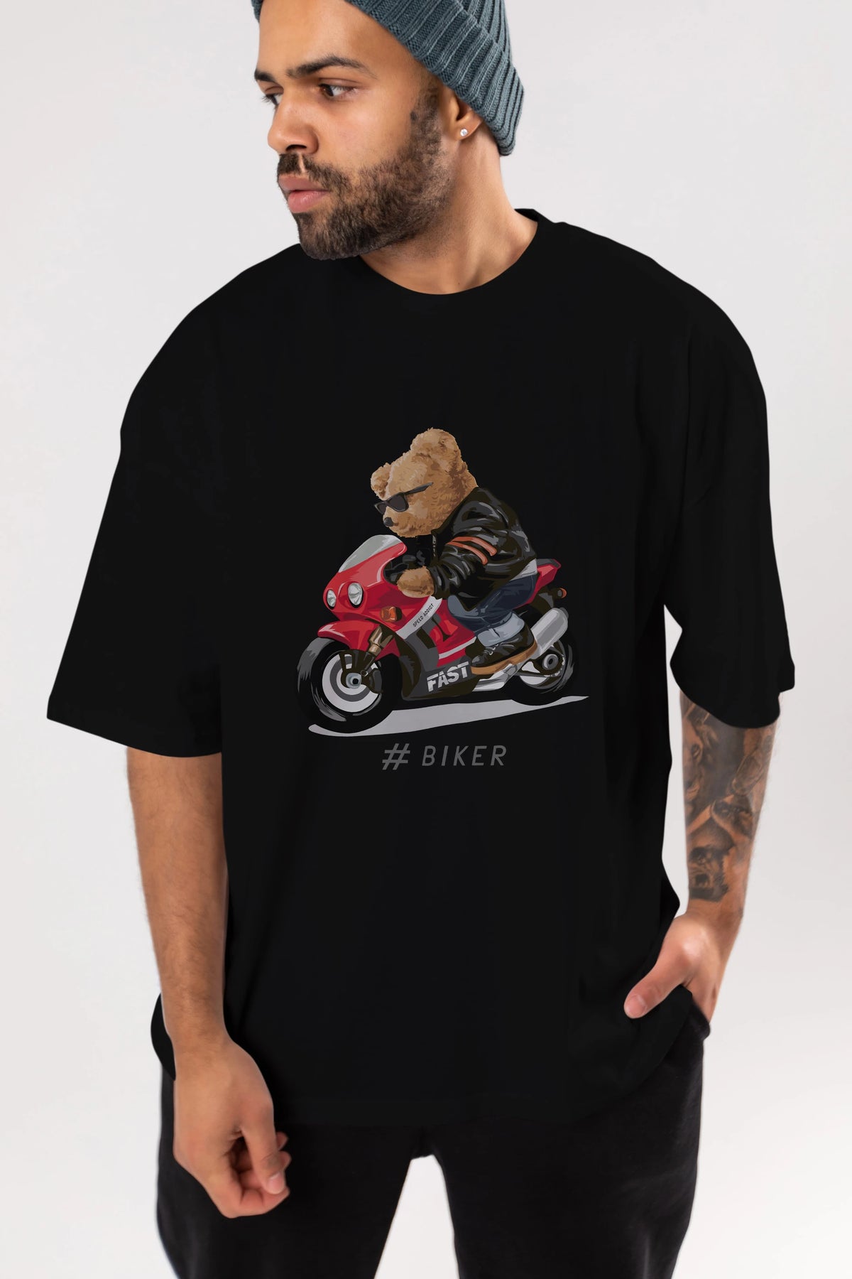 Teddy Bear Biker Ön Baskılı Oversize t-shirt Erkek Kadın Unisex %100 Pamuk