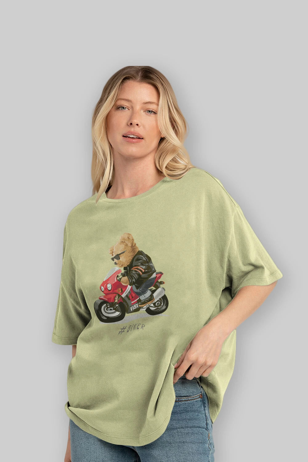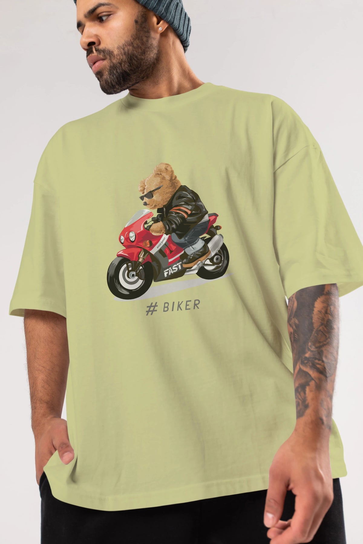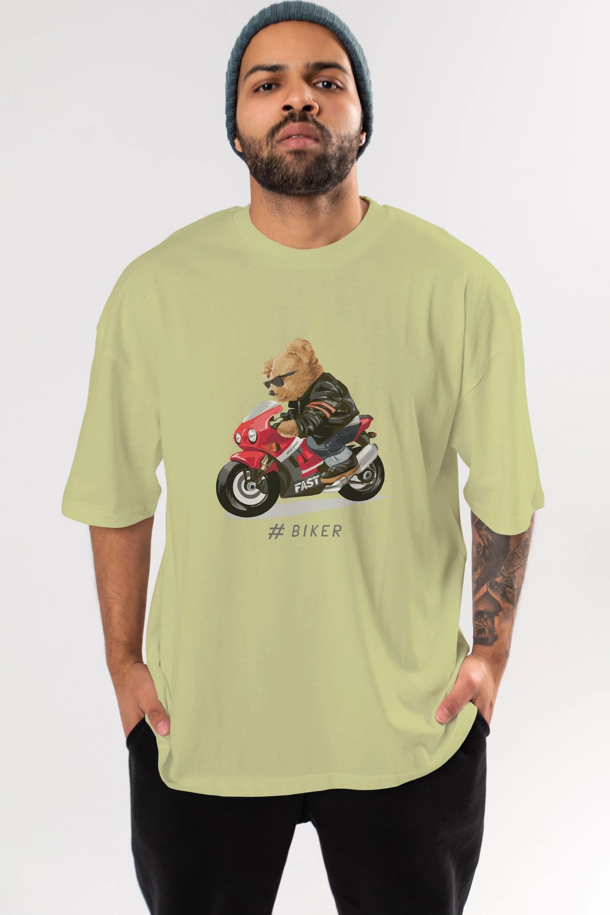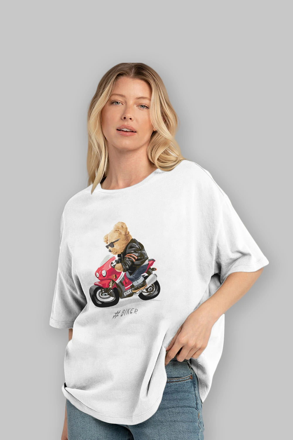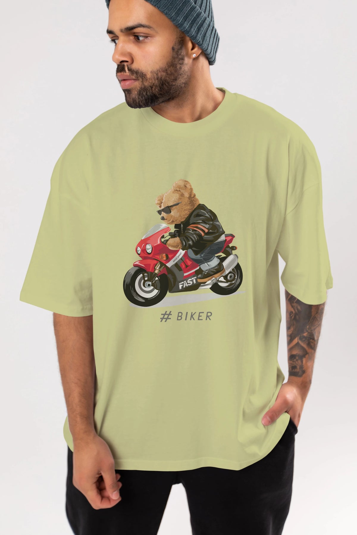 Teddy Bear Biker Ön Baskılı Oversize t-shirt Erkek Kadın Unisex %100 Pamuk