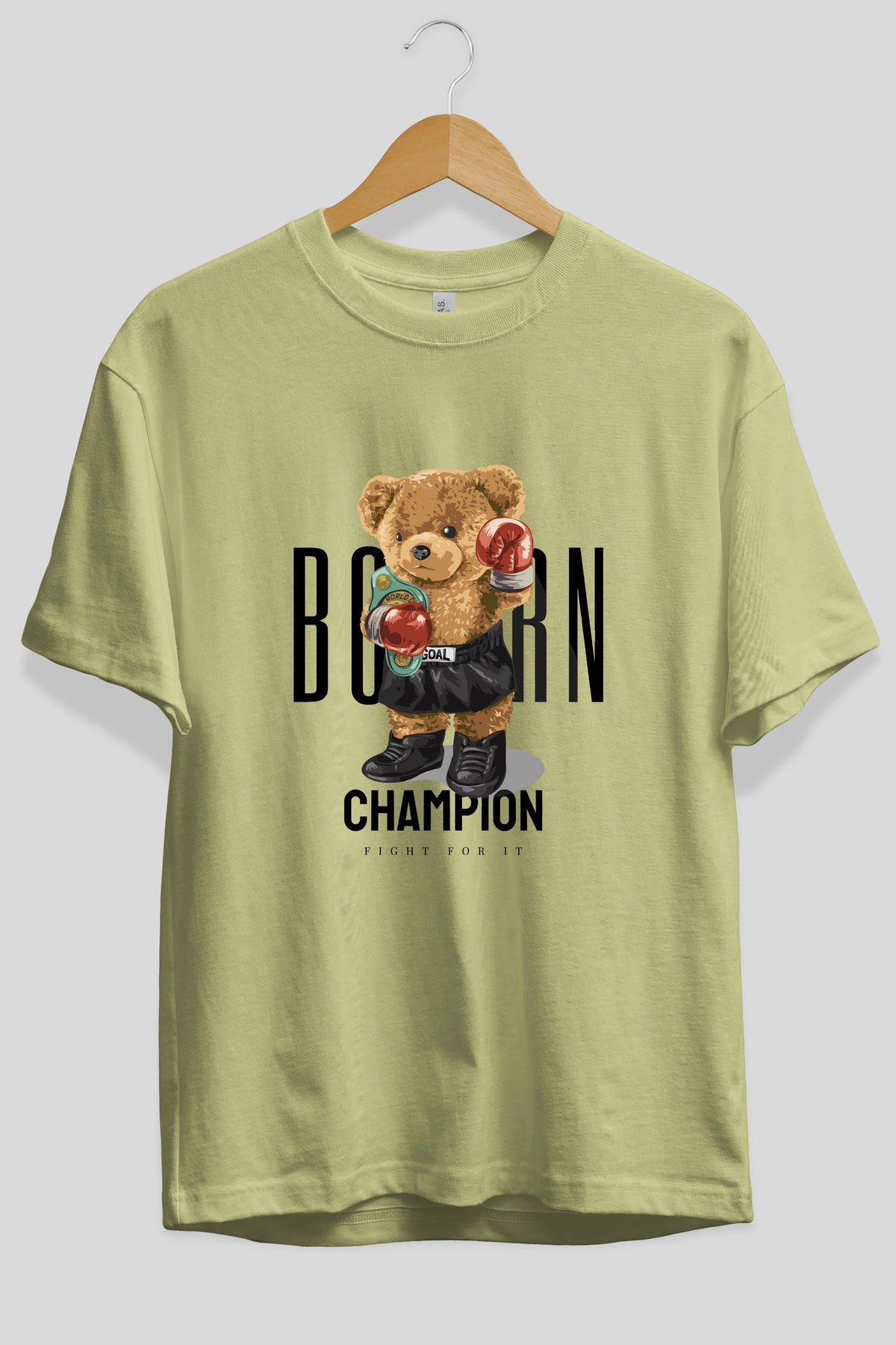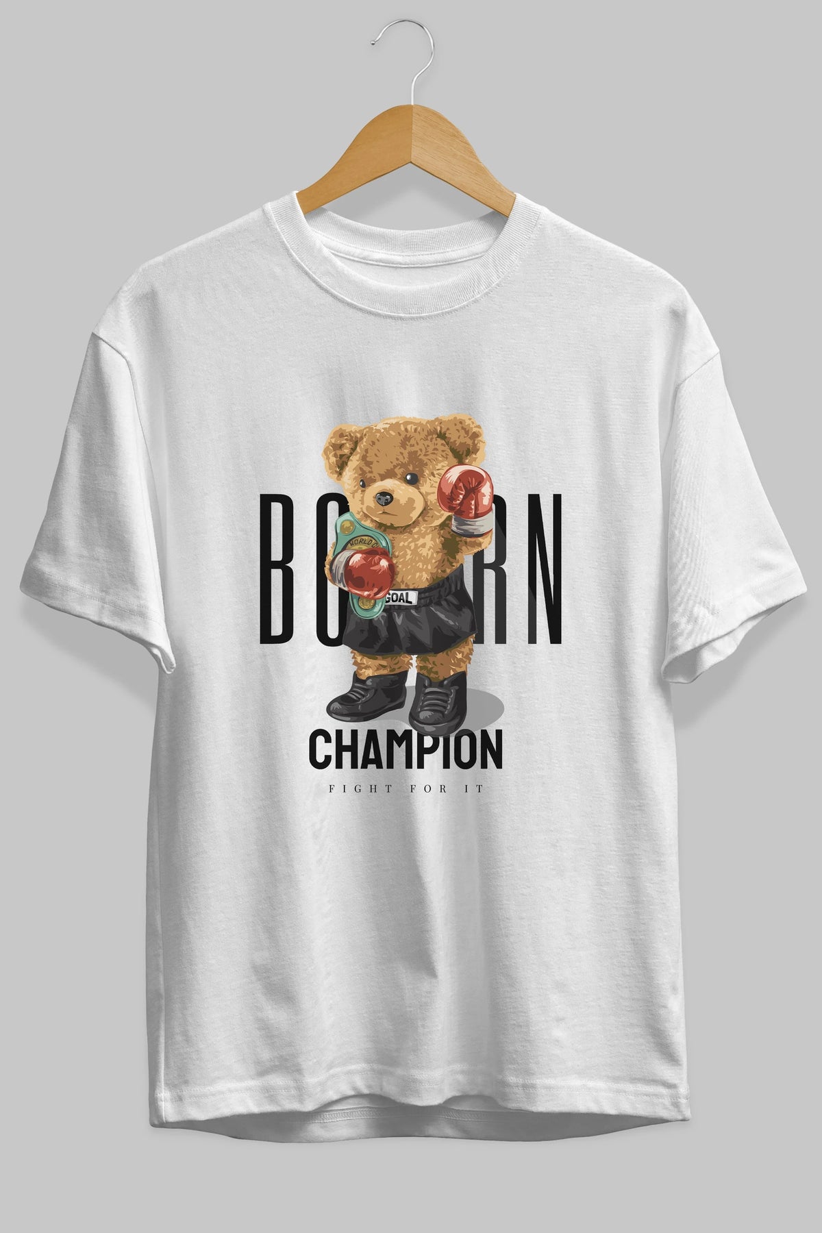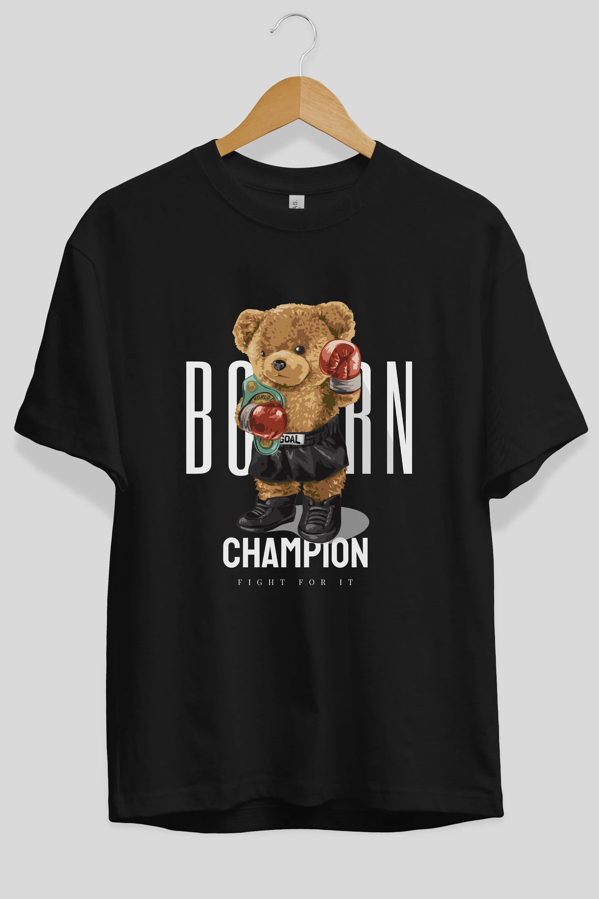 Teddy Bear Champion Ön Baskılı Oversize t-shirt Erkek Kadın Unisex %100 Pamuk
