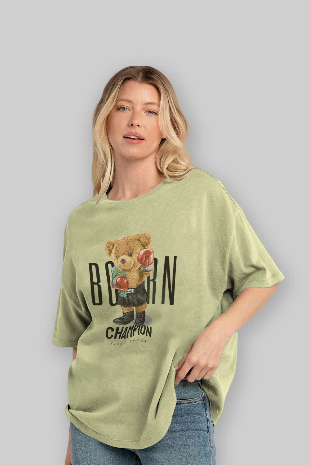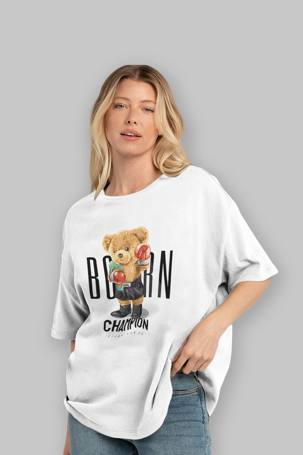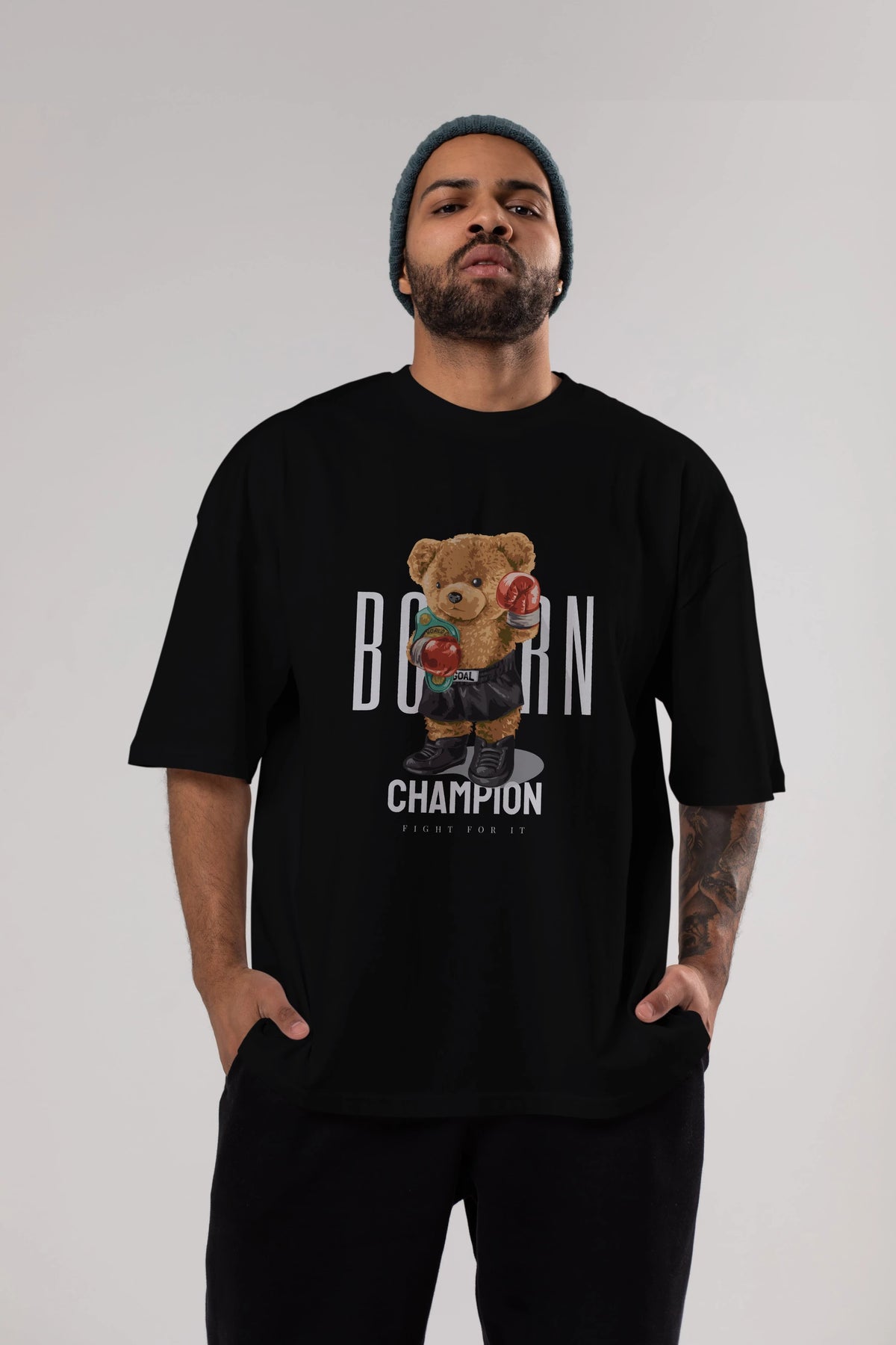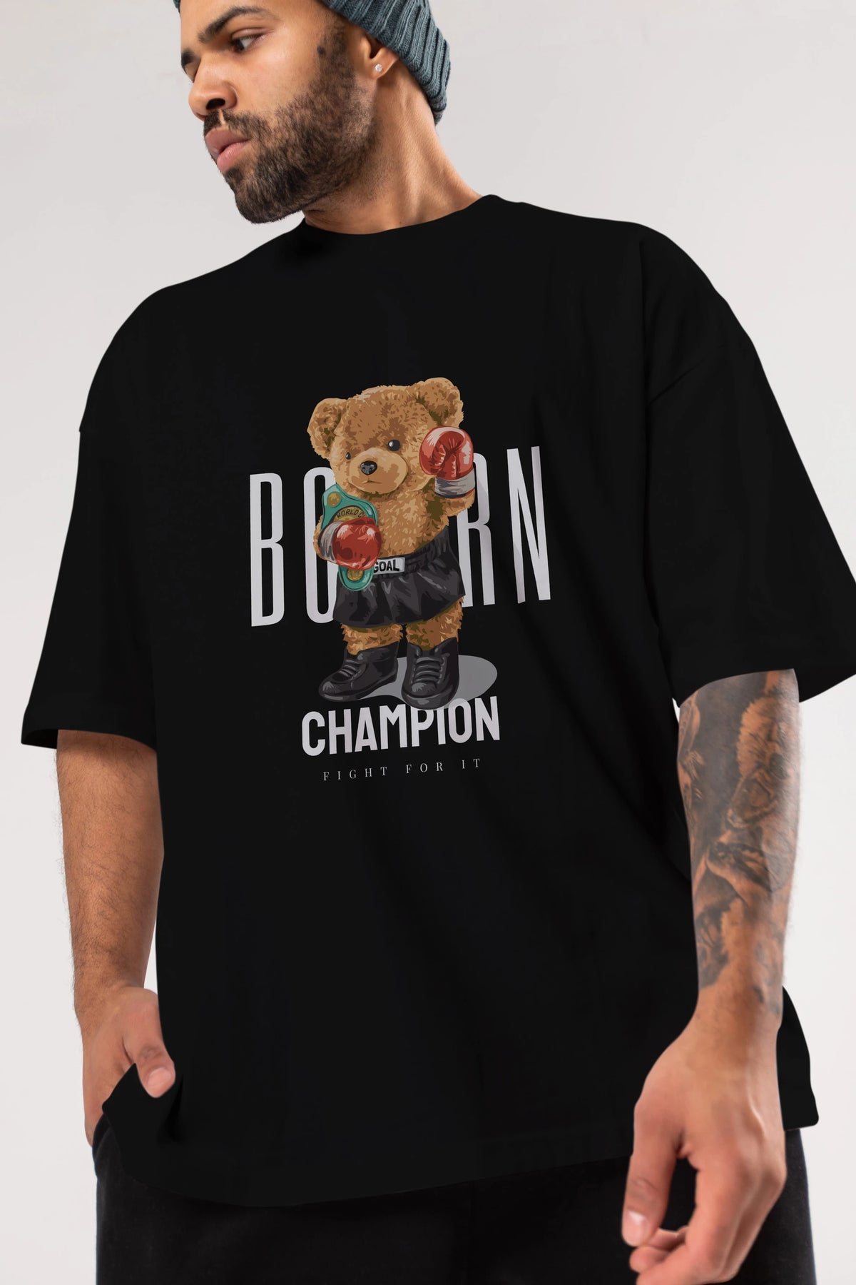 Teddy Bear Champion Ön Baskılı Oversize t-shirt Erkek Kadın Unisex %100 Pamuk