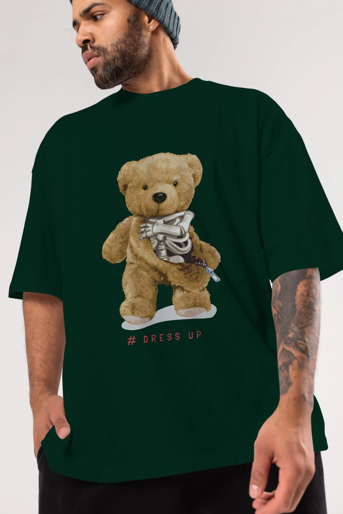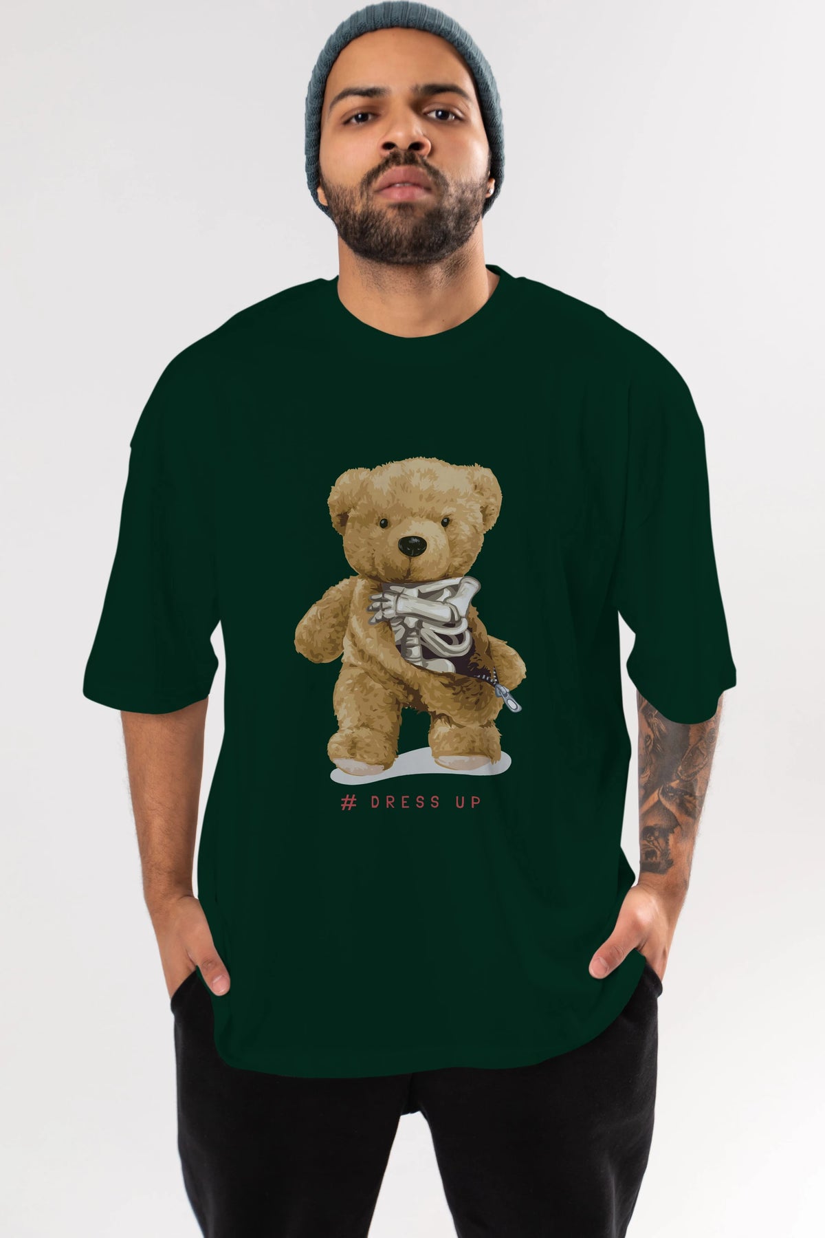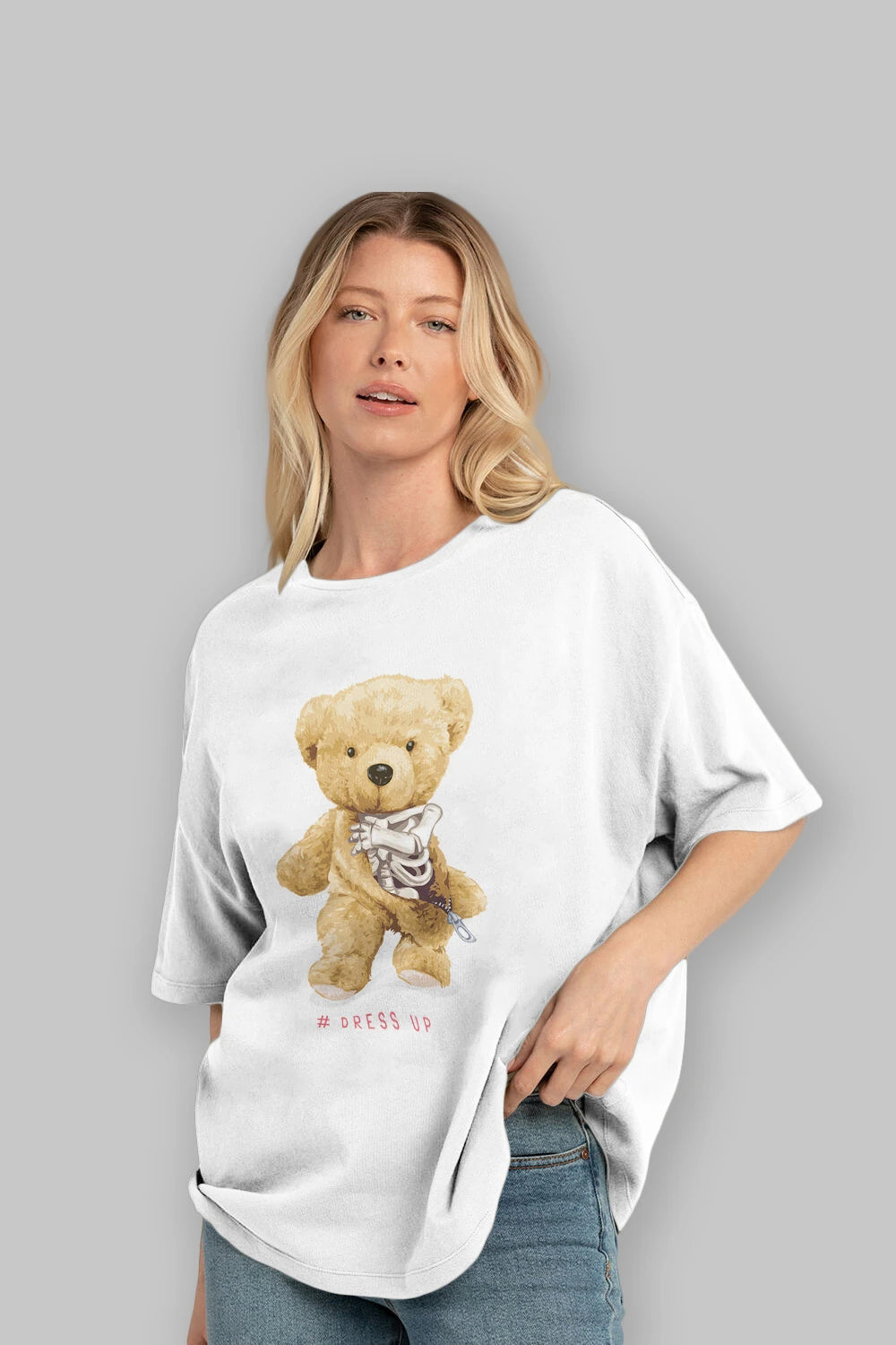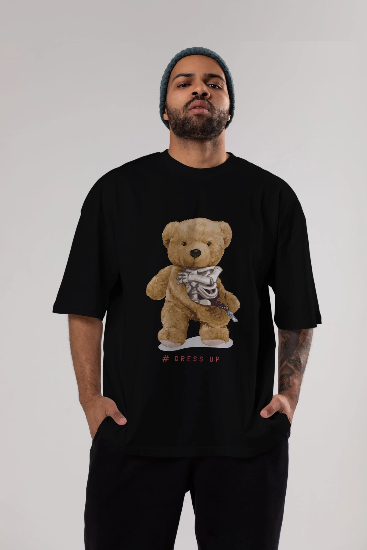 Teddy Bear Dress Up Ön Baskılı Oversize t-shirt Erkek Kadın Unisex %100 Pamuk