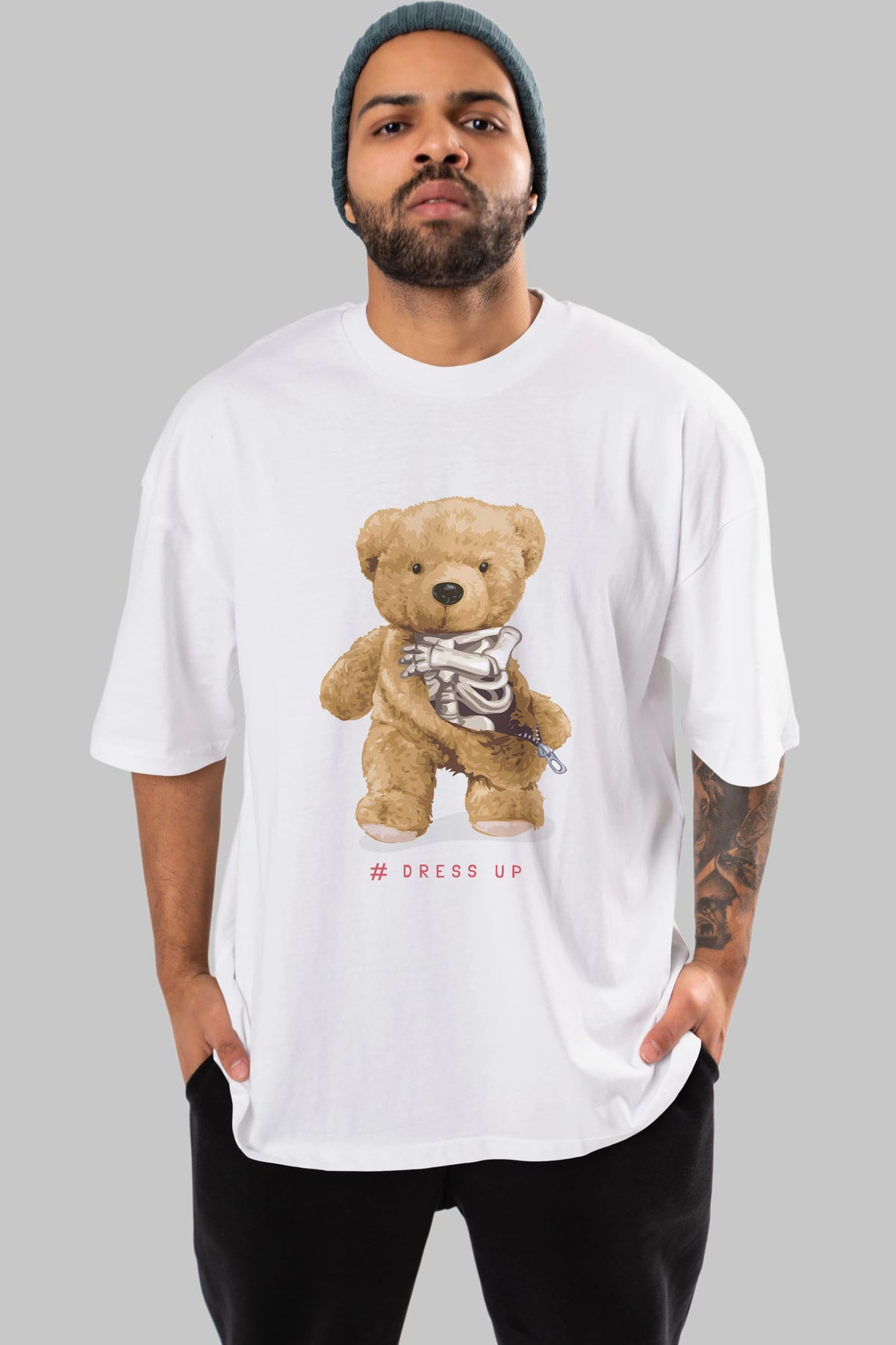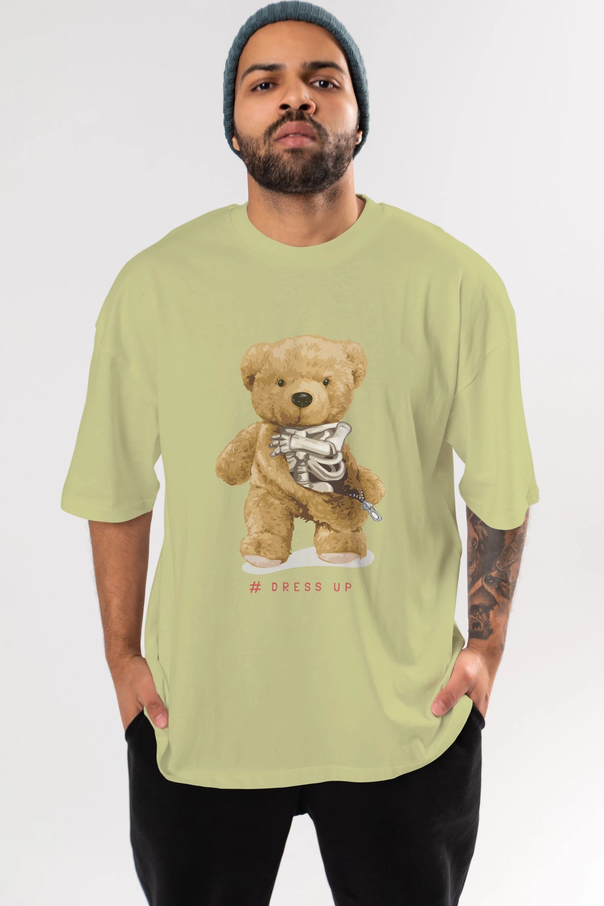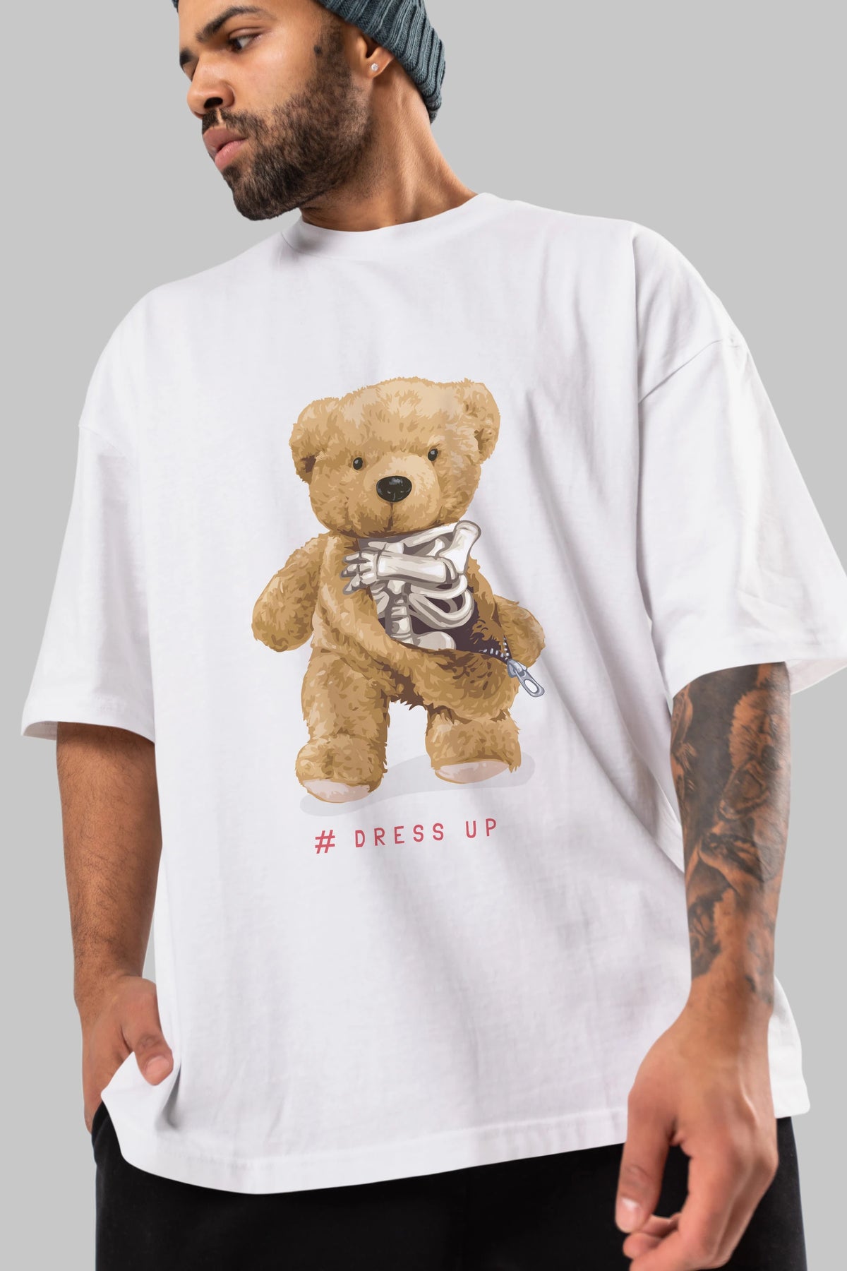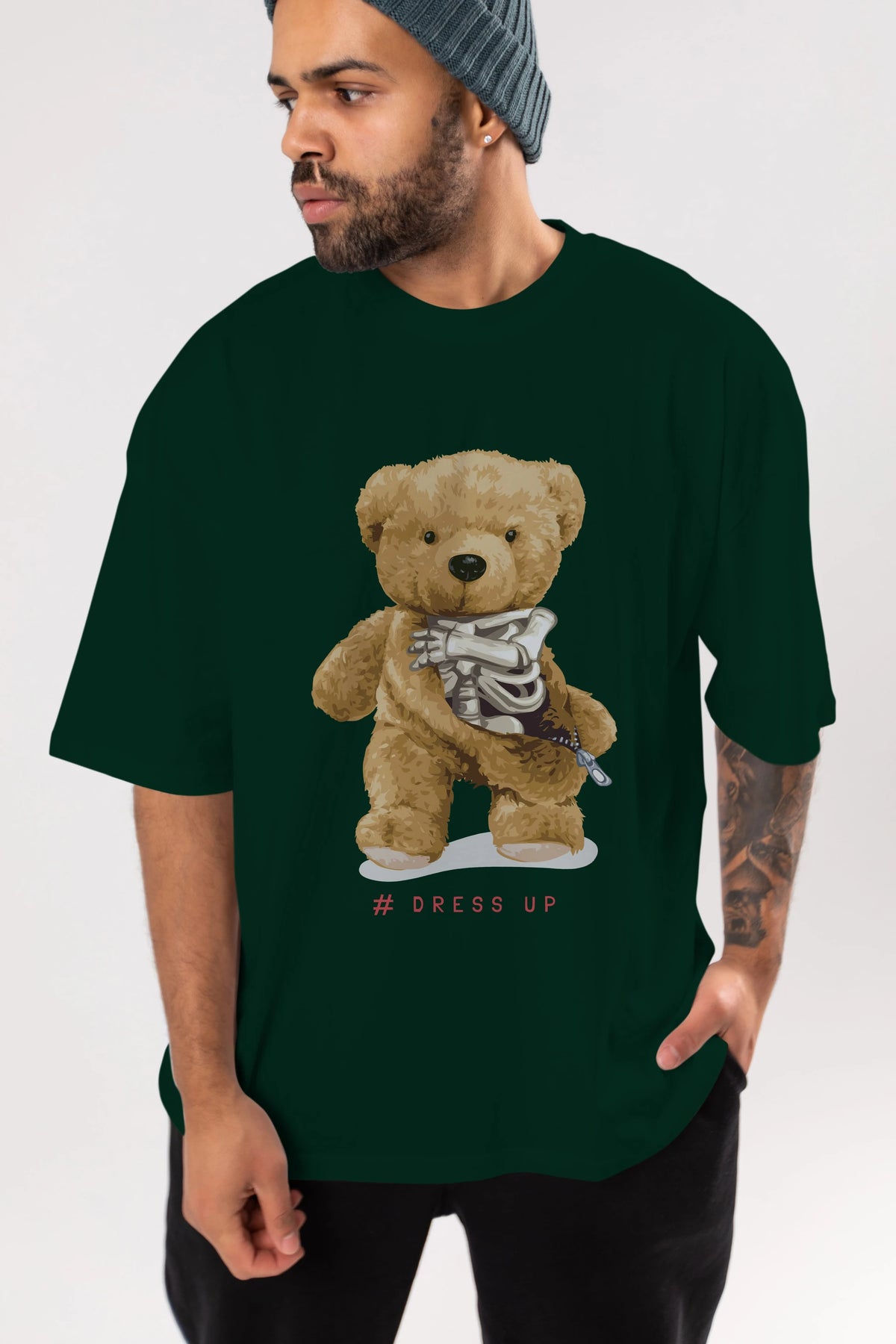 Teddy Bear Dress Up Ön Baskılı Oversize t-shirt Erkek Kadın Unisex %100 Pamuk
