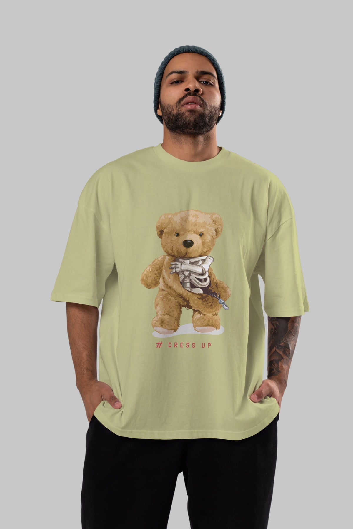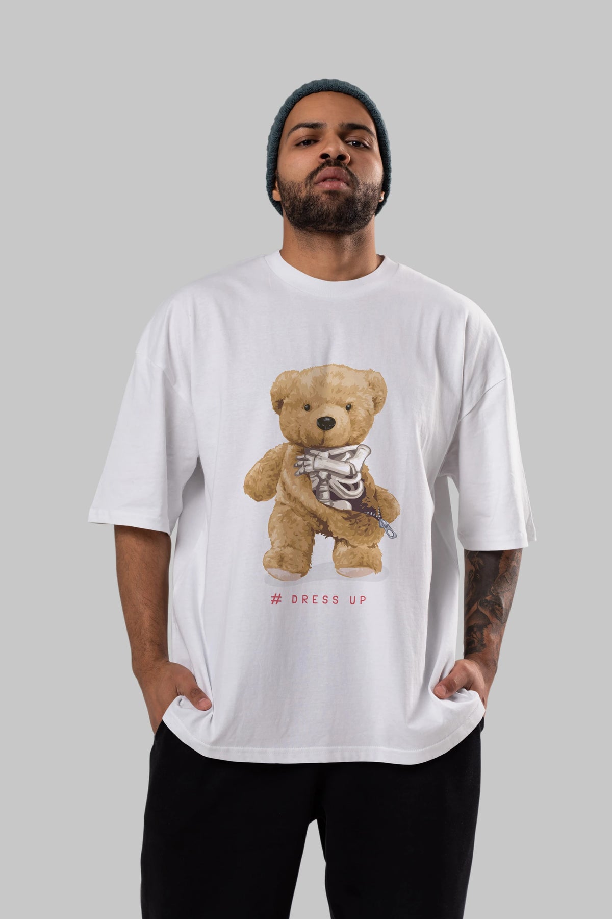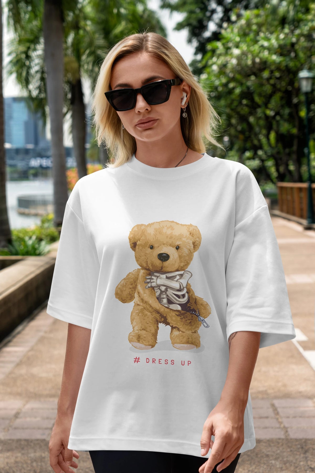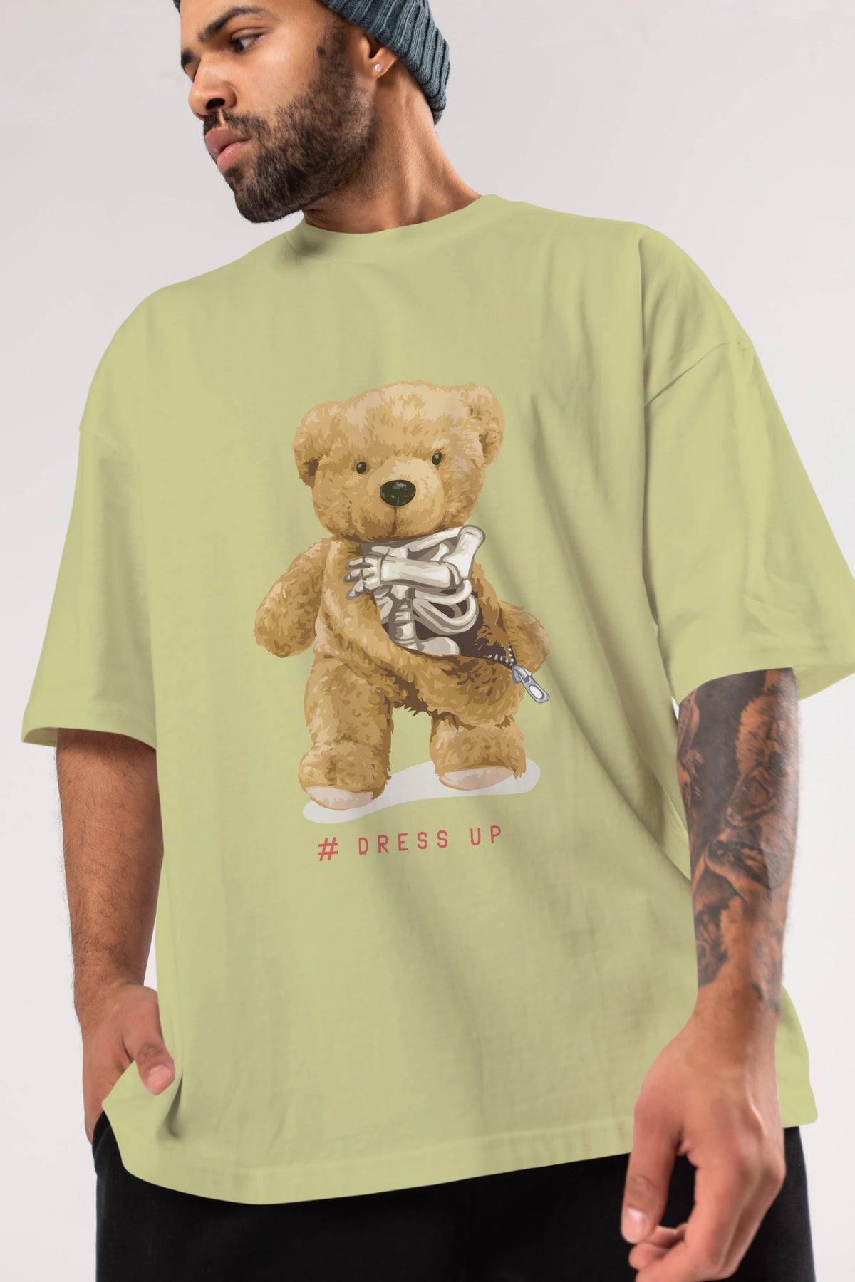 Teddy Bear Dress Up Ön Baskılı Oversize t-shirt Erkek Kadın Unisex %100 Pamuk