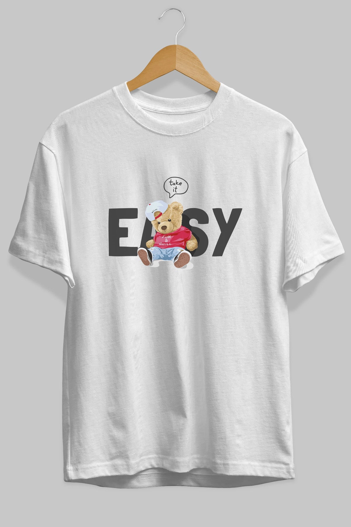 Teddy Bear Easy Ön Baskılı Oversize t-shirt Erkek Kadın Unisex %100 Pamuk