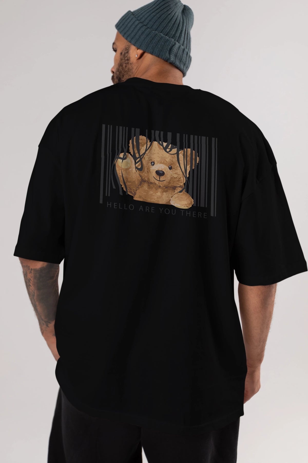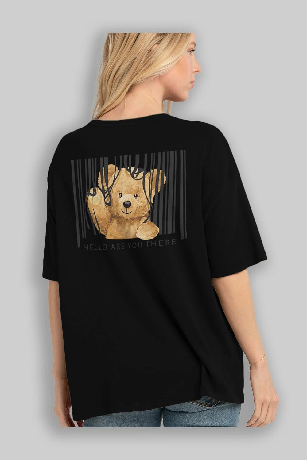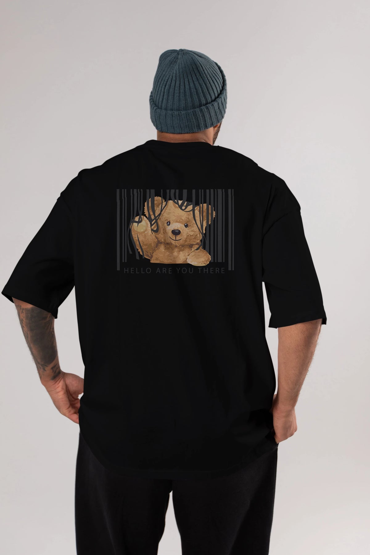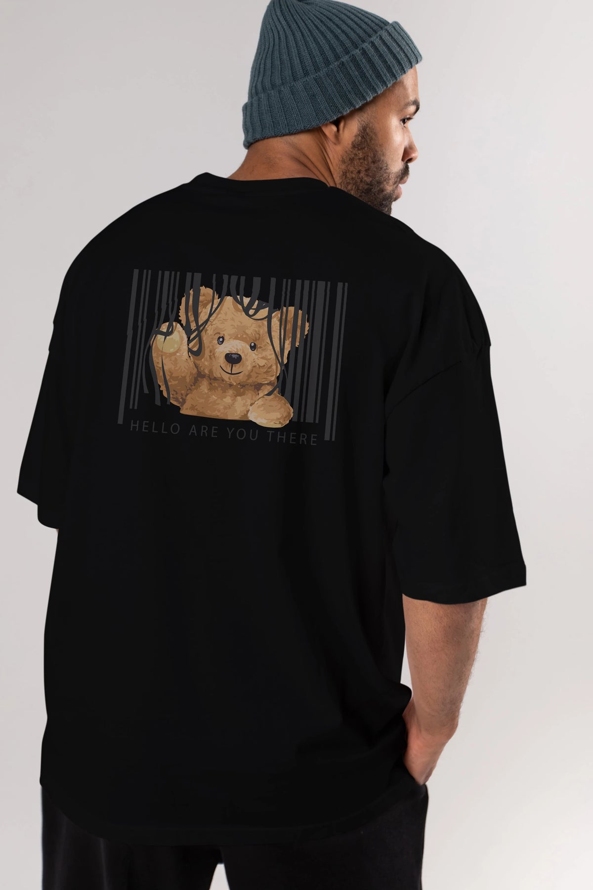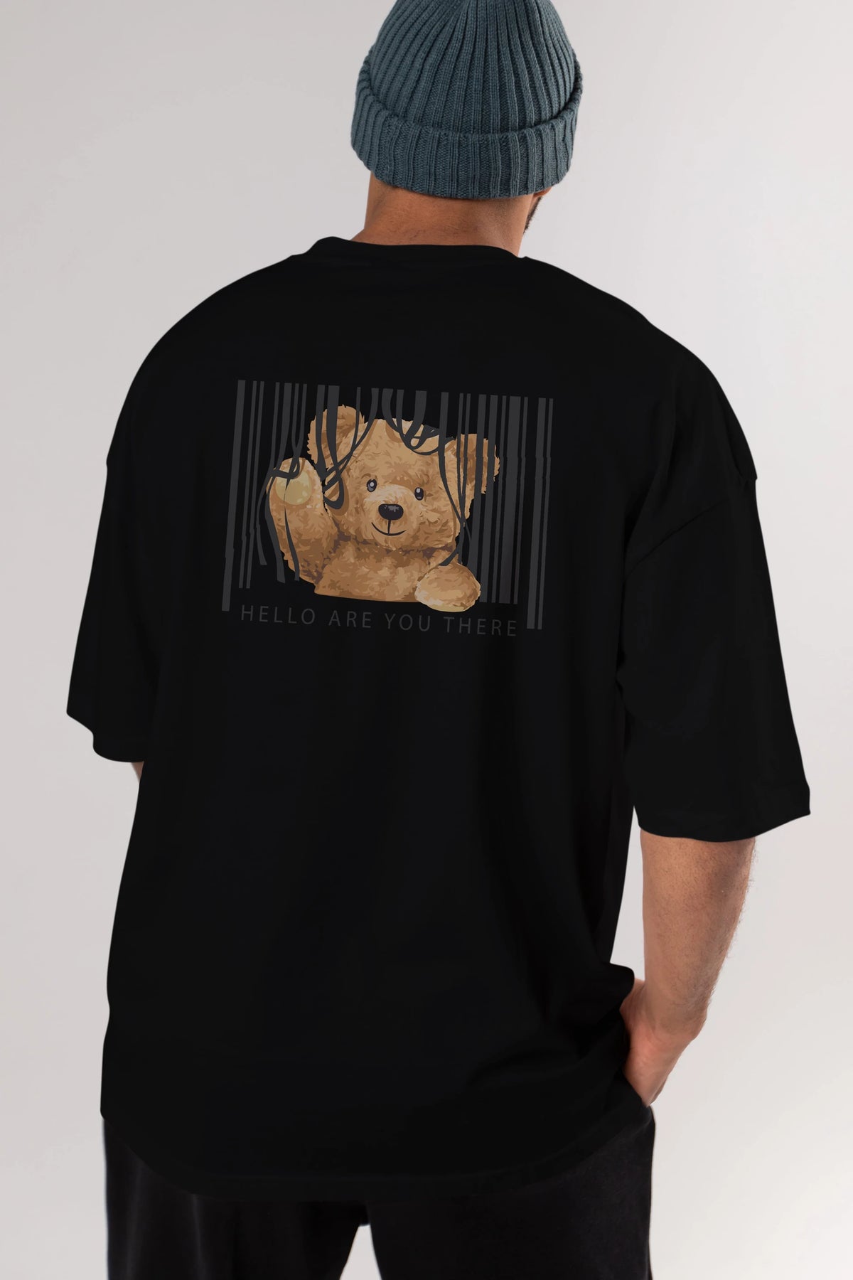 Teddy Bear Hello Arka Baskılı Oversize t-shirt Erkek Kadın Unisex %100 Pamuk