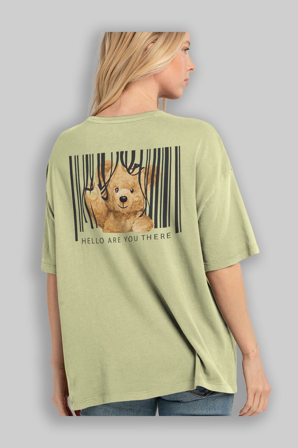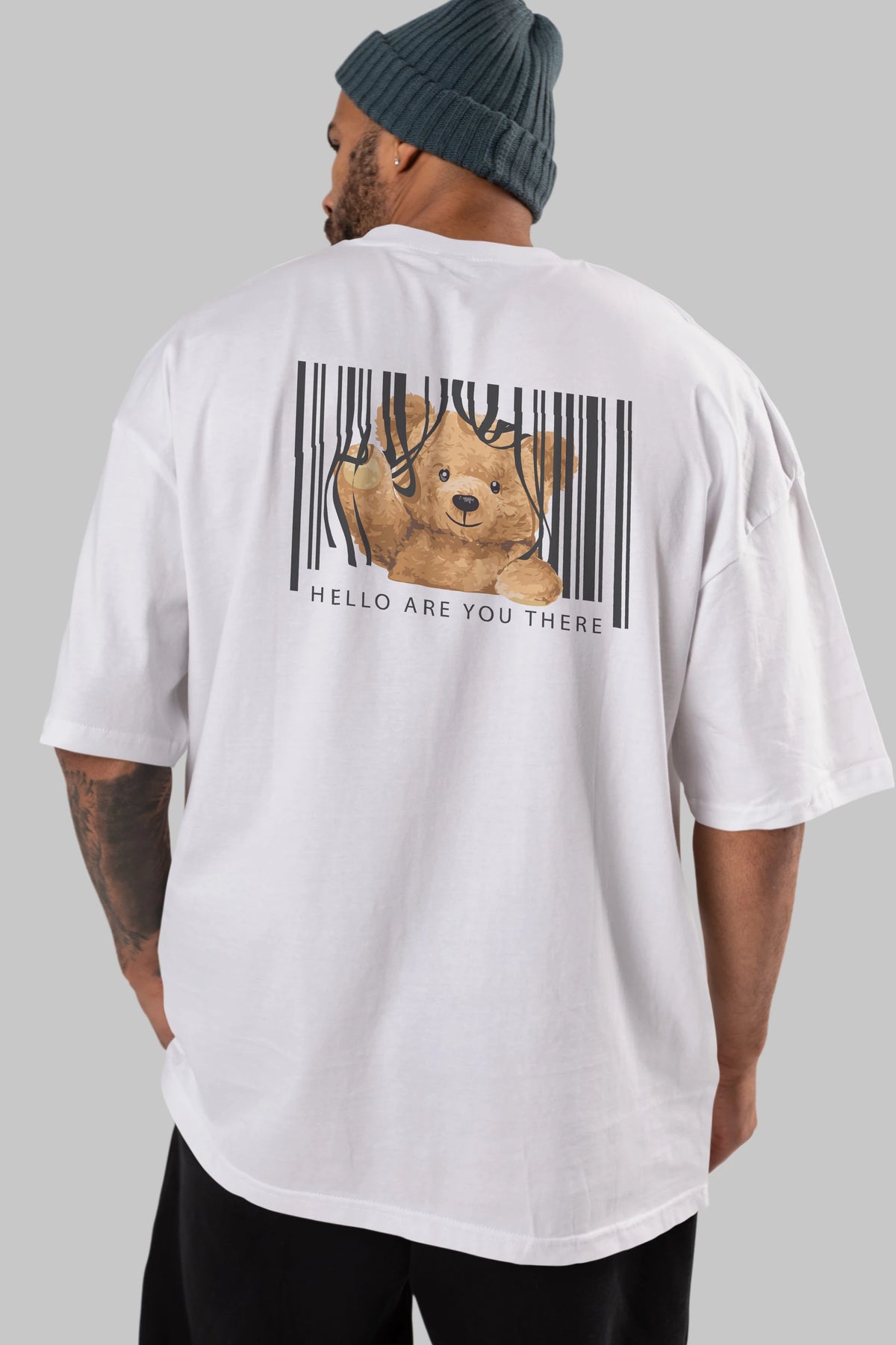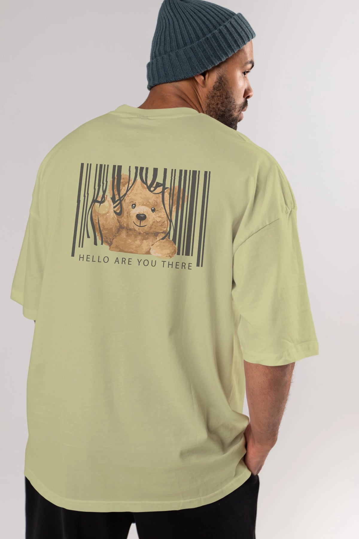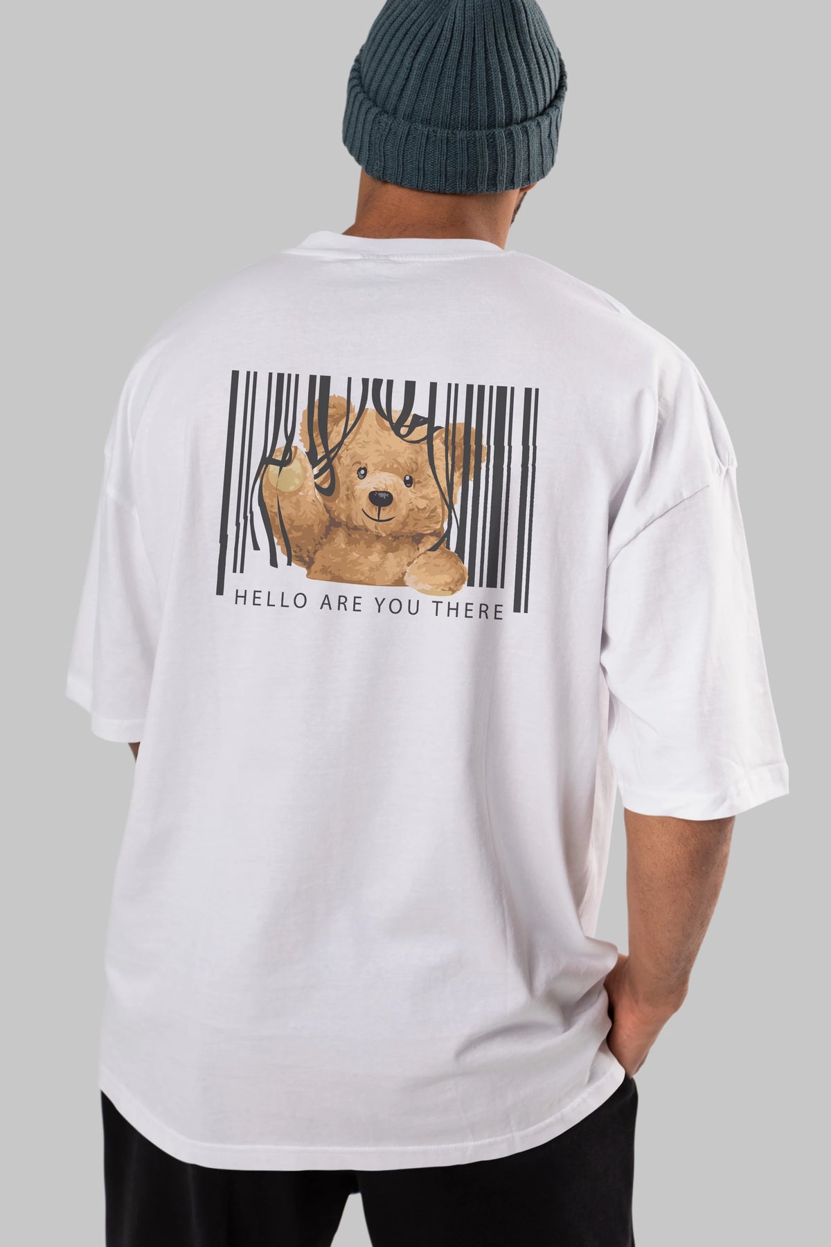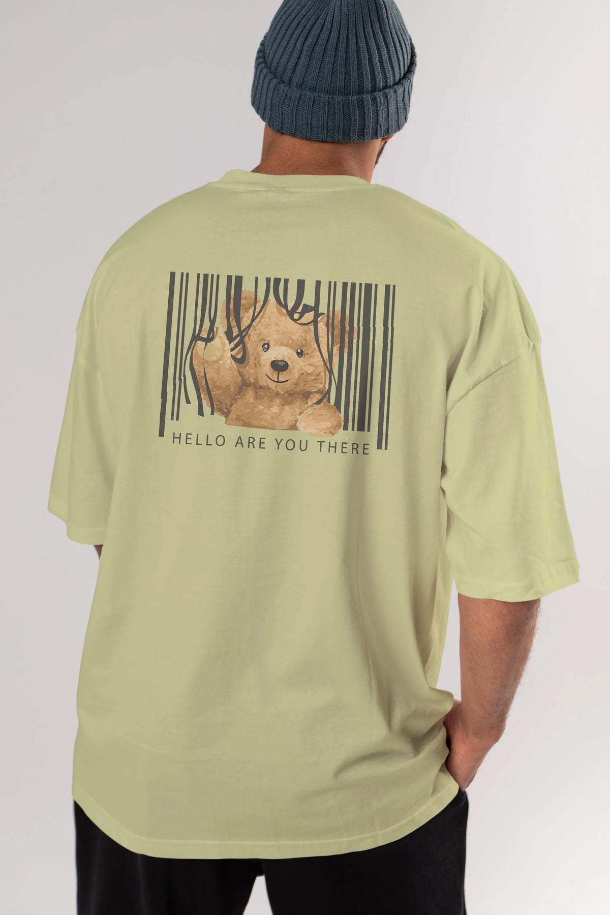 Teddy Bear Hello Arka Baskılı Oversize t-shirt Erkek Kadın Unisex %100 Pamuk