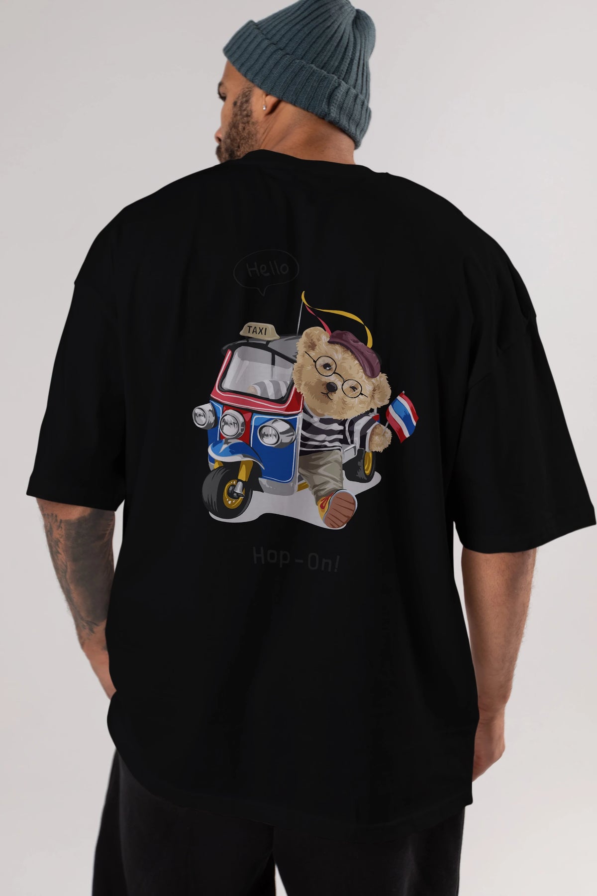 Teddy Bear Hop-On Arka Baskılı Oversize t-shirt Erkek Kadın Unisex %100 Pamuk