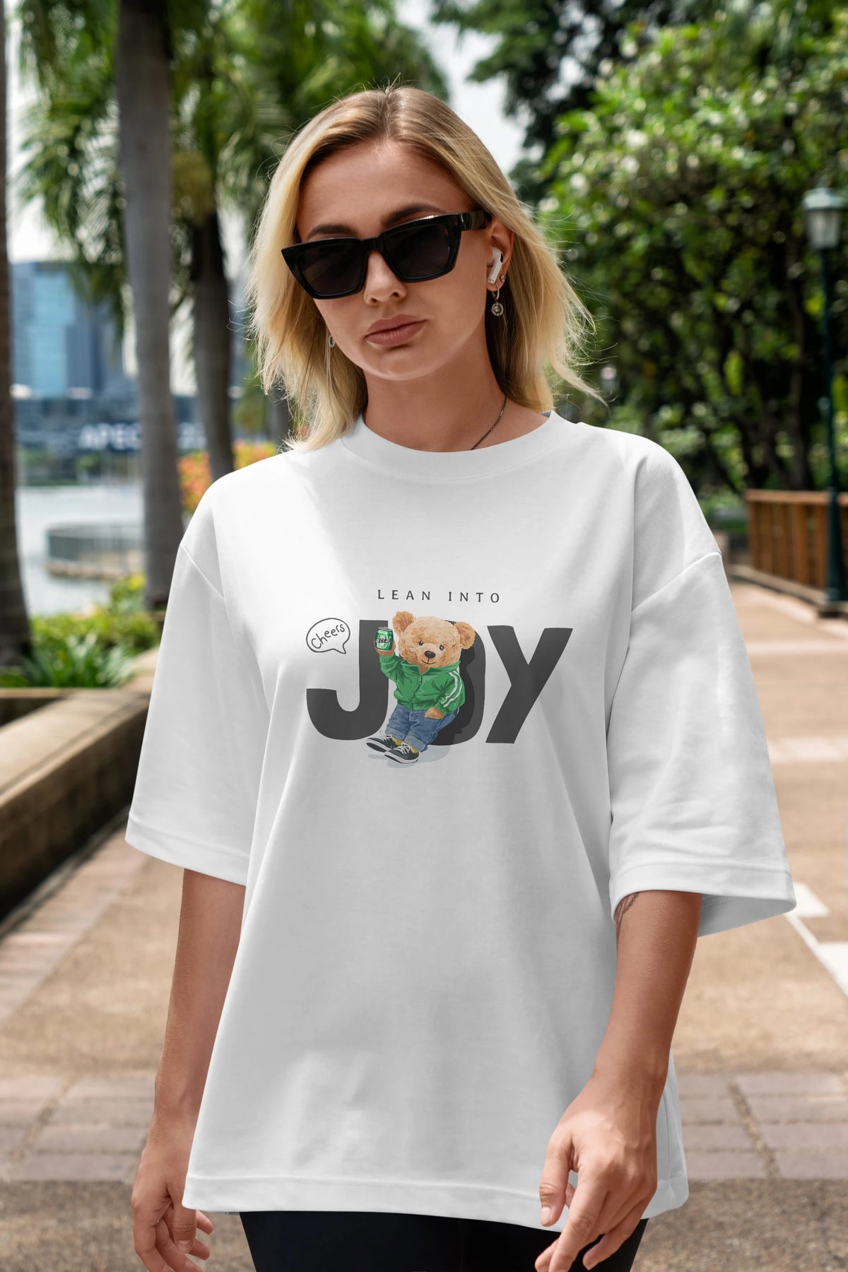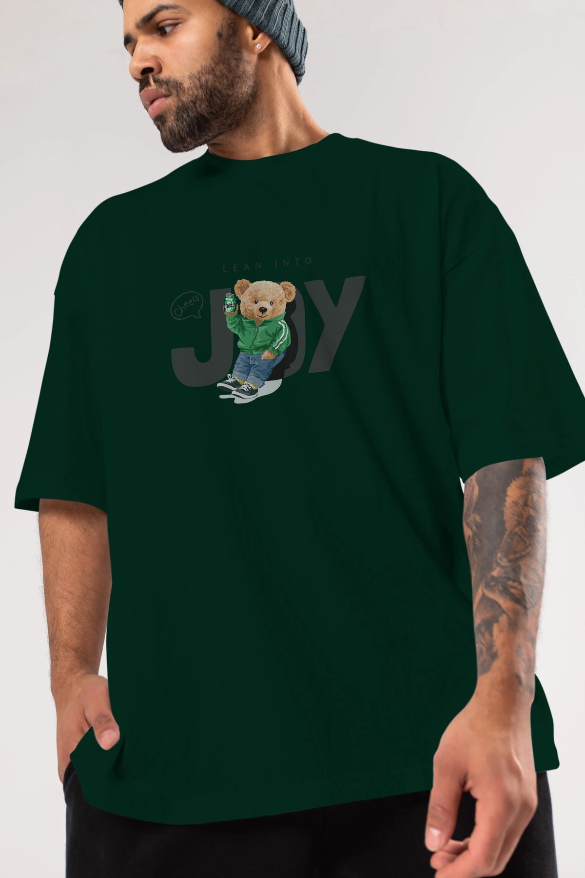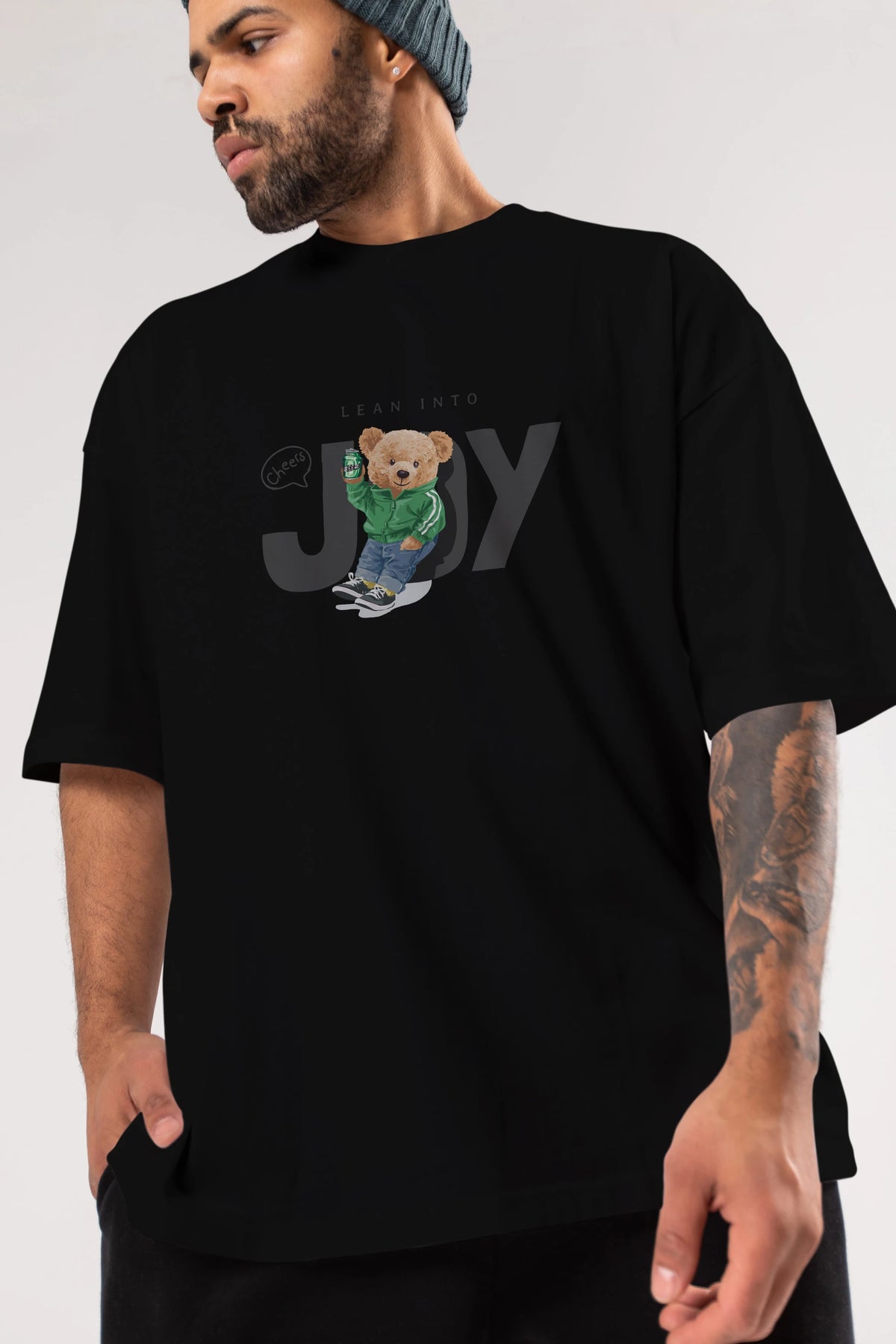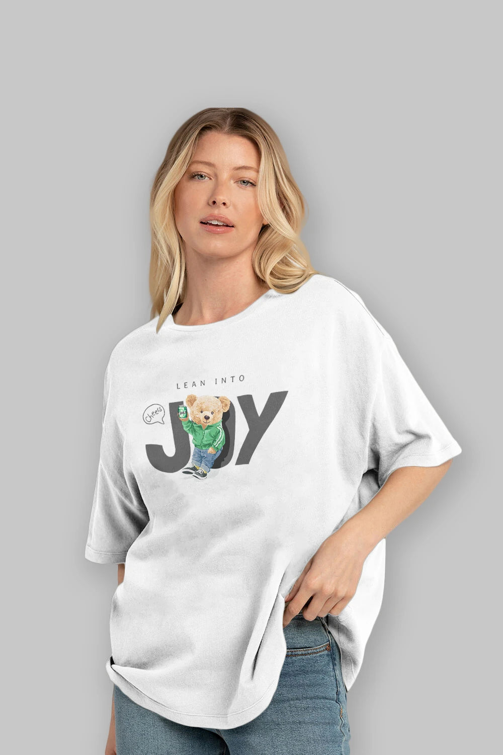 Teddy Bear Joy Ön Baskılı Oversize t-shirt Erkek Kadın Unisex %100 Pamuk