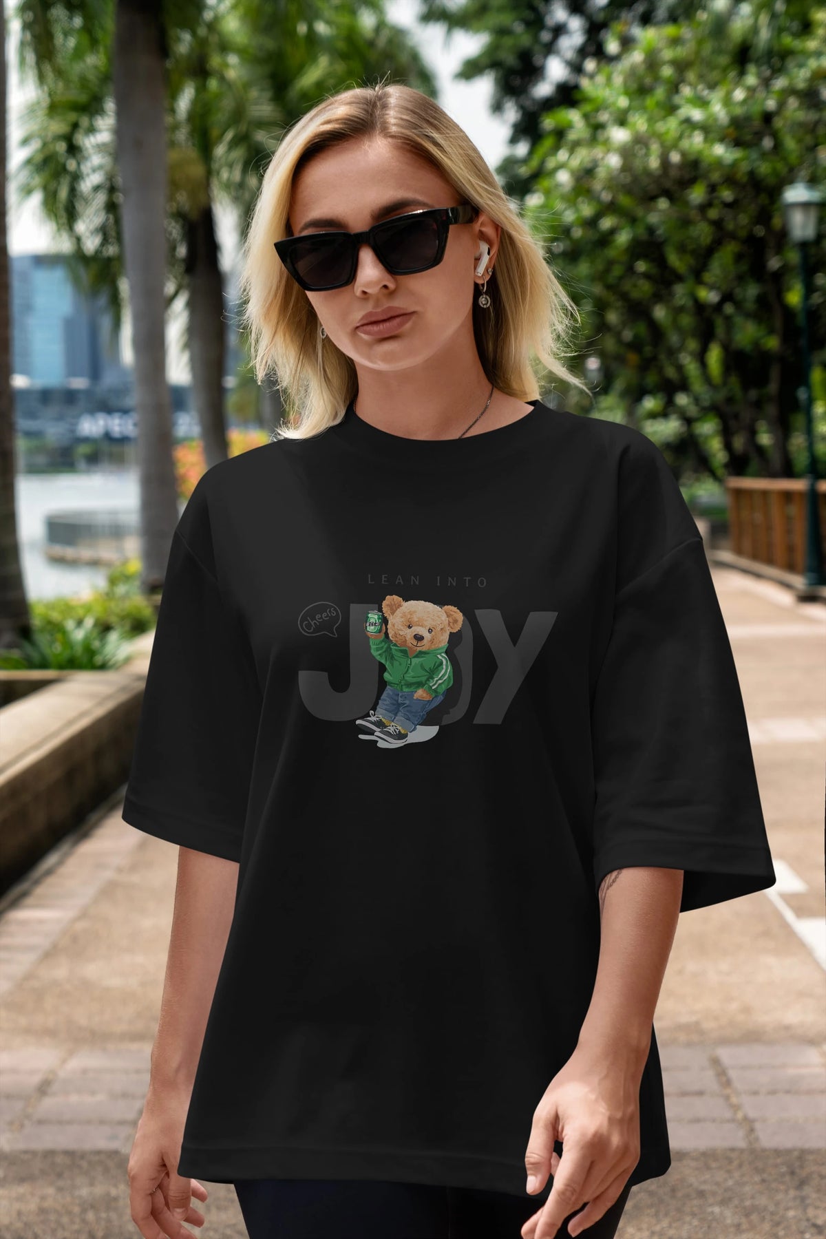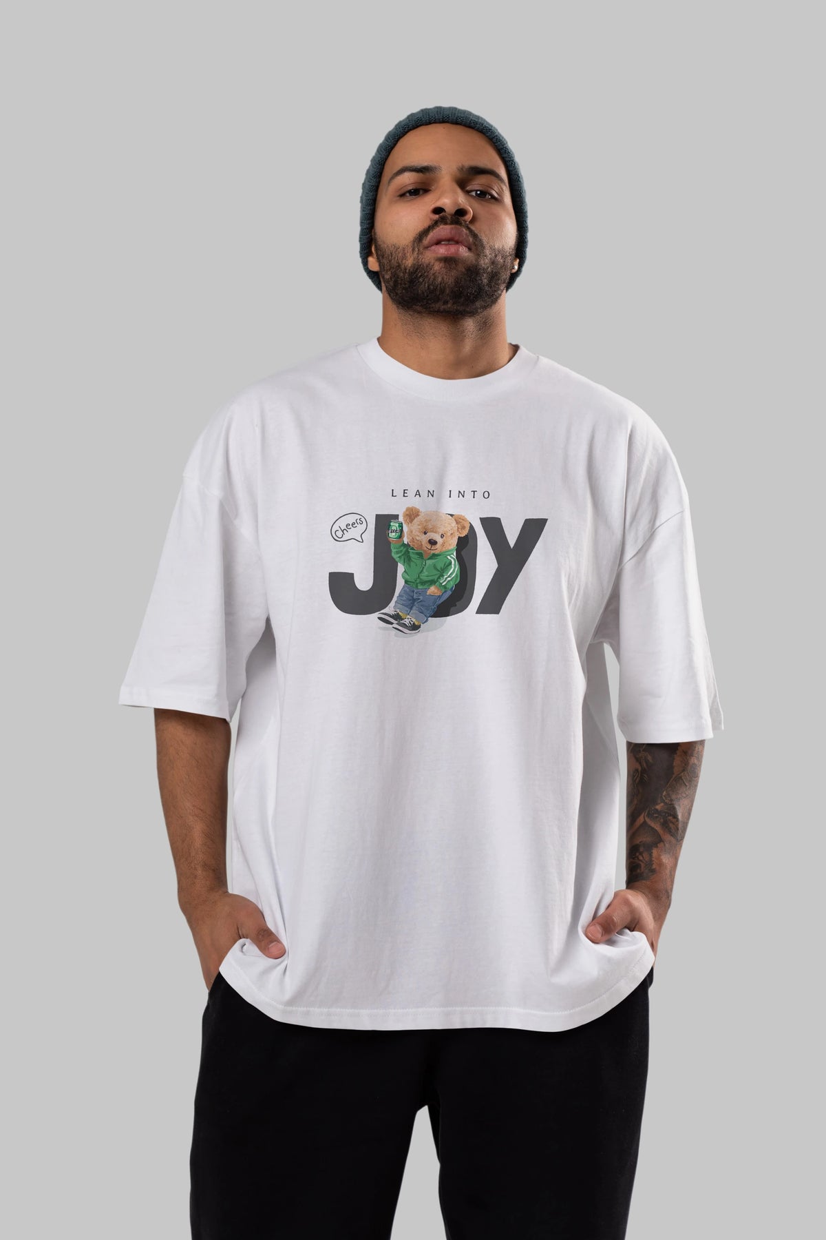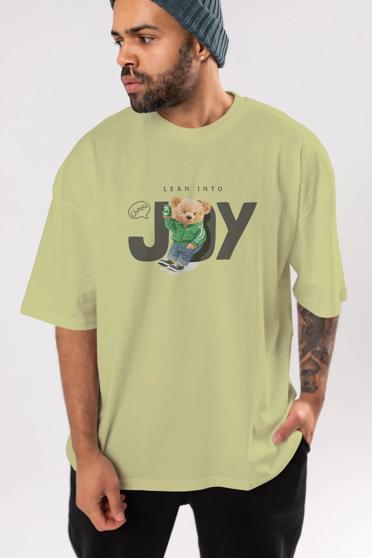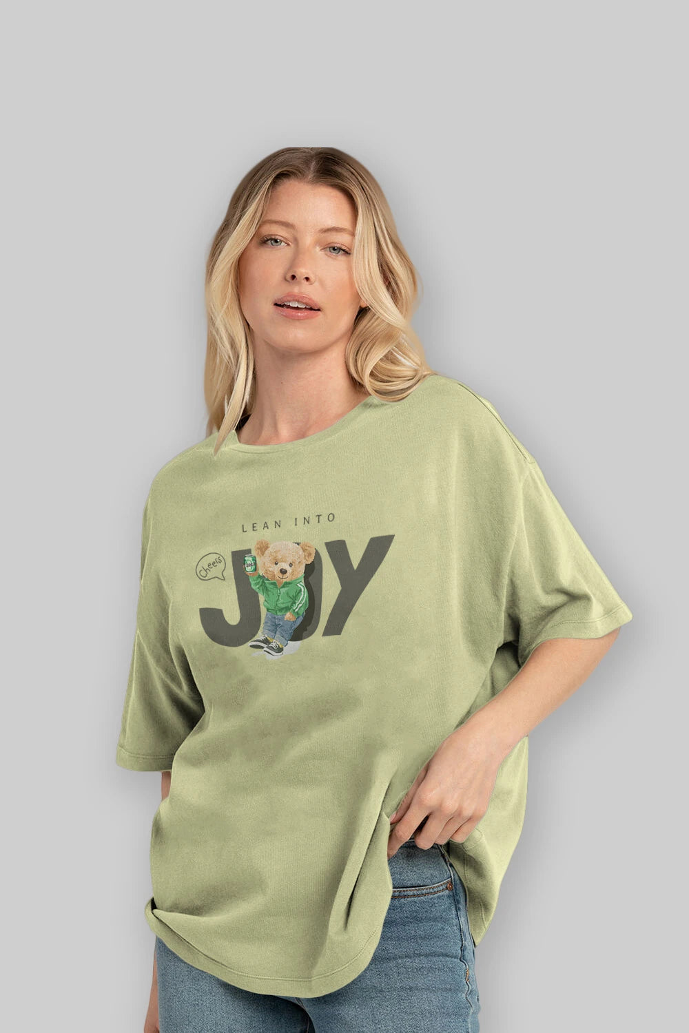 Teddy Bear Joy Ön Baskılı Oversize t-shirt Erkek Kadın Unisex %100 Pamuk