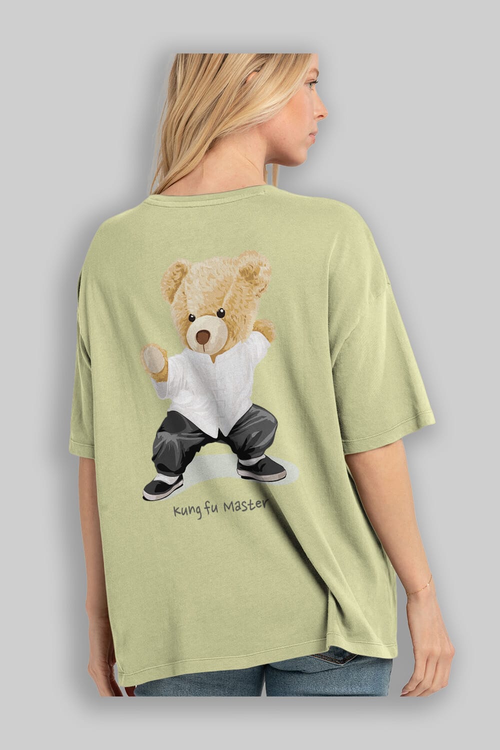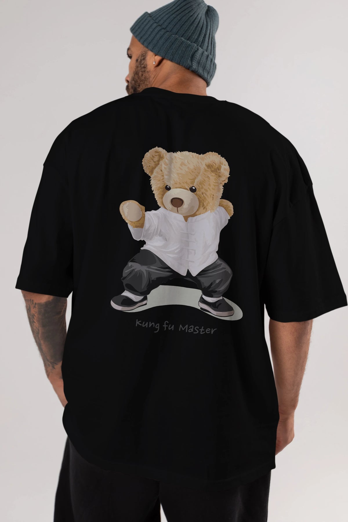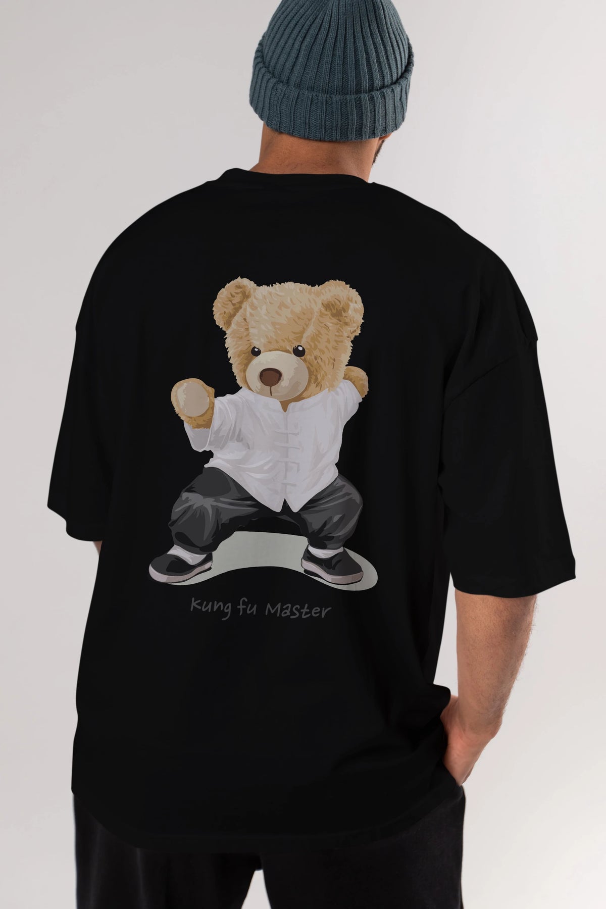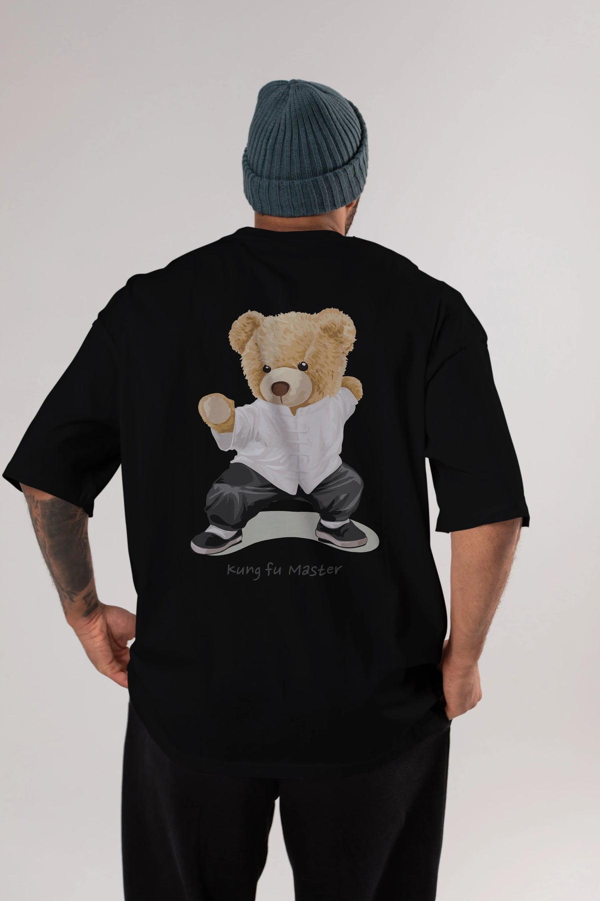 Teddy Bear Kung Fu Master Arka Baskılı Oversize t-shirt Erkek Kadın Unisex %100 Pamuk