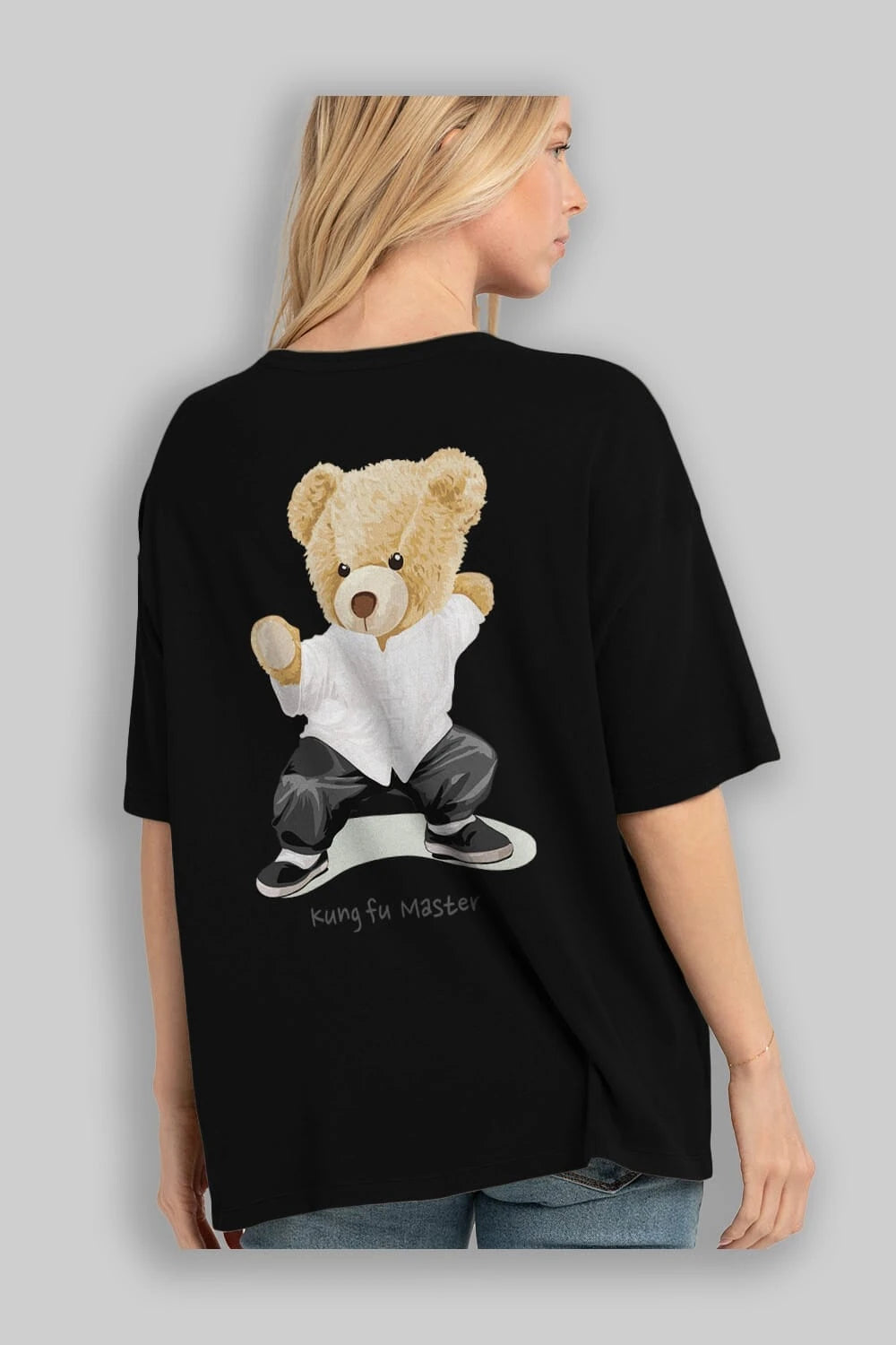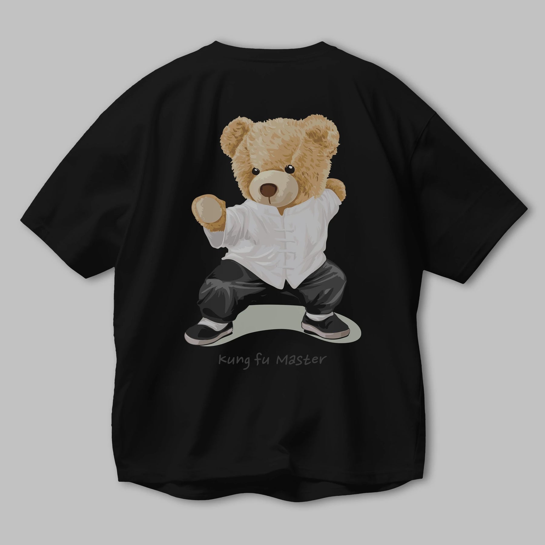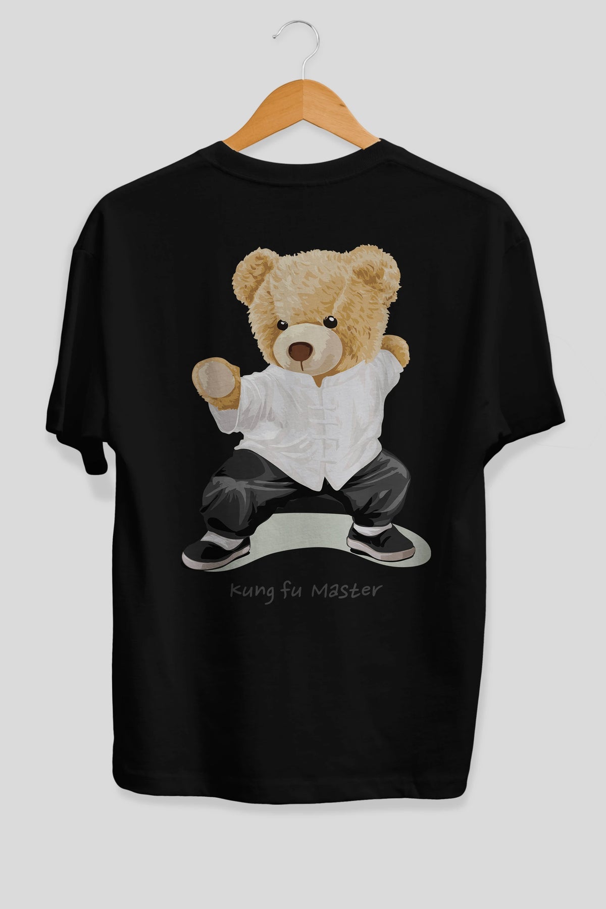 Teddy Bear Kung Fu Master Arka Baskılı Oversize t-shirt Erkek Kadın Unisex %100 Pamuk