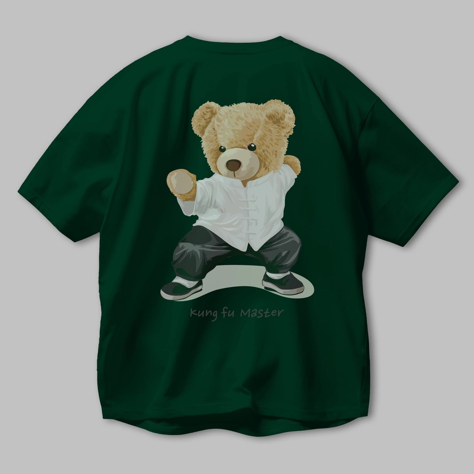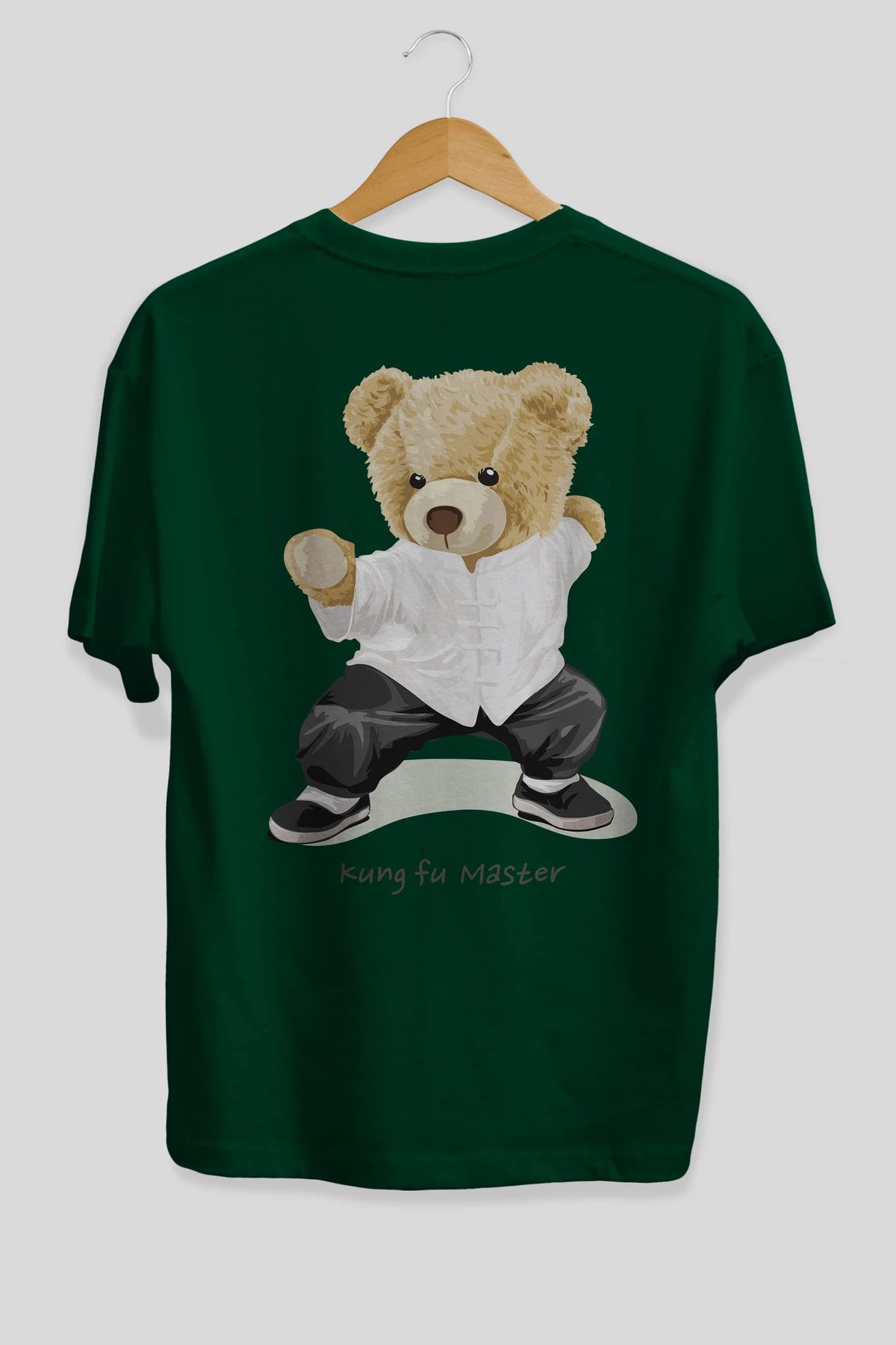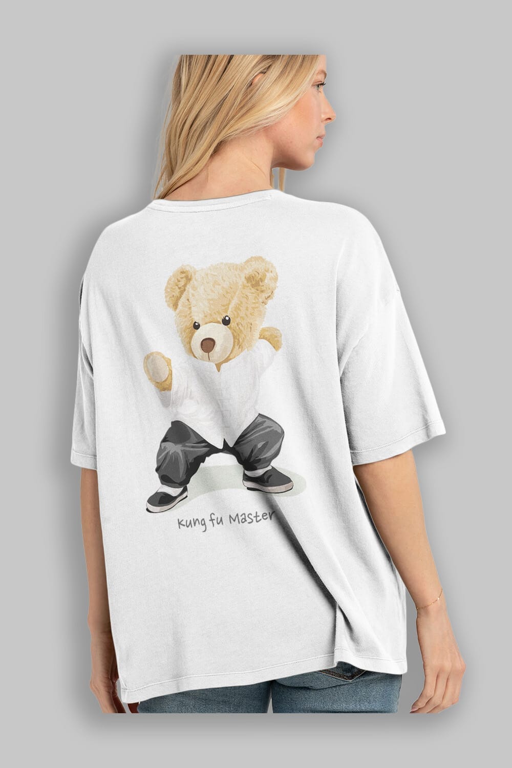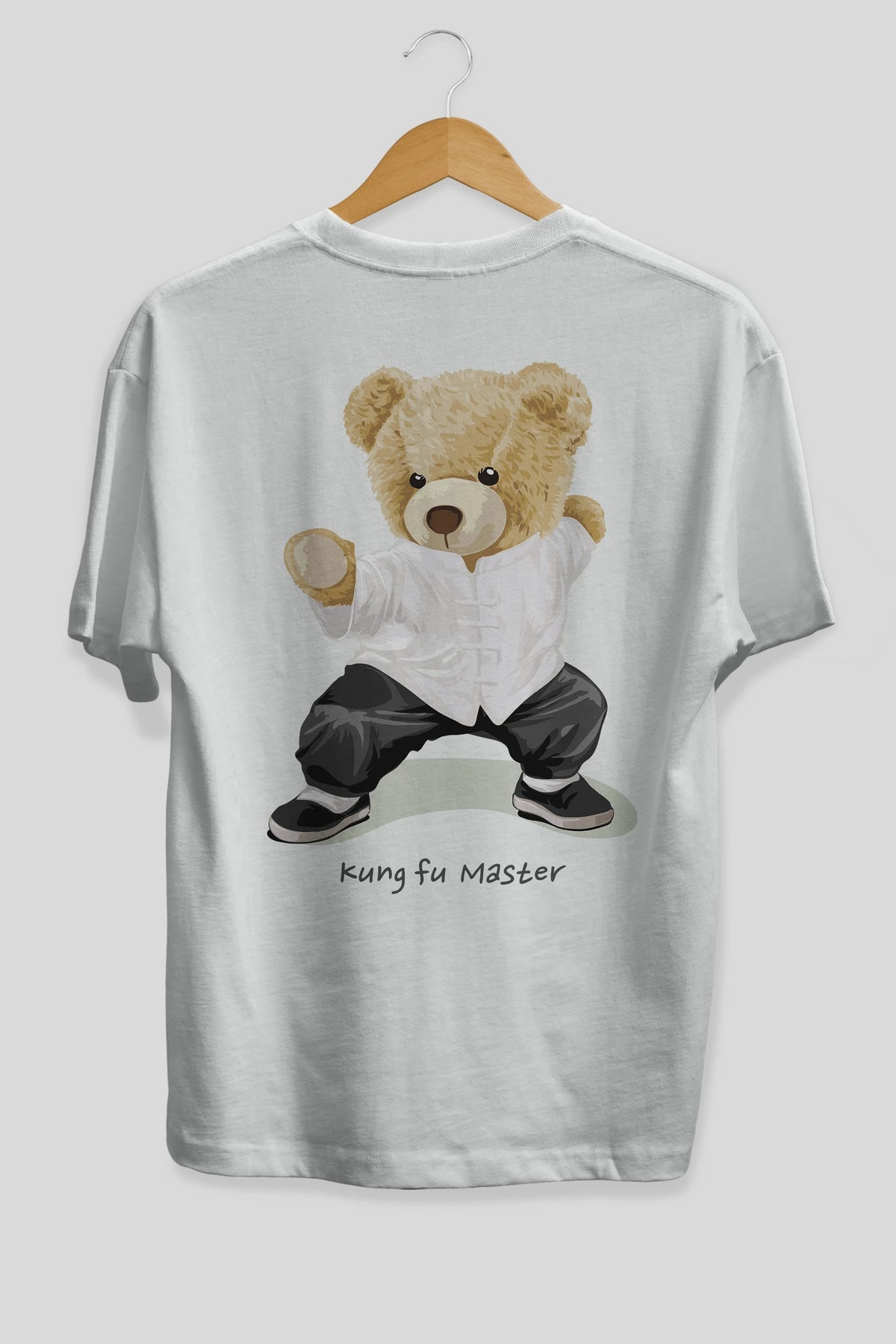 Teddy Bear Kung Fu Master Arka Baskılı Oversize t-shirt Erkek Kadın Unisex %100 Pamuk