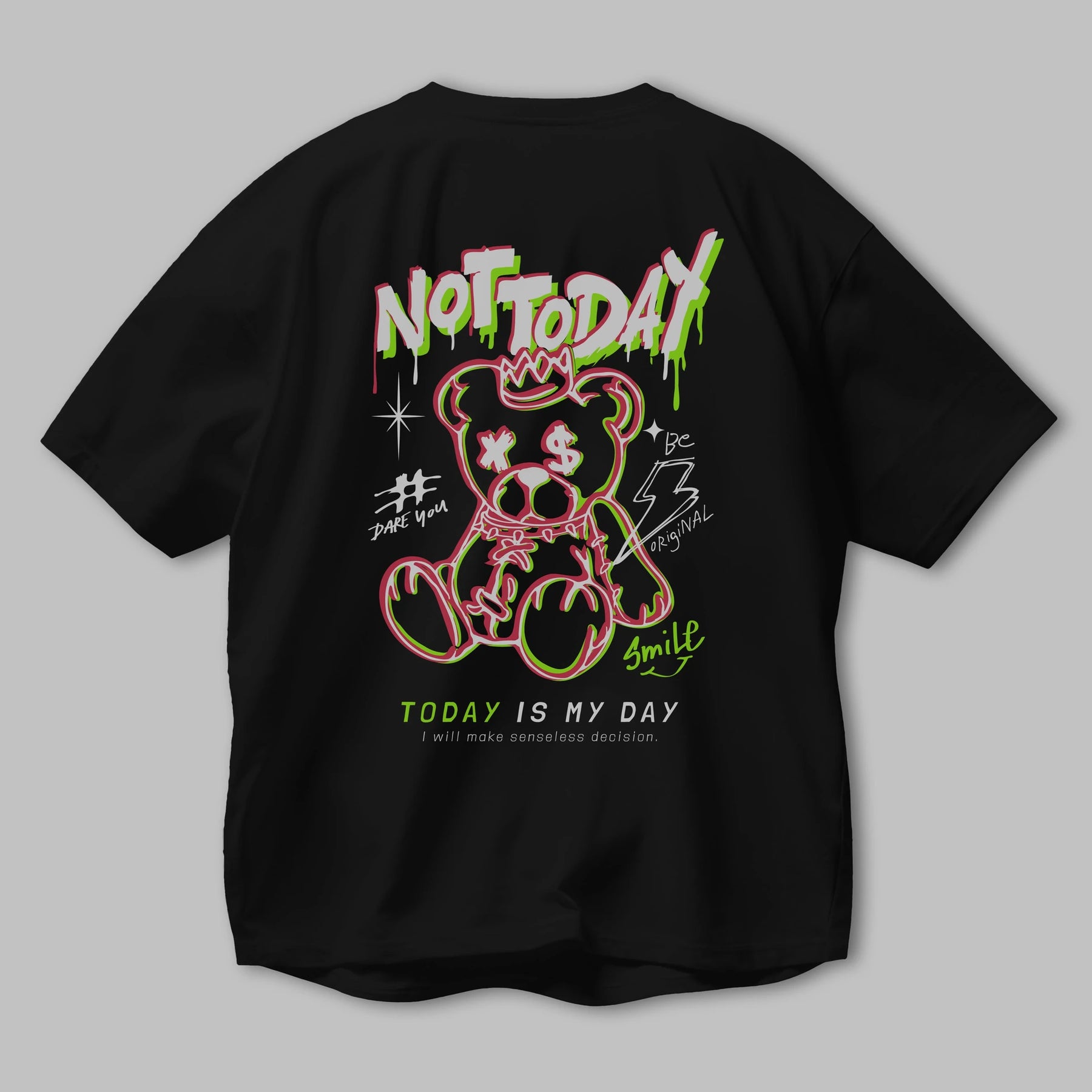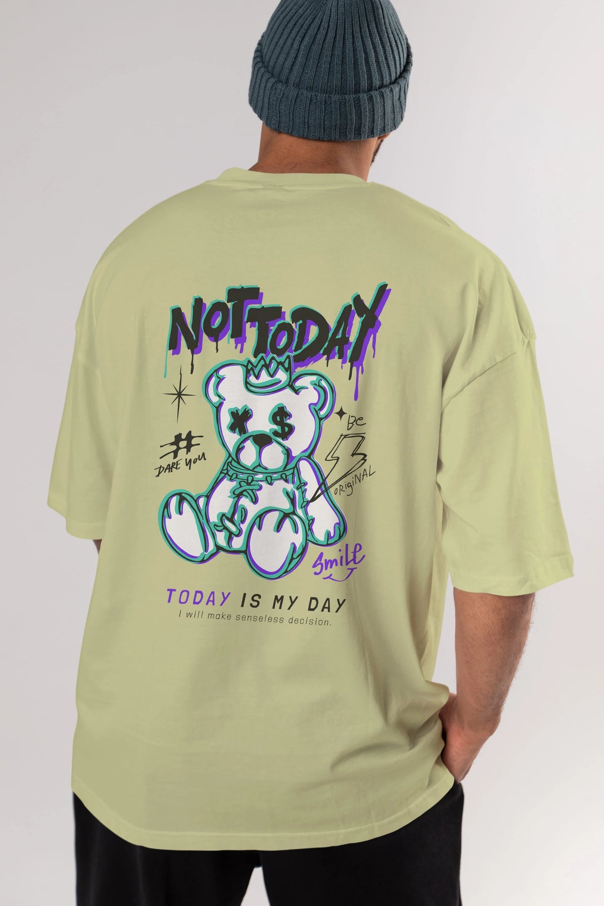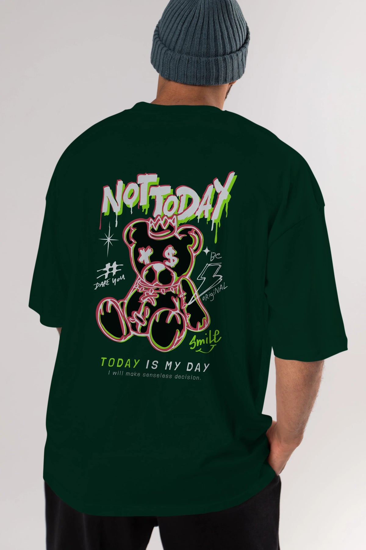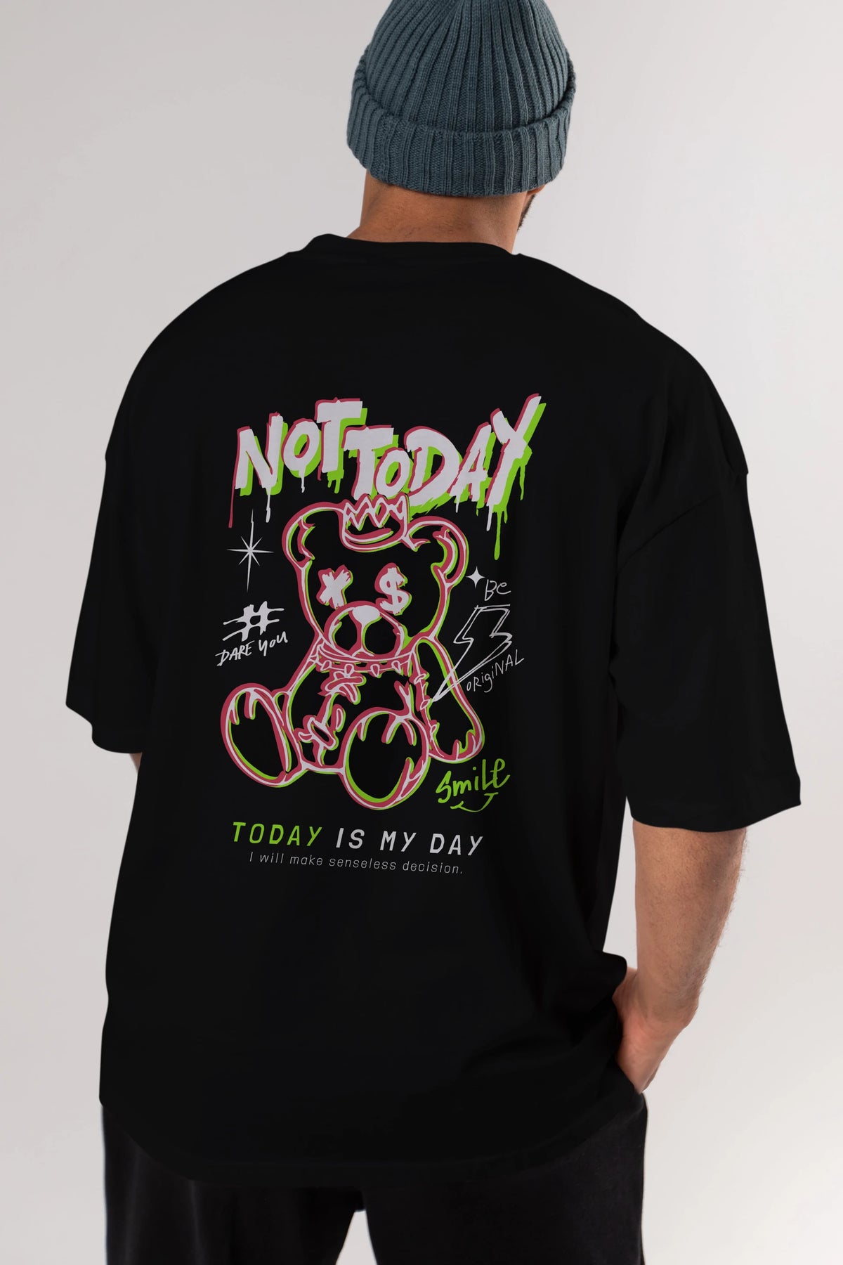 Teddy Bear Not Today Arka Baskılı Oversize t-shirt Erkek Kadın Unisex