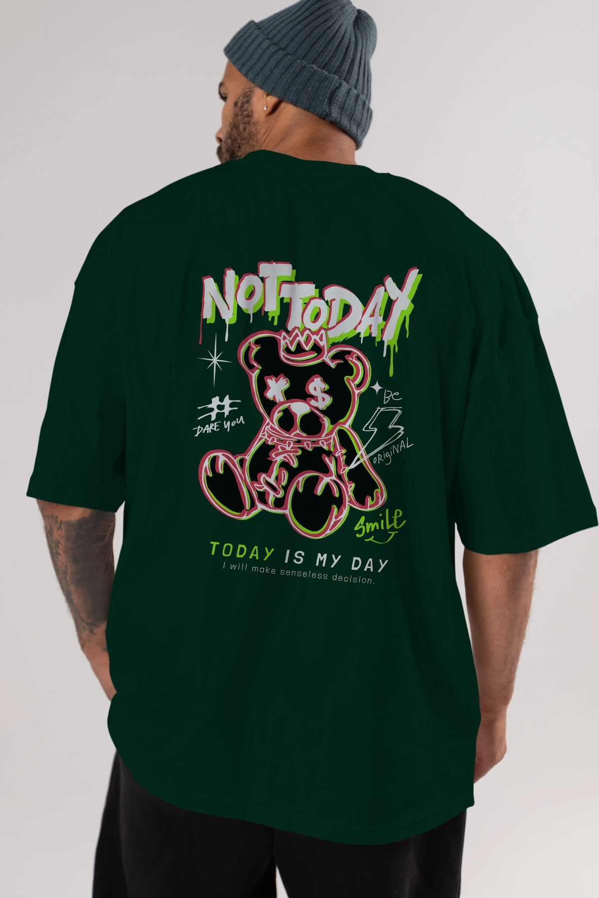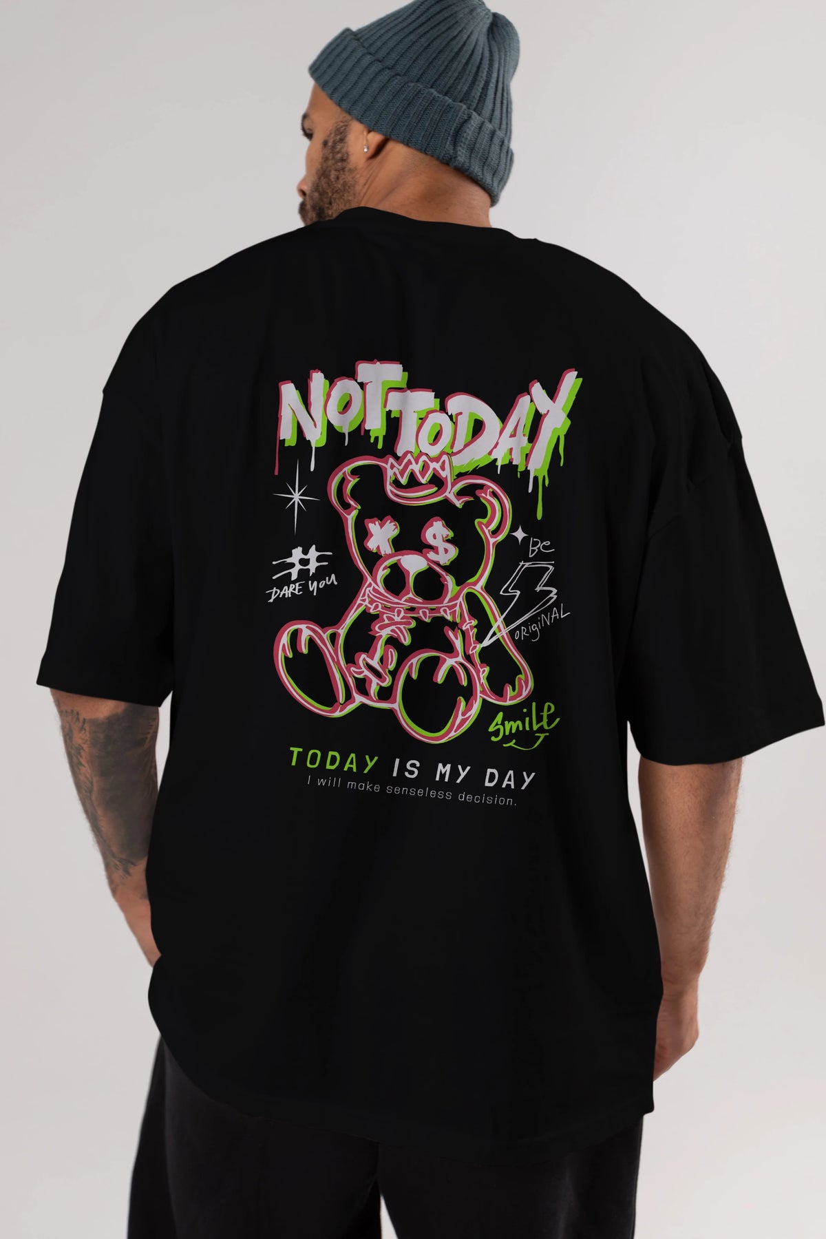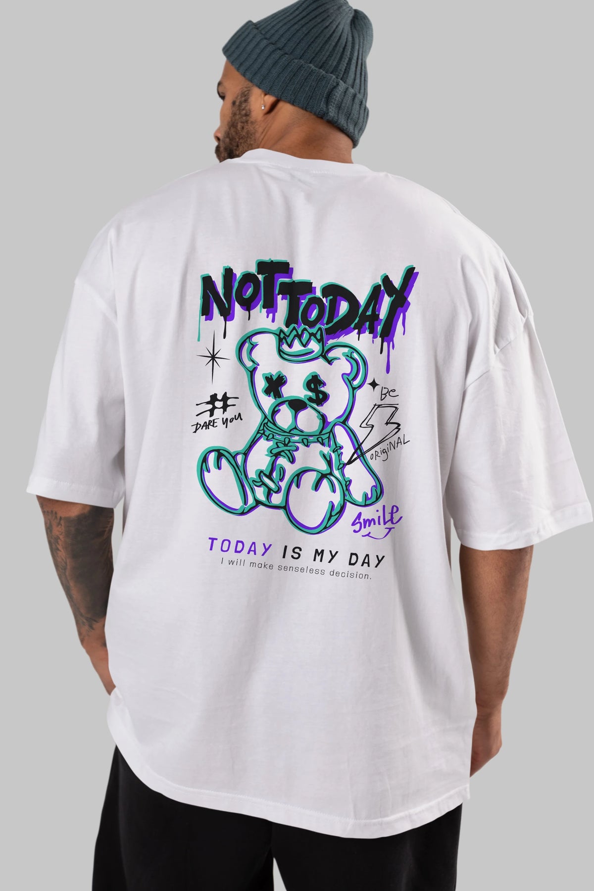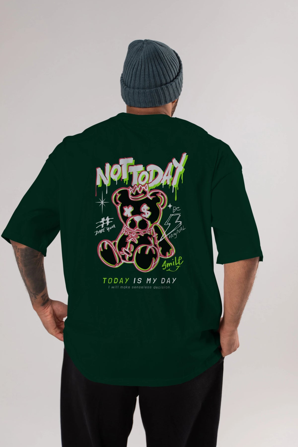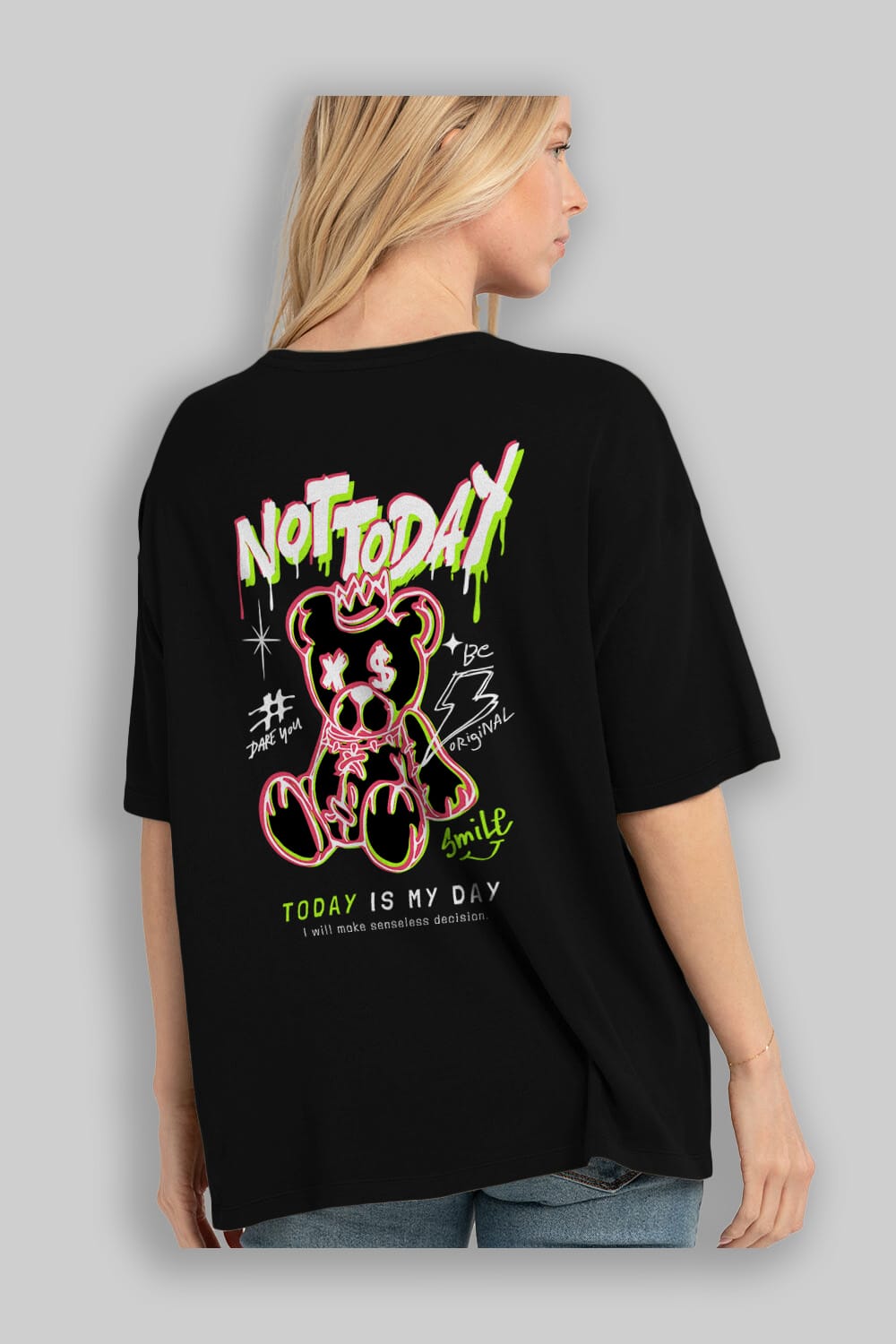 Teddy Bear Not Today Arka Baskılı Oversize t-shirt Erkek Kadın Unisex