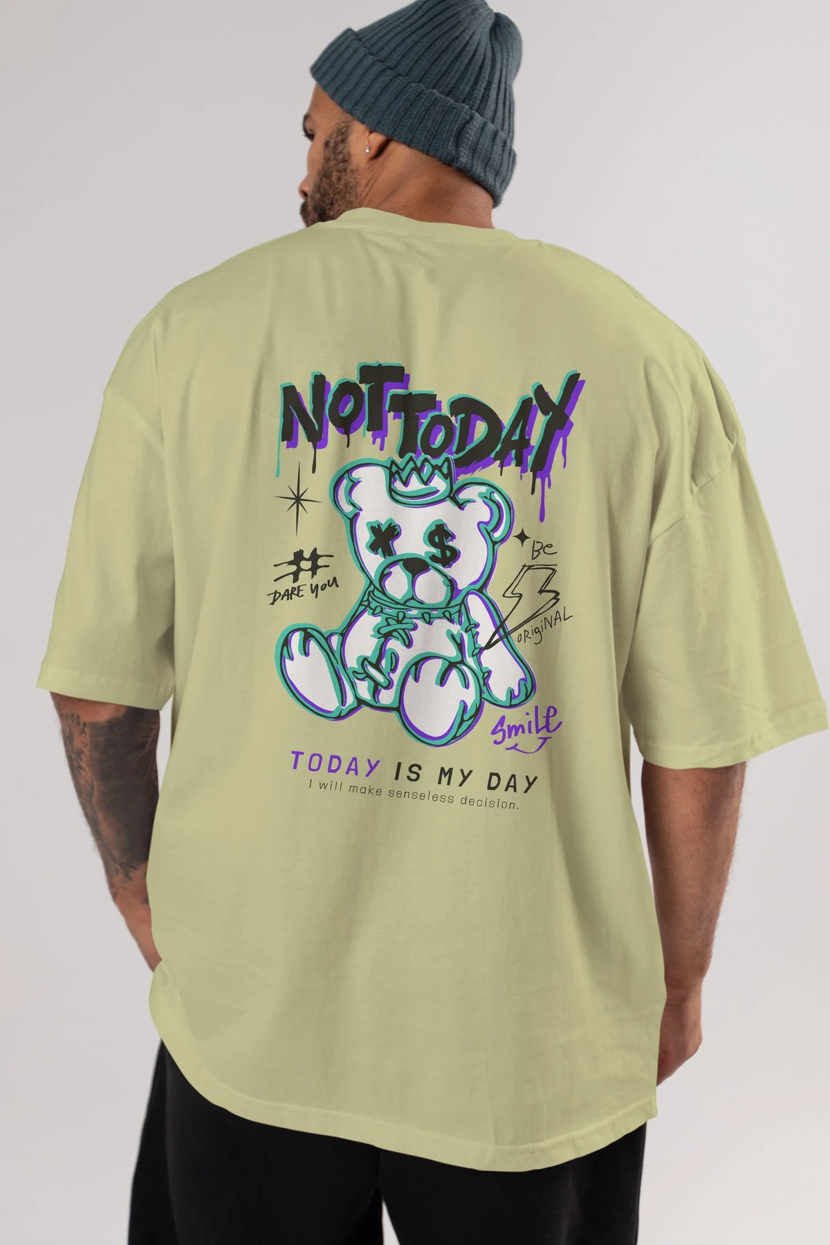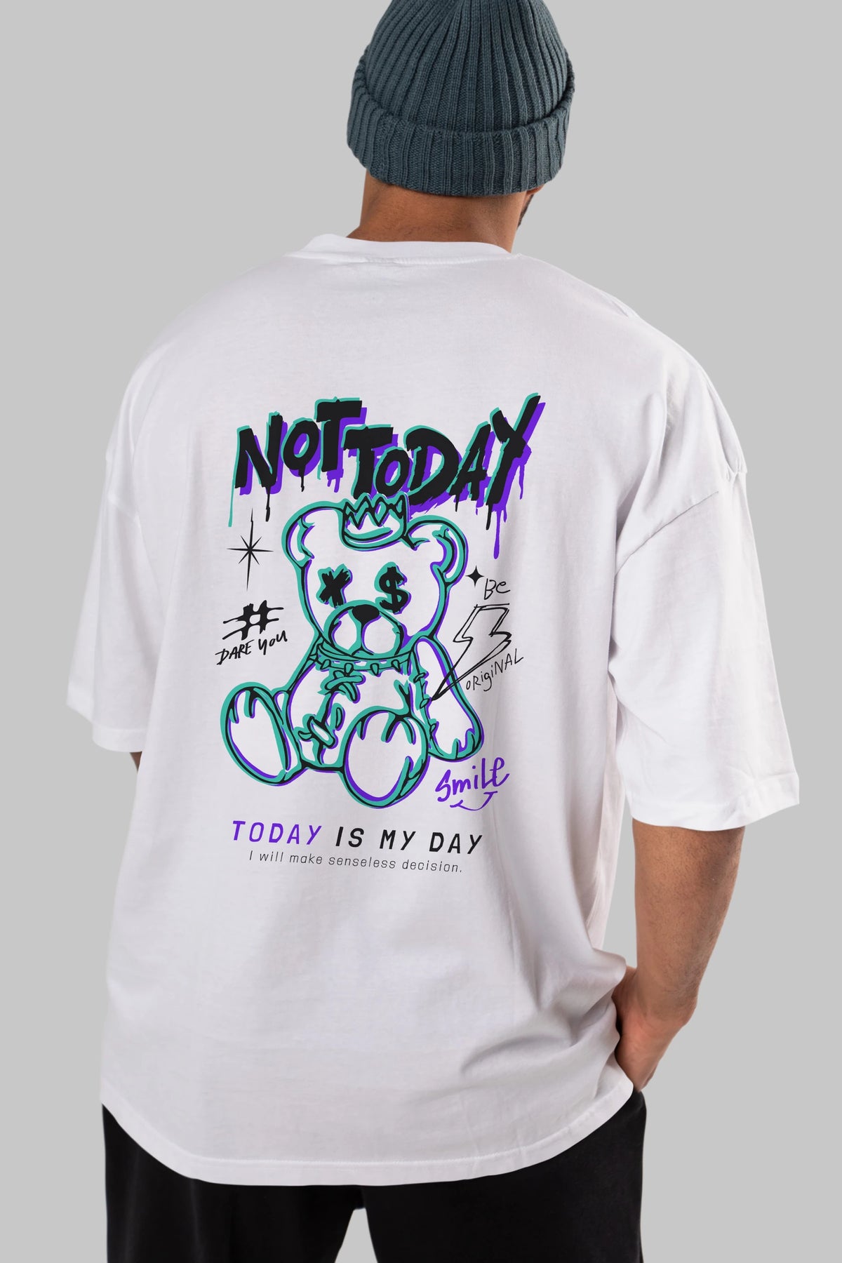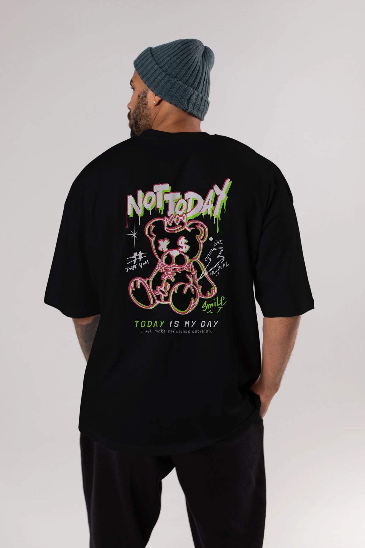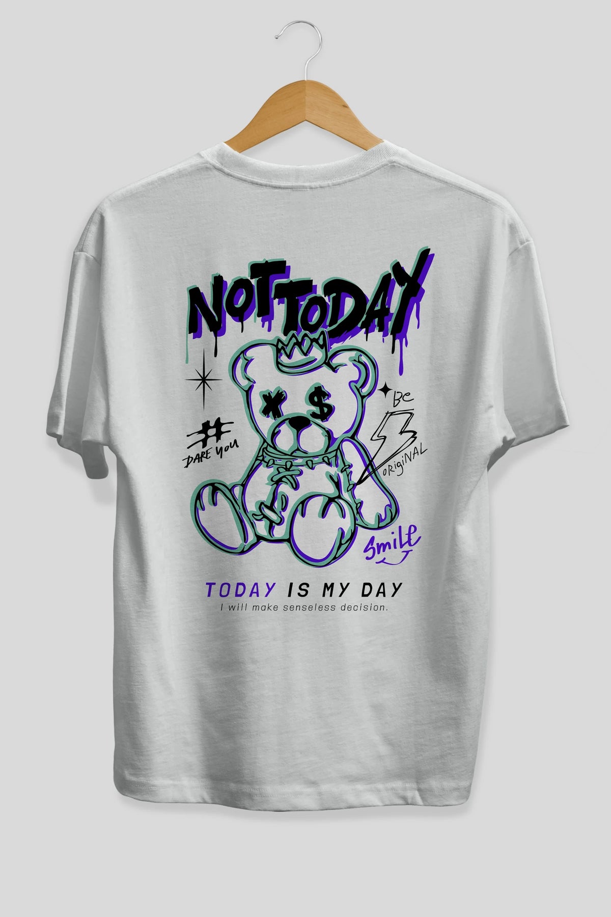 Teddy Bear Not Today Arka Baskılı Oversize t-shirt Erkek Kadın Unisex