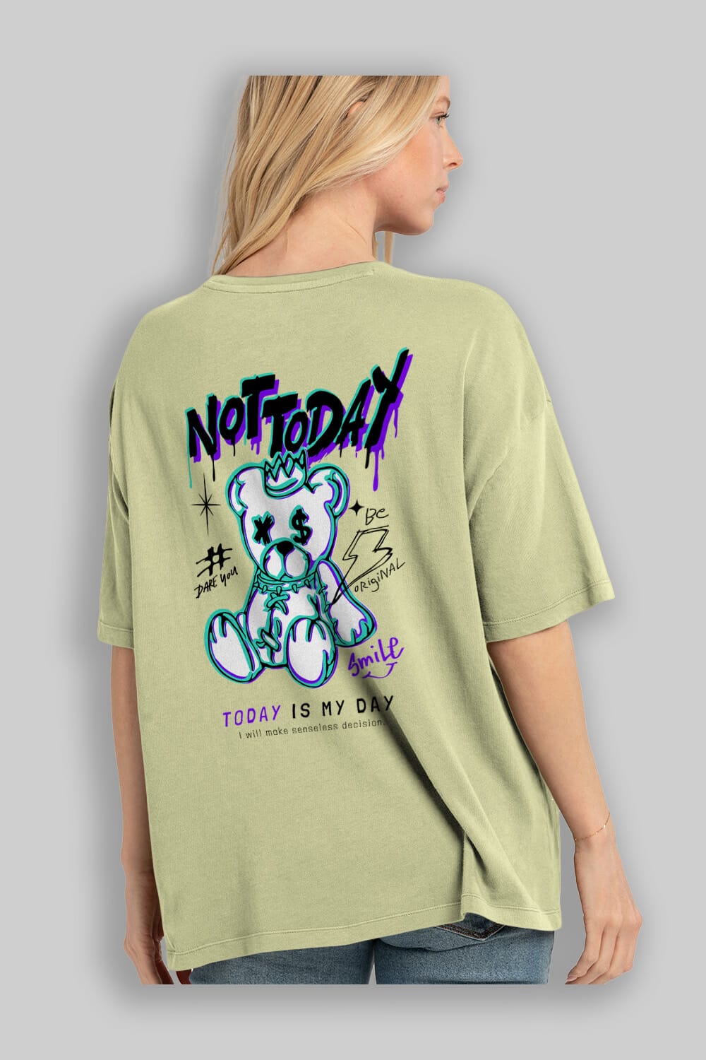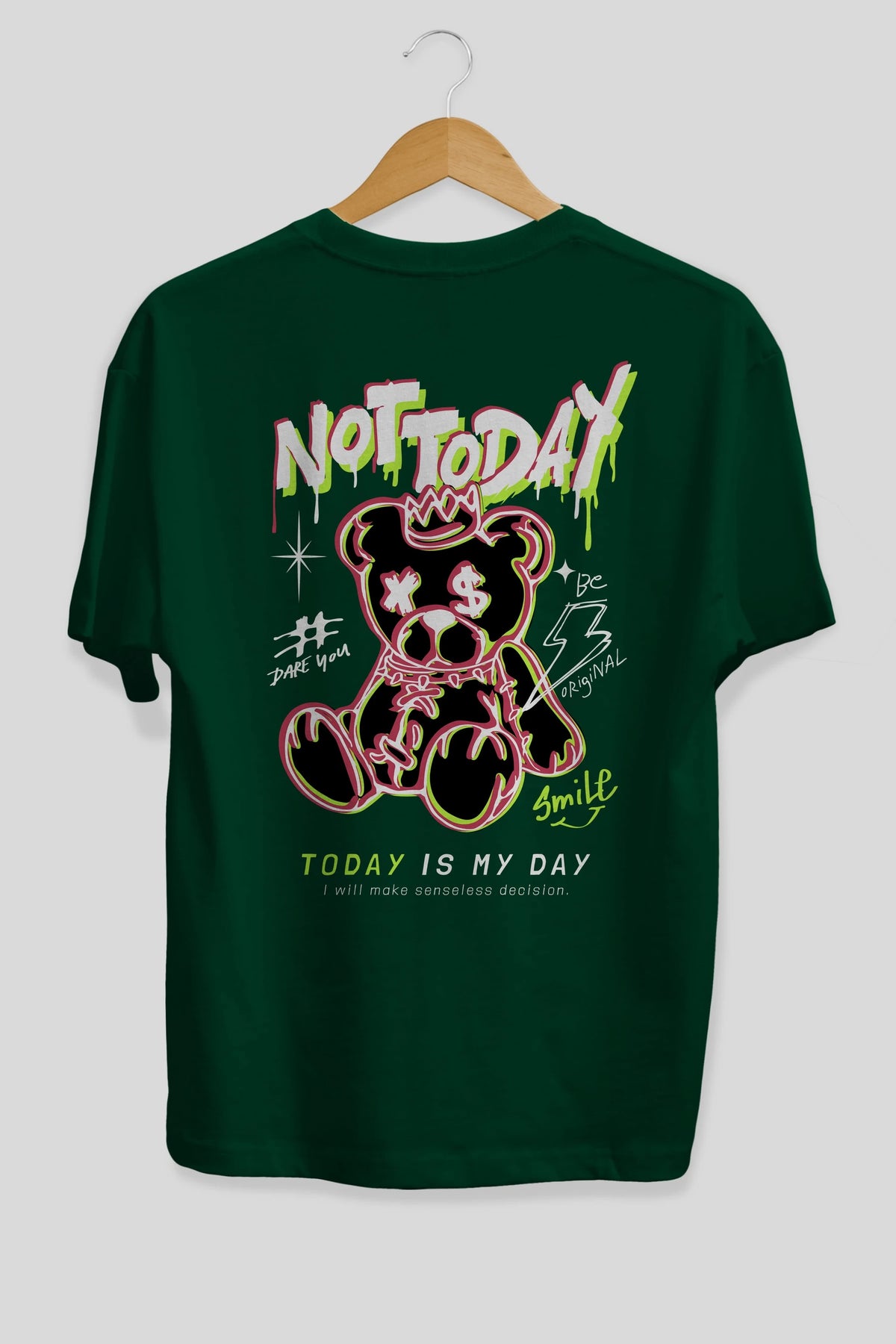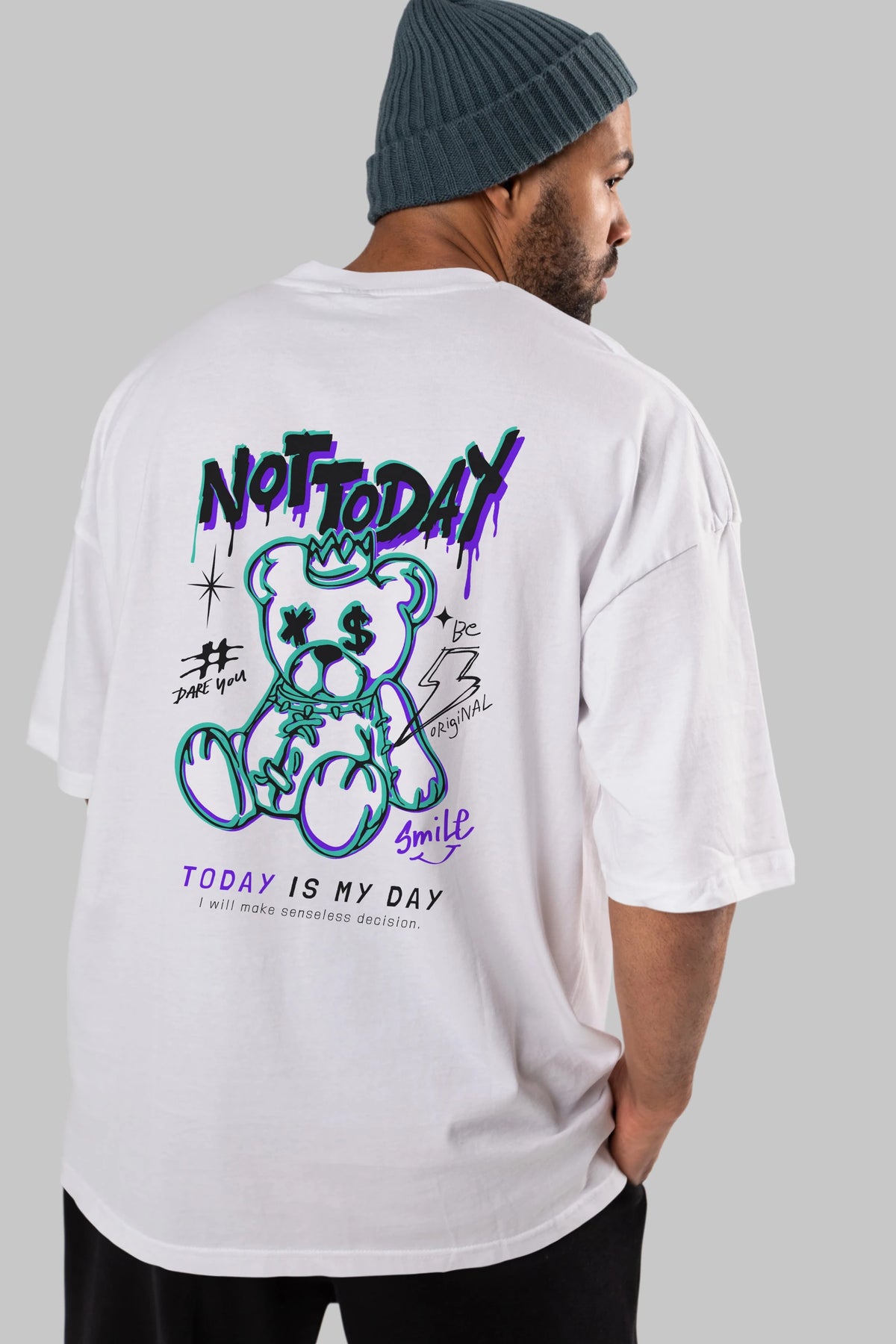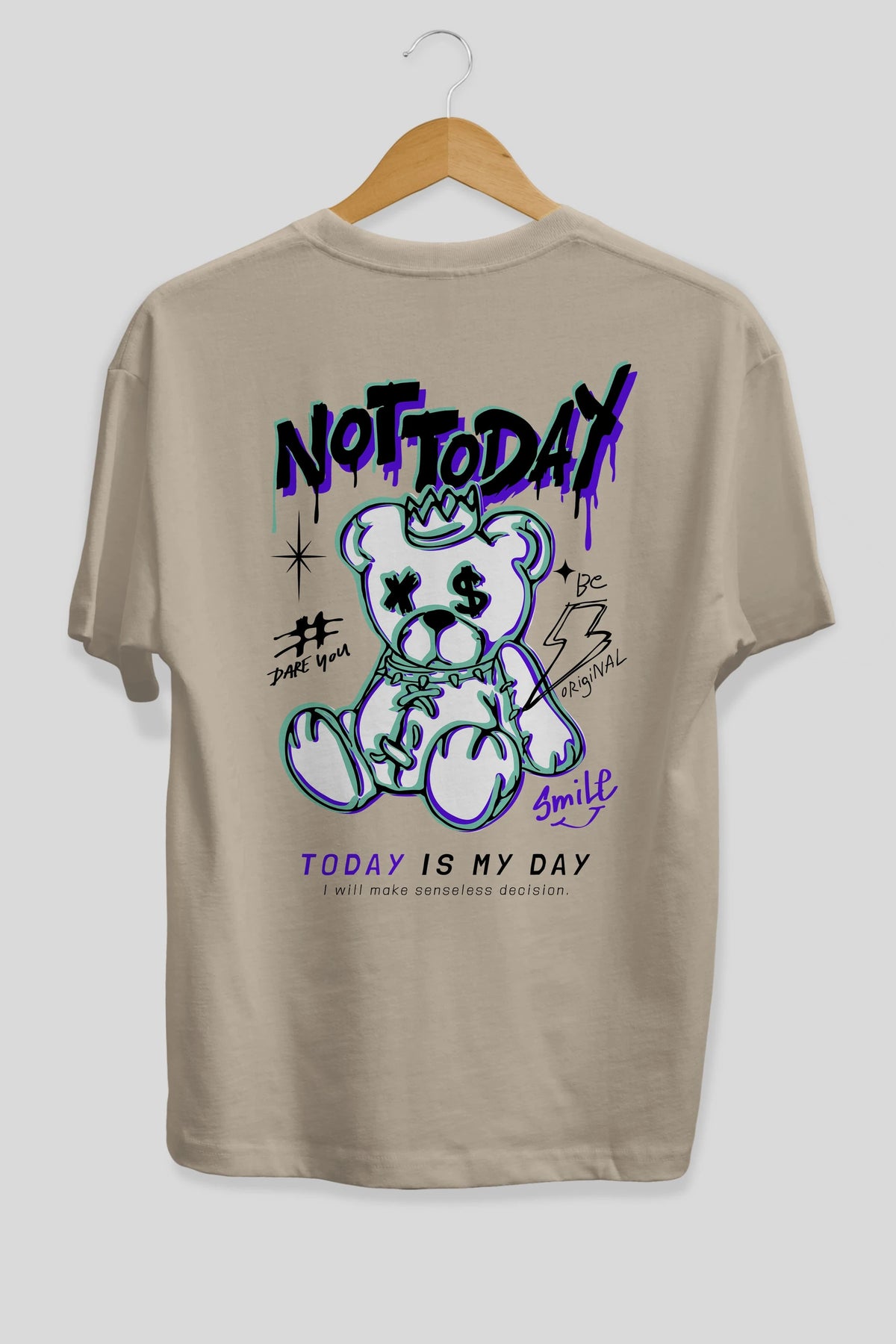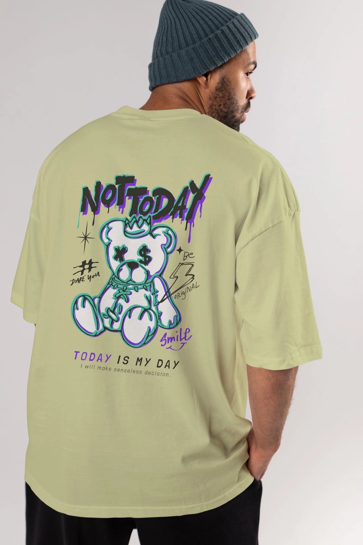 Teddy Bear Not Today Arka Baskılı Oversize t-shirt Erkek Kadın Unisex