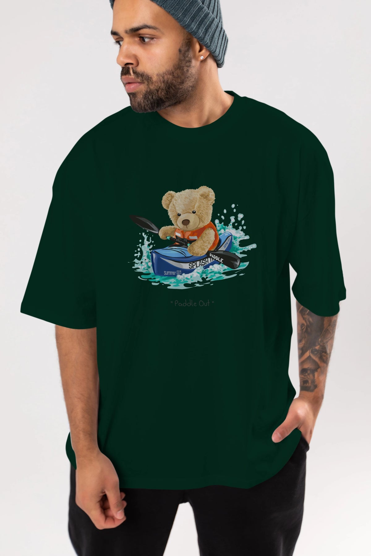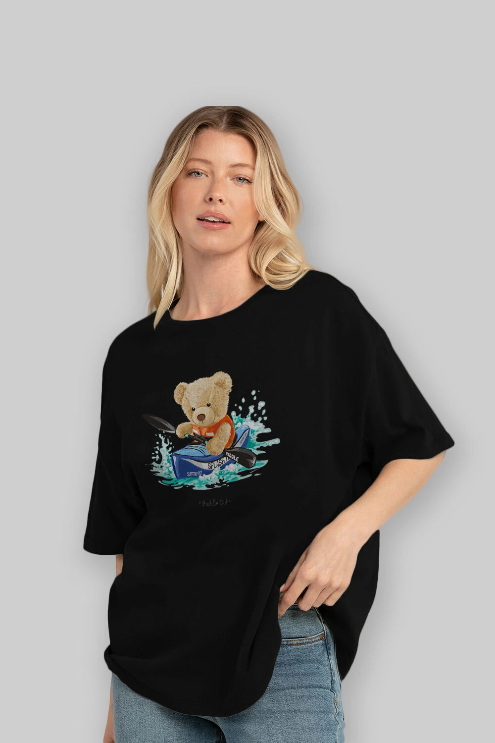 Teddy Bear Paddle Out Ön Baskılı Oversize t-shirt Erkek Kadın Unisex %100 Pamuk