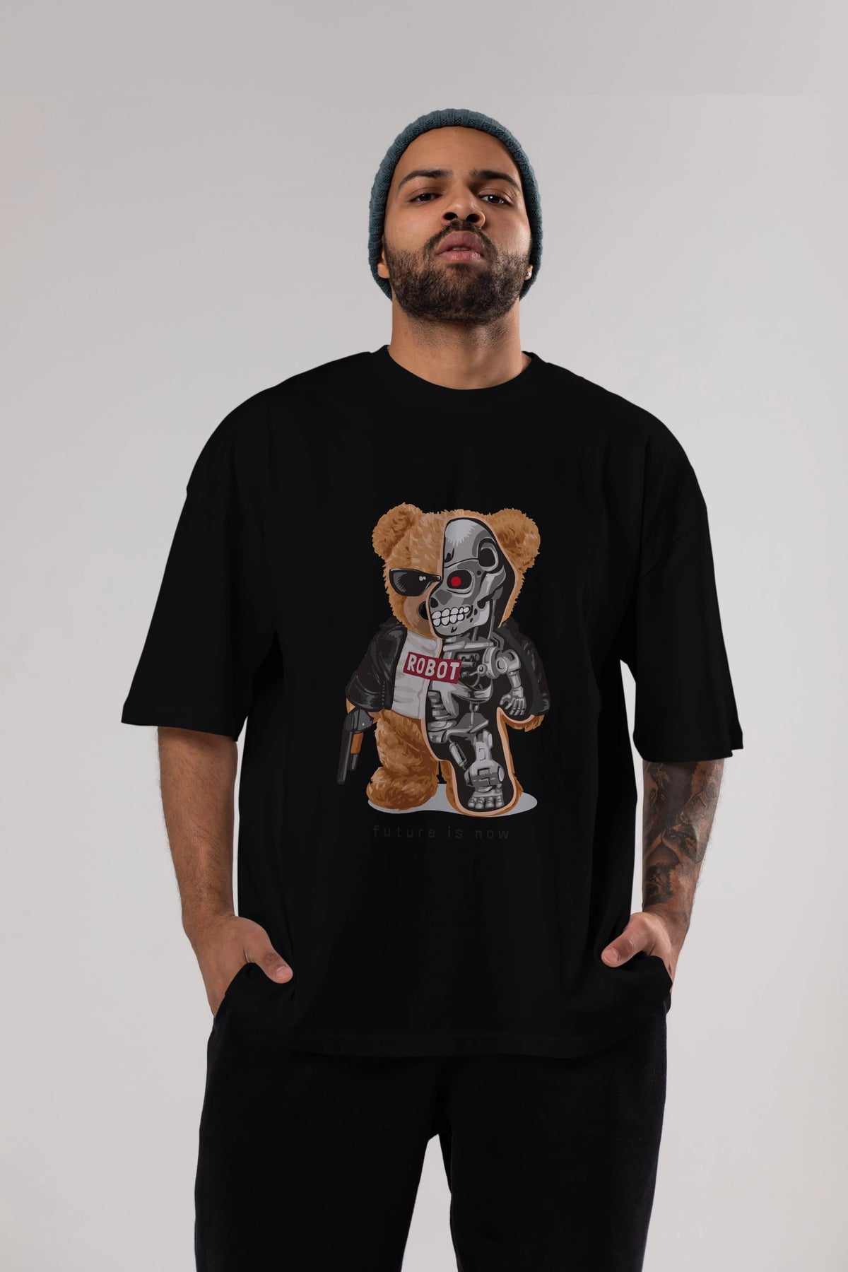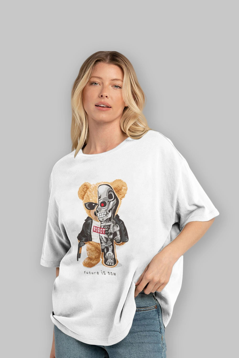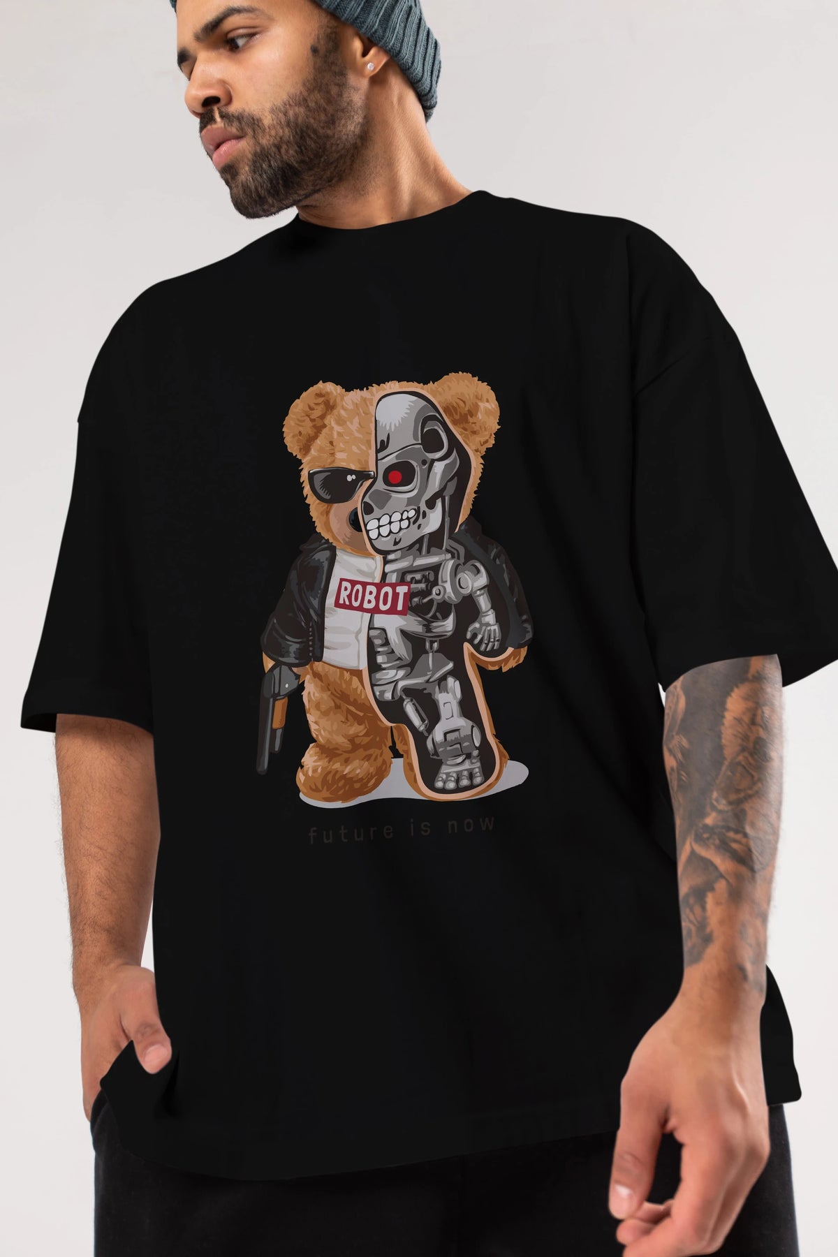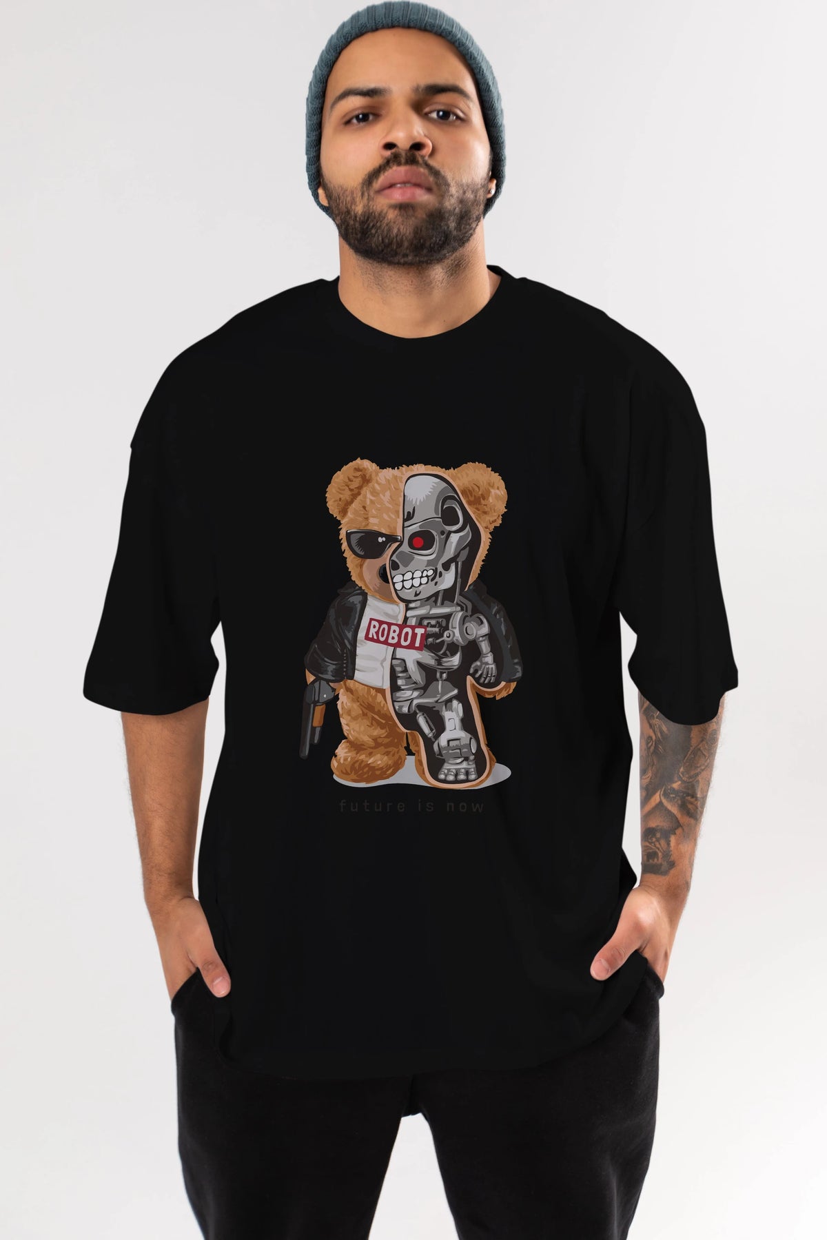Teddy Bear Robot Ön Baskılı Oversize t-shirt Erkek Kadın Unisex %100 Pamuk